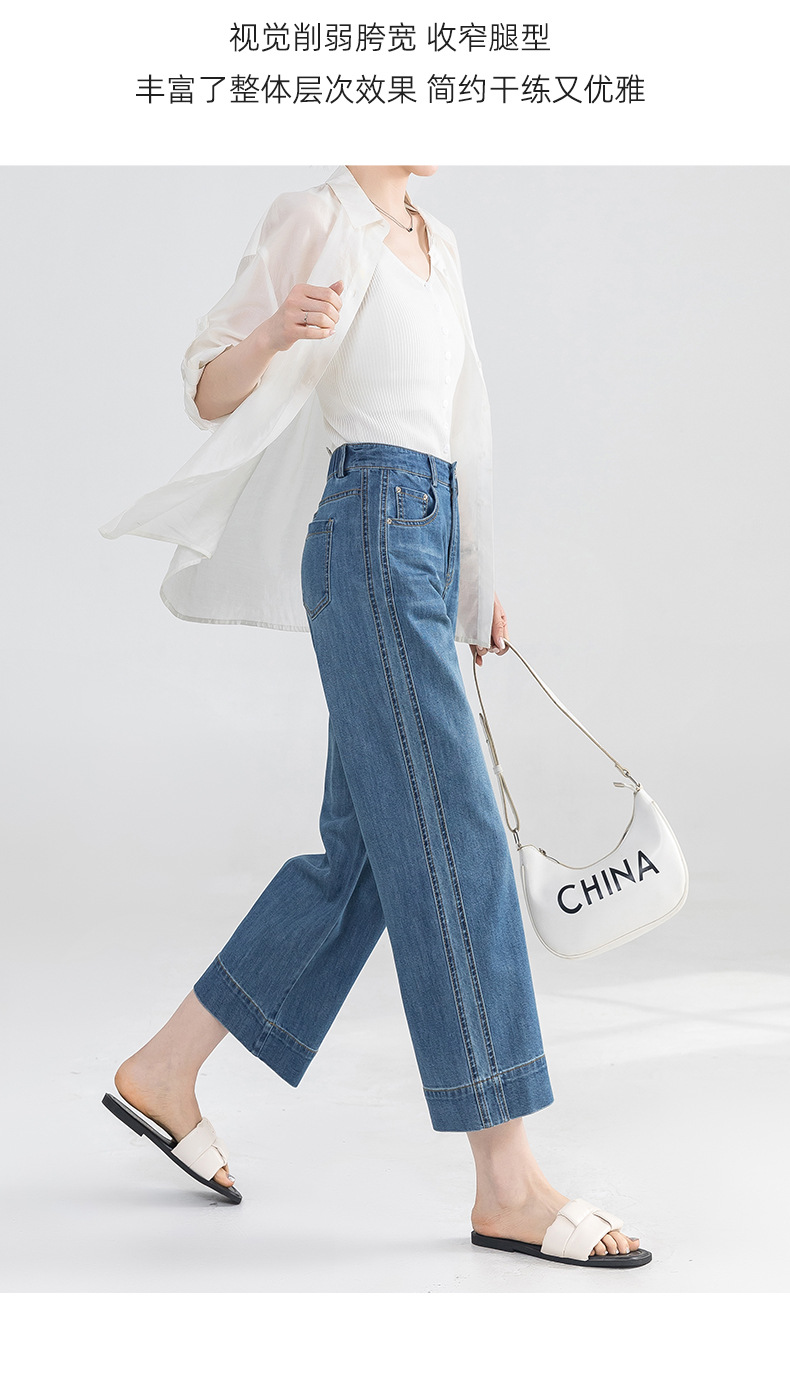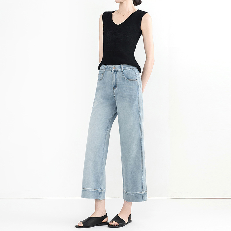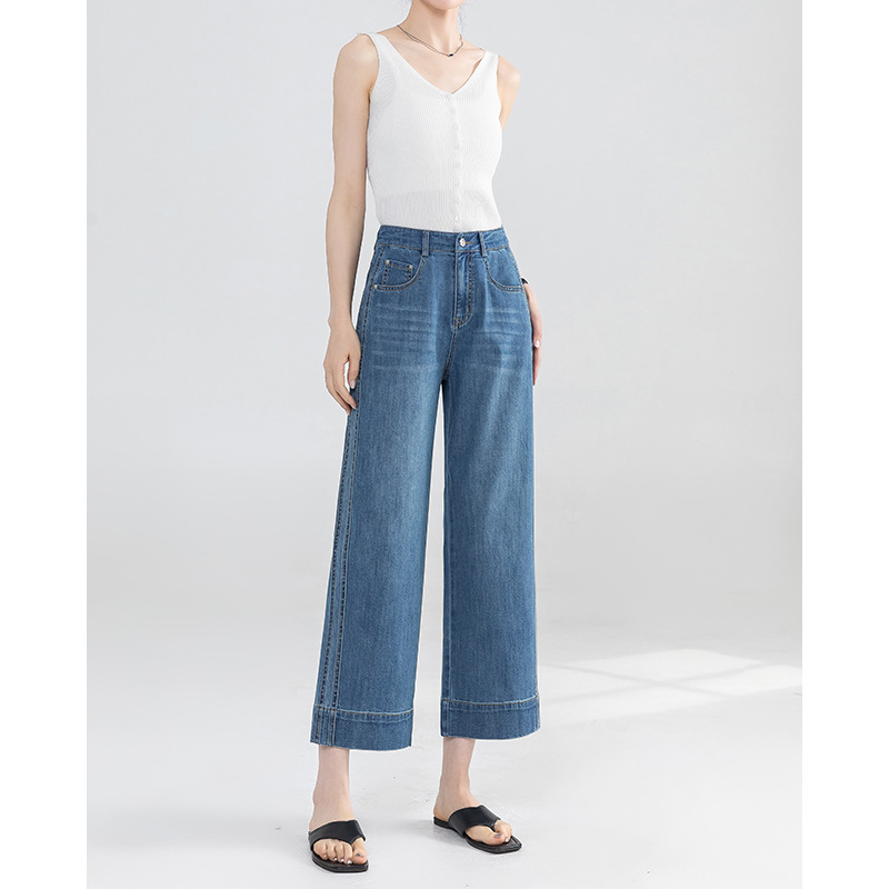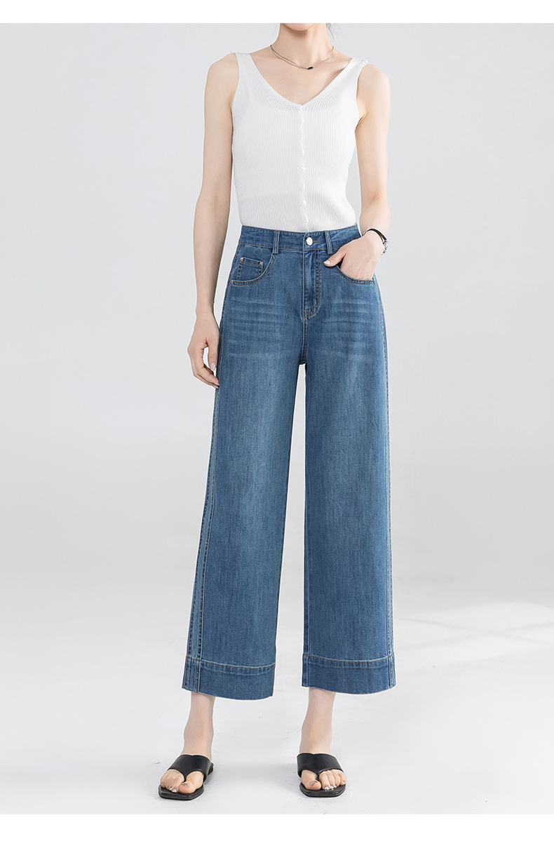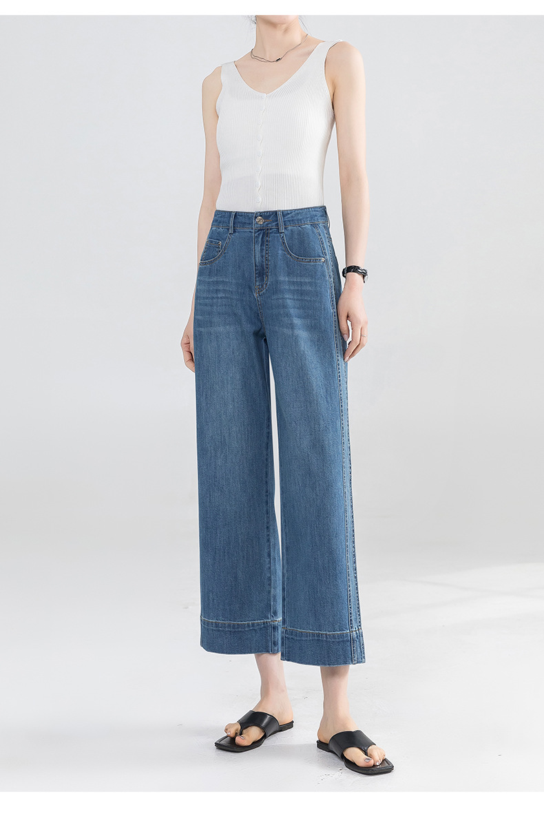 Yanrui 여름 얇은 자른 직선 청바지 여성의 높은 허리 유행 통근 짧은 느슨한 슬림 넓은 다리 바지