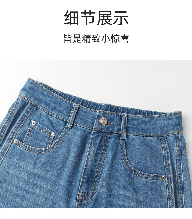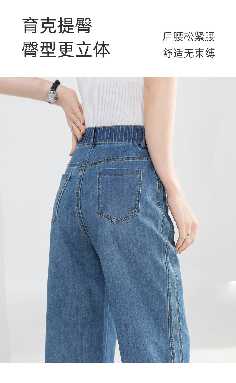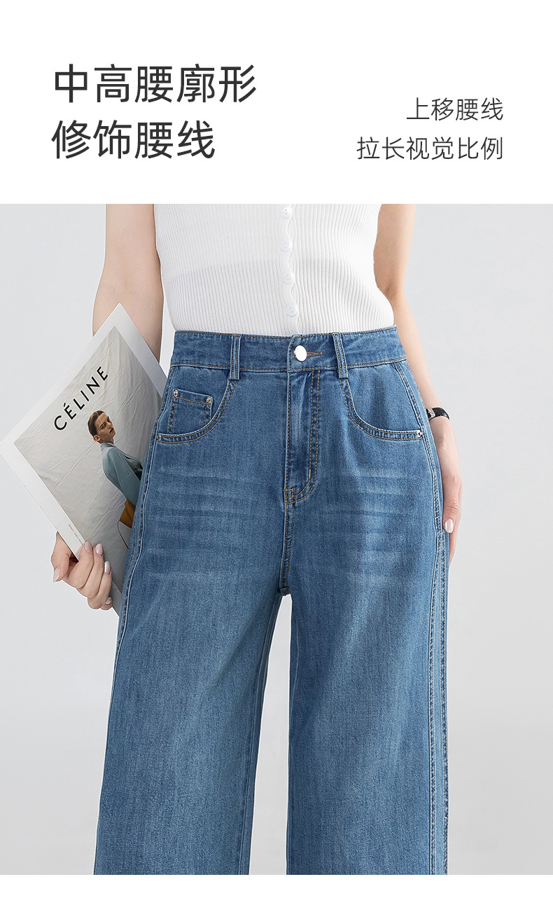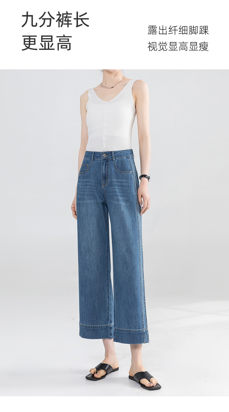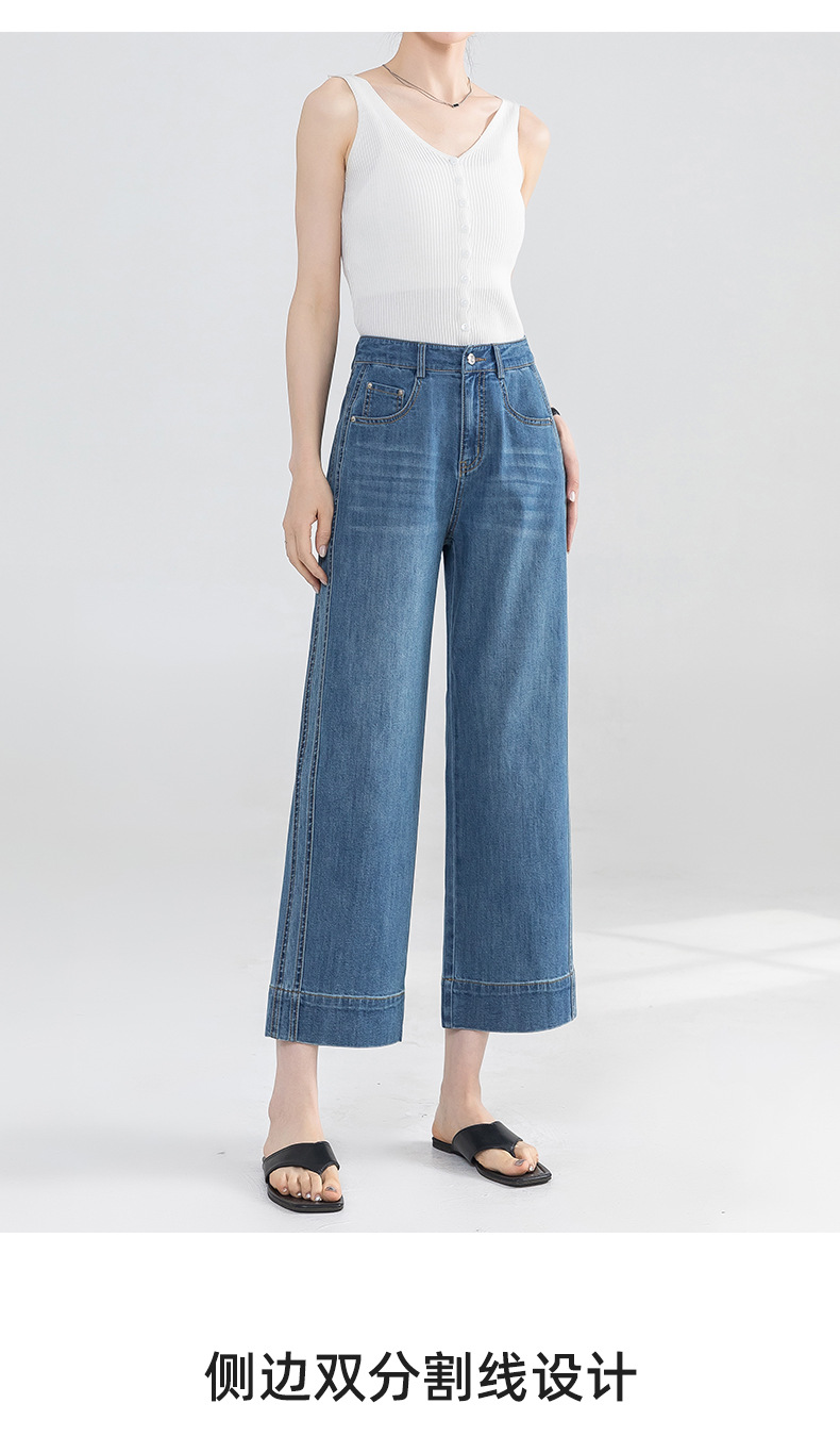 Yanrui 여름 얇은 자른 직선 청바지 여성의 높은 허리 유행 통근 짧은 느슨한 슬림 넓은 다리 바지
