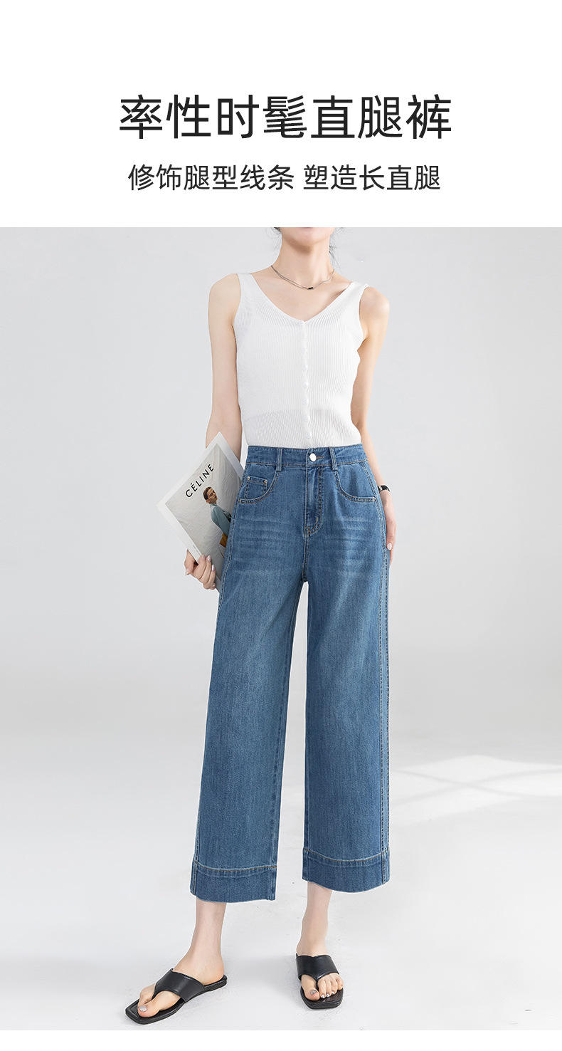 Yanrui 여름 얇은 자른 직선 청바지 여성의 높은 허리 유행 통근 짧은 느슨한 슬림 넓은 다리 바지스토어 가기