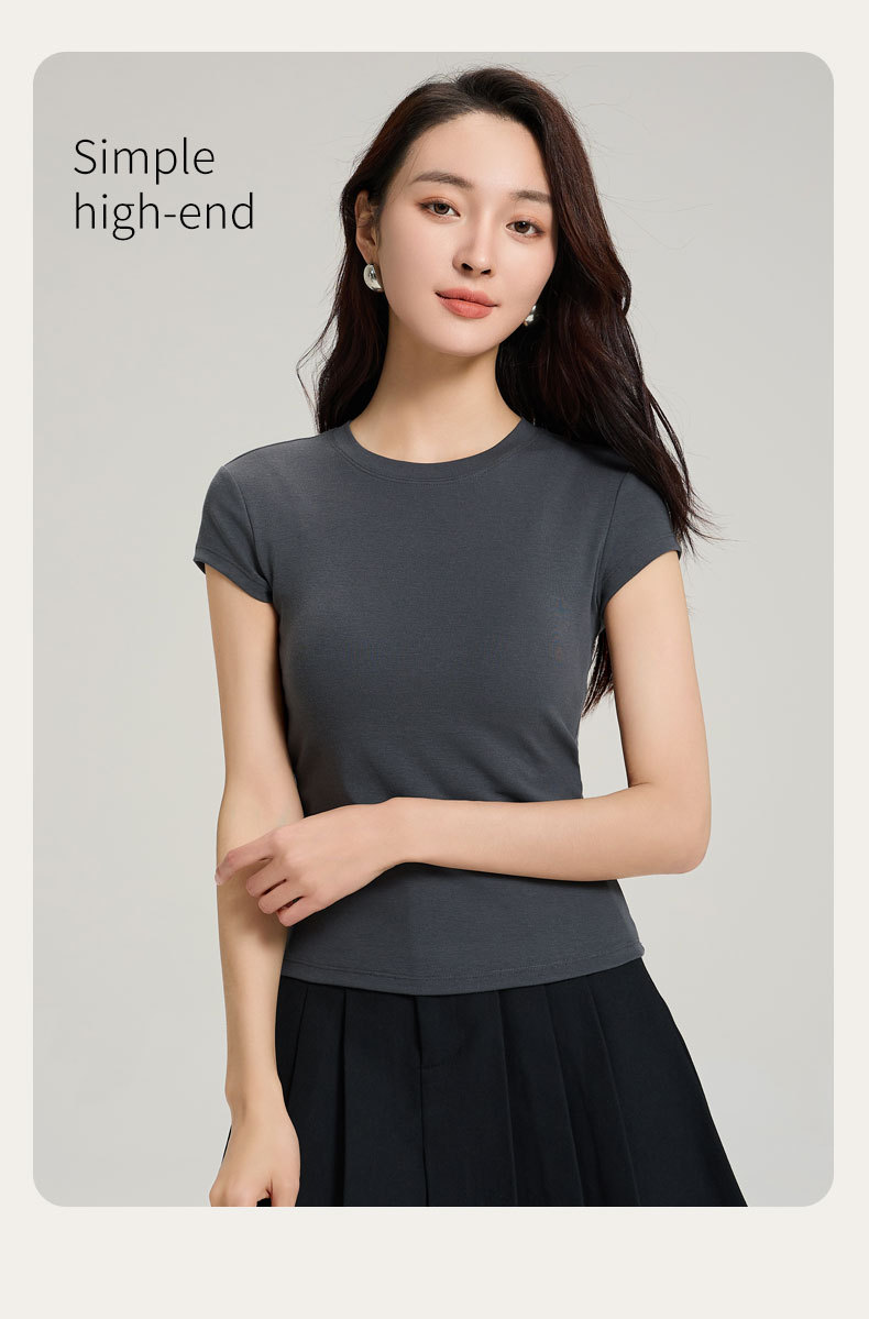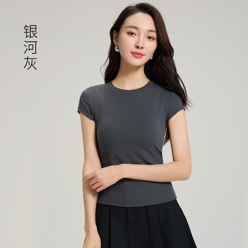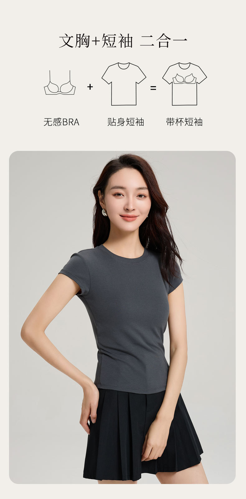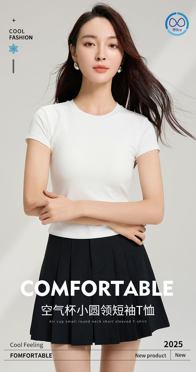 2025 년 여름 새로운 Lyocell Tencel 대나무 섬유 반팔 티셔츠, 컵 여성용 슬림핏 반소매 탑