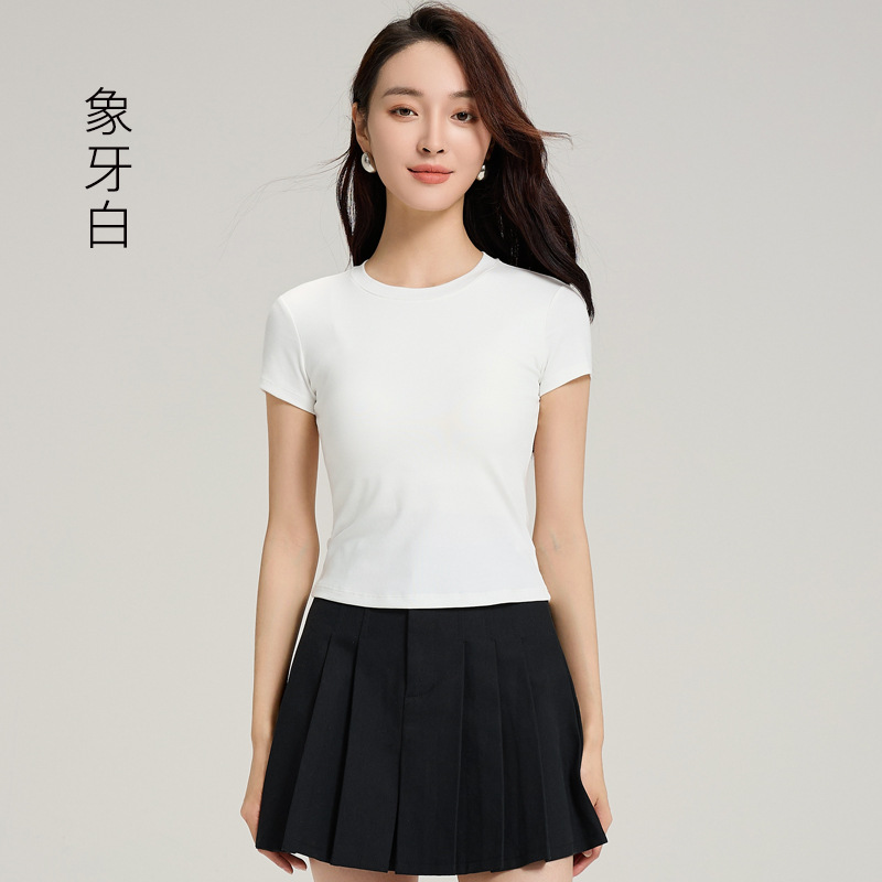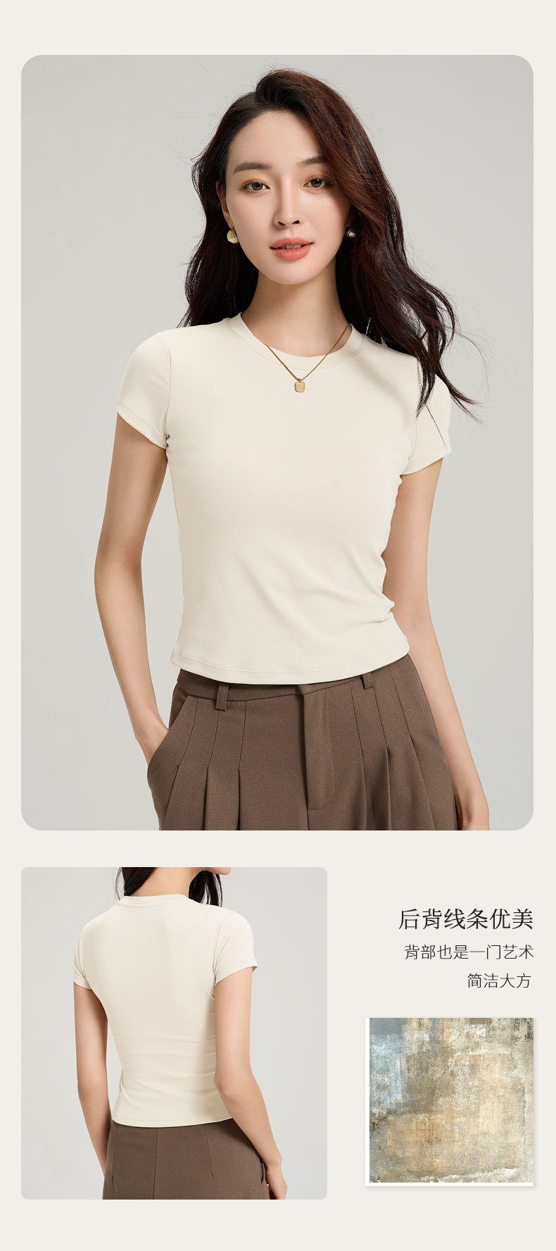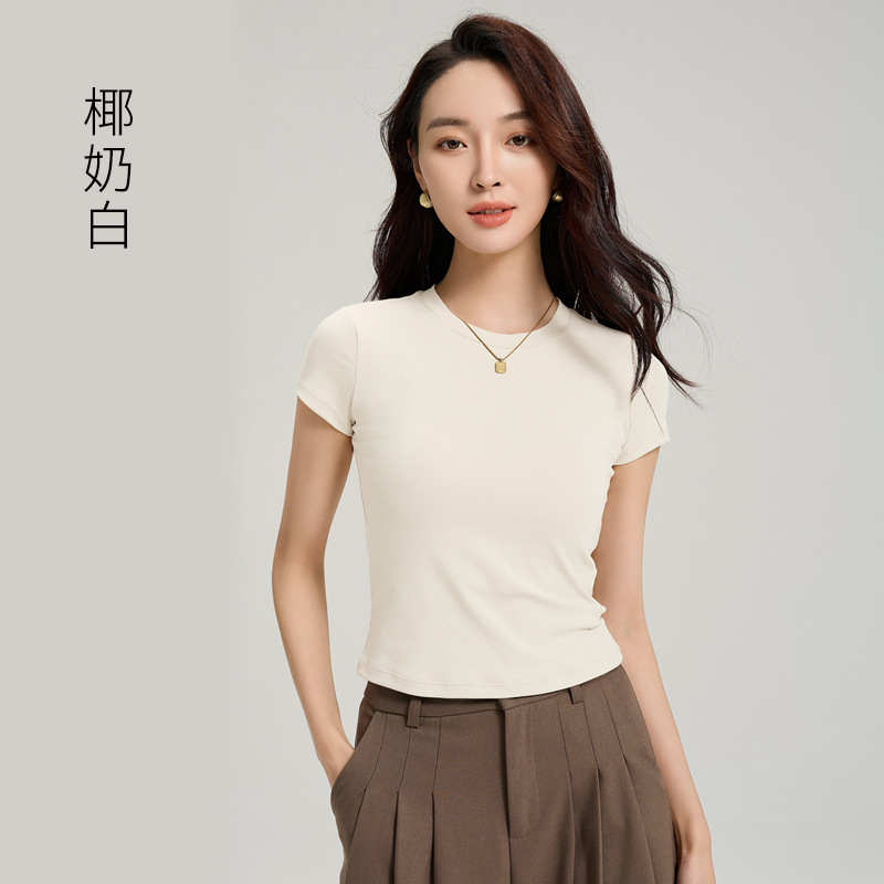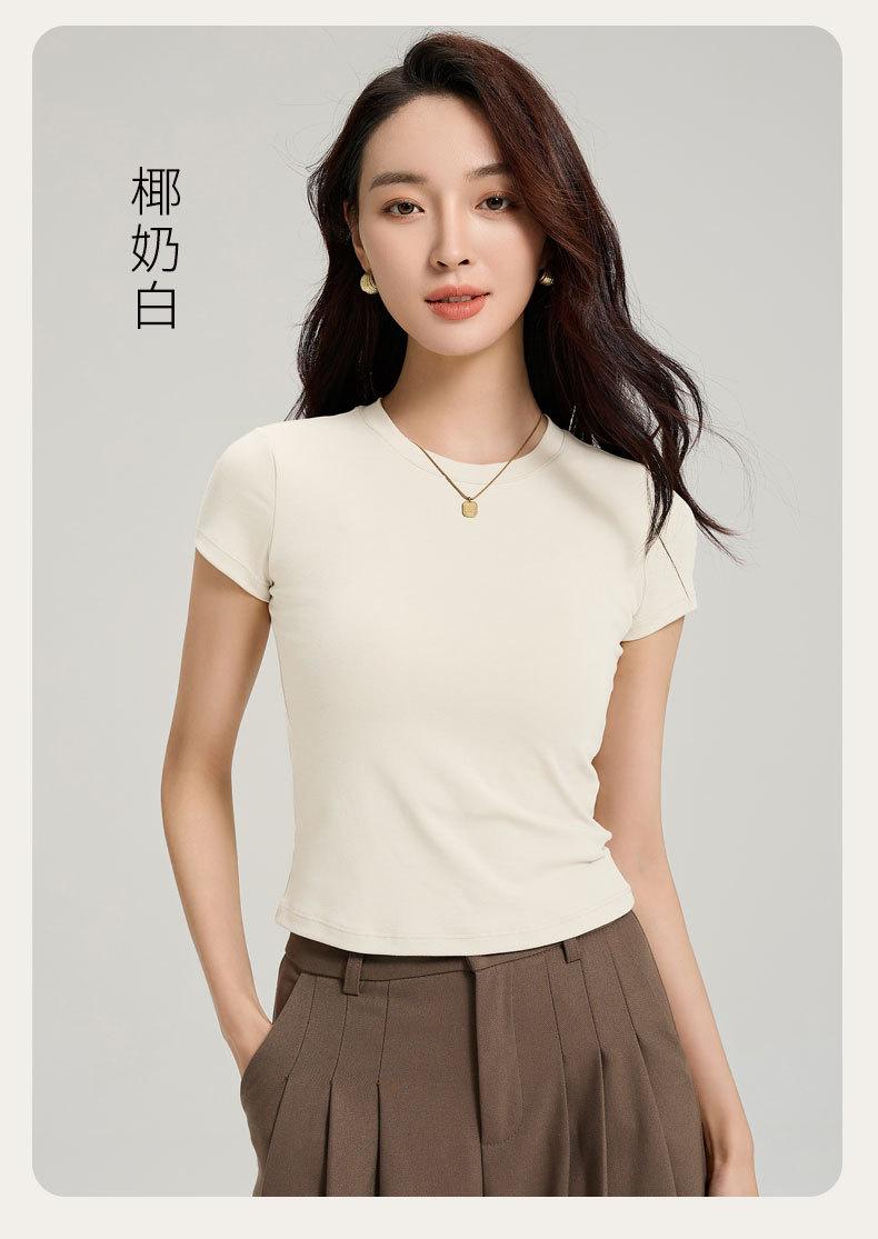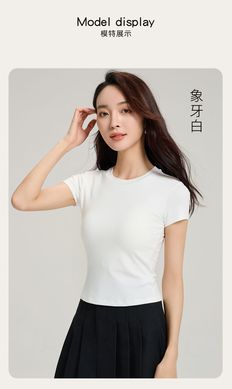 2025 년 여름 새로운 Lyocell Tencel 대나무 섬유 반팔 티셔츠, 컵 여성용 슬림핏 반소매 탑