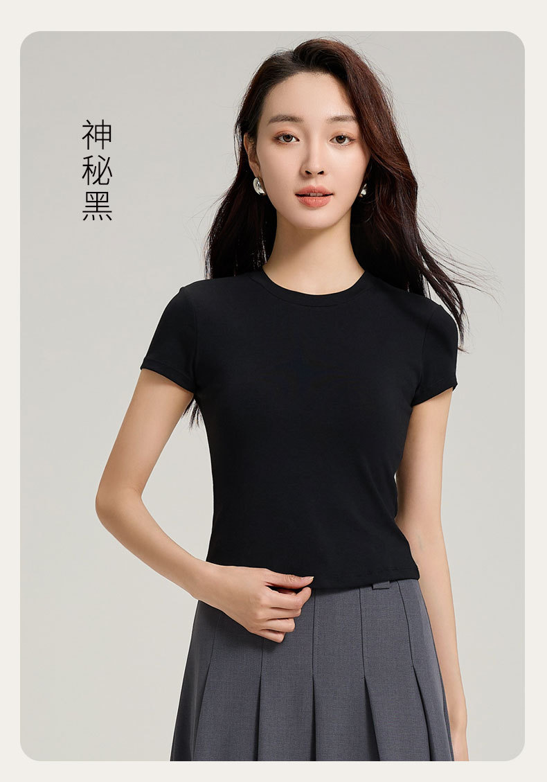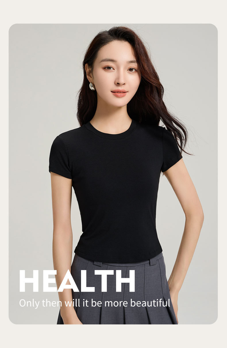 2025 년 여름 새로운 Lyocell Tencel 대나무 섬유 반팔 티셔츠, 컵 여성용 슬림핏 반소매 탑스토어 가기