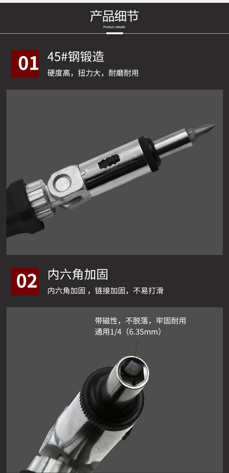 6.35 나사 렌치 각도는 0-180도에서 변경 가능하며 육각형 멀티 사양 래칫 드라이버로 회전합니다.