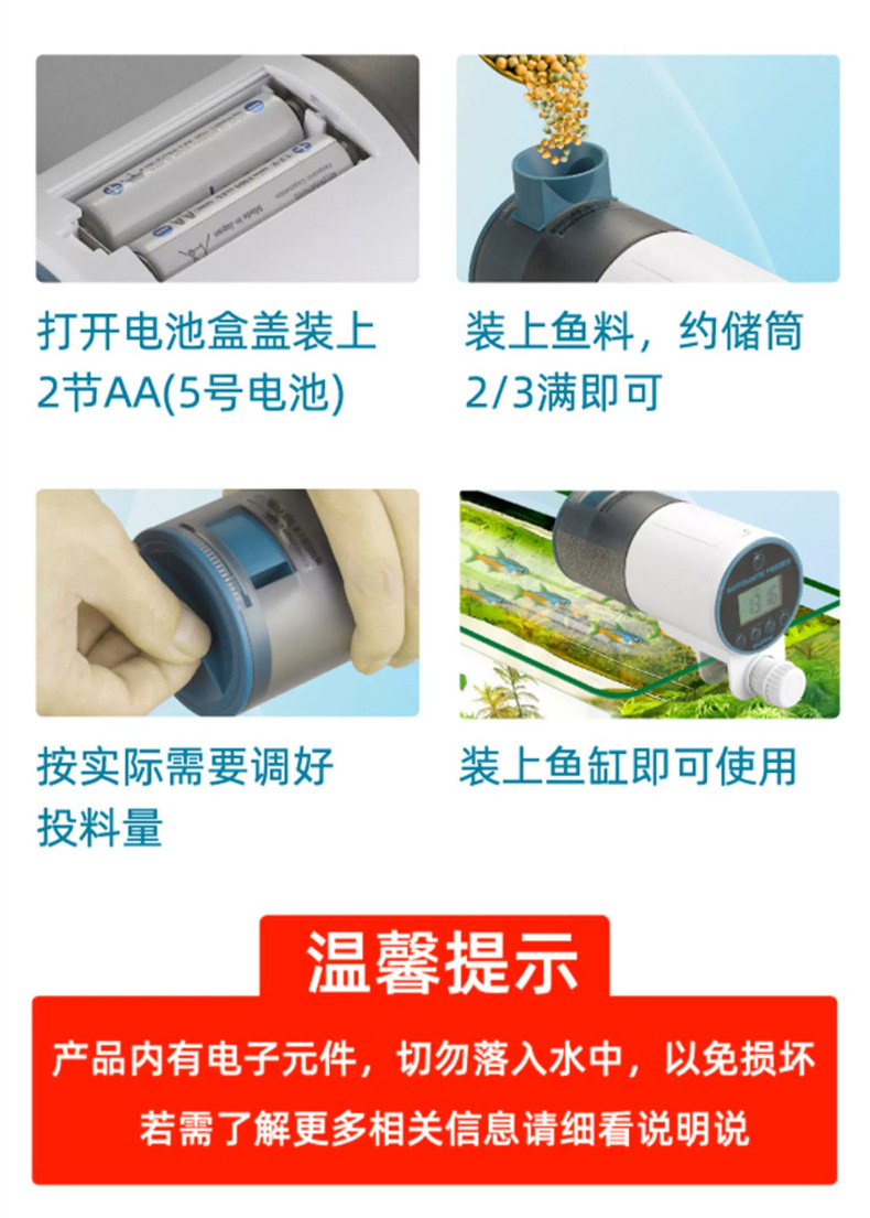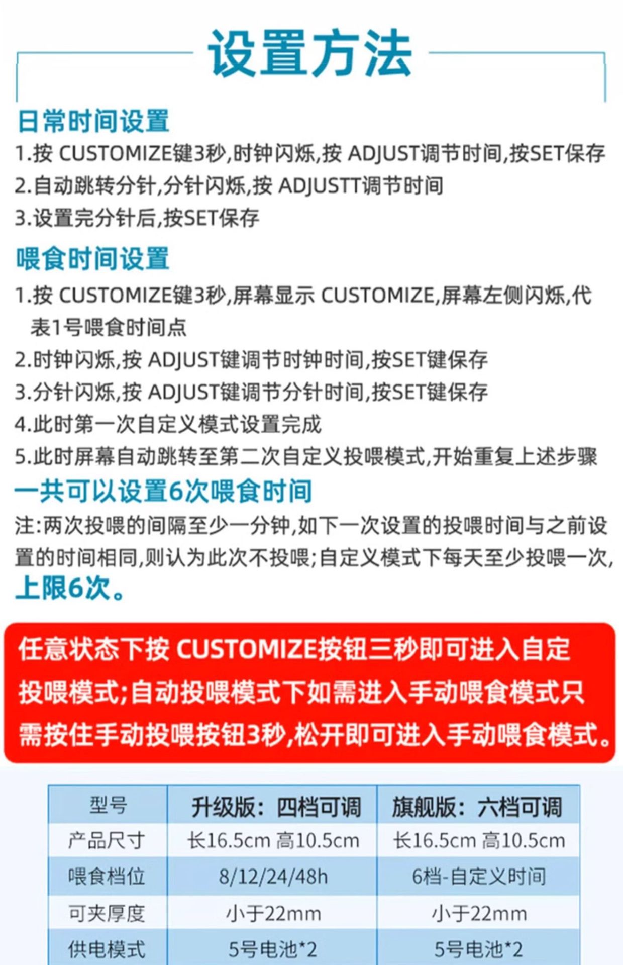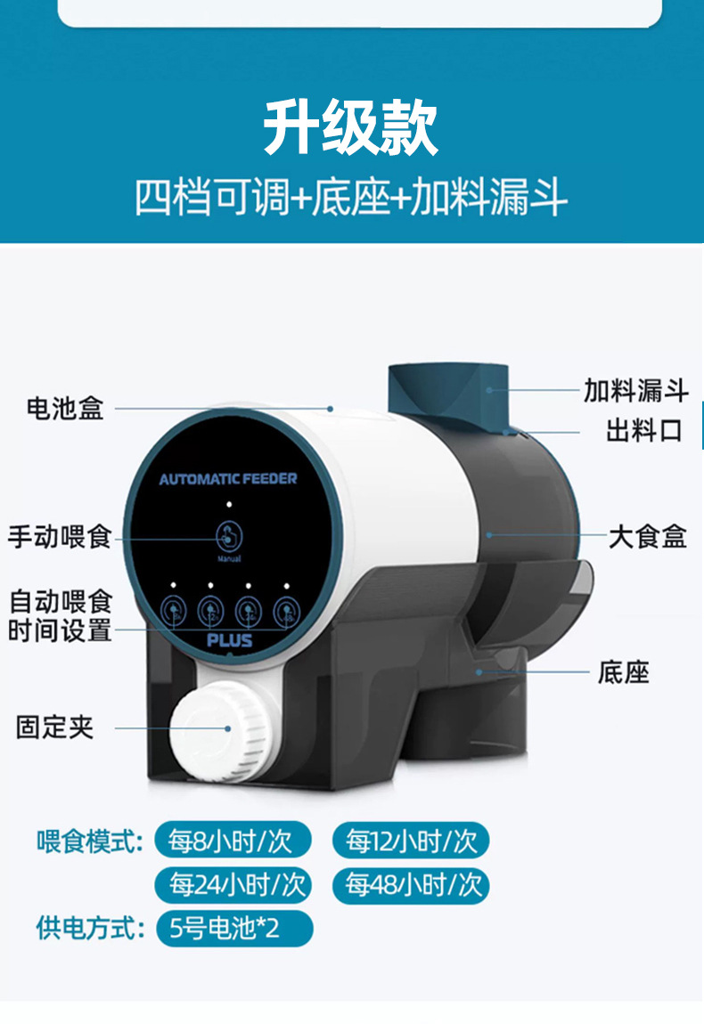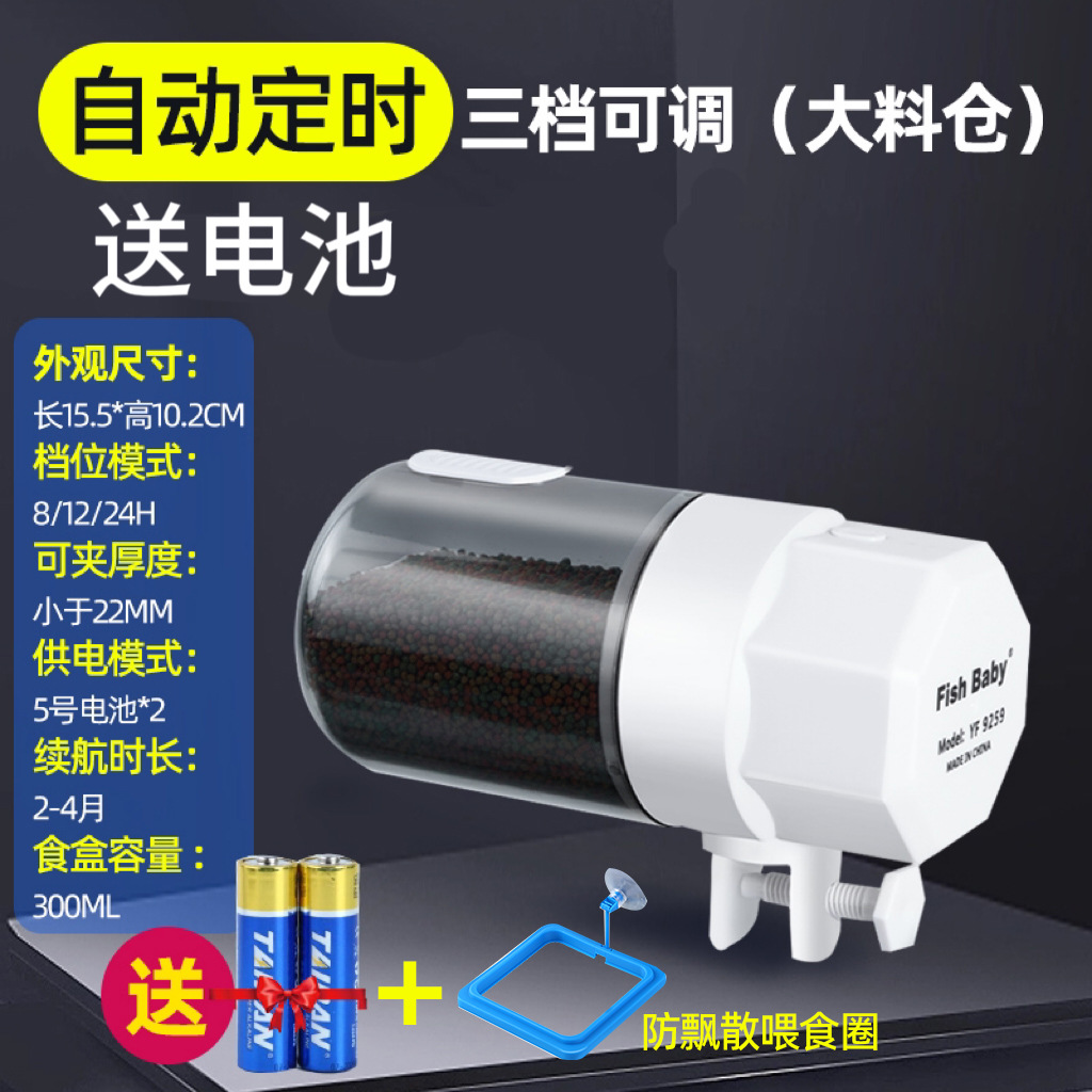 • [지능형 3단 타이밍] 300ml 대형 식품 창고 + 분산 방지 공급 링 + 무료 배터리