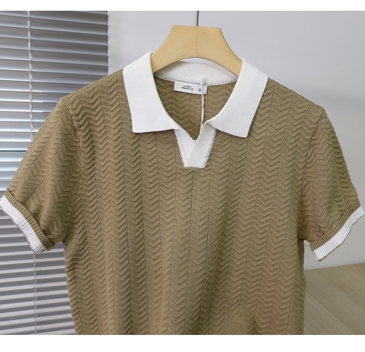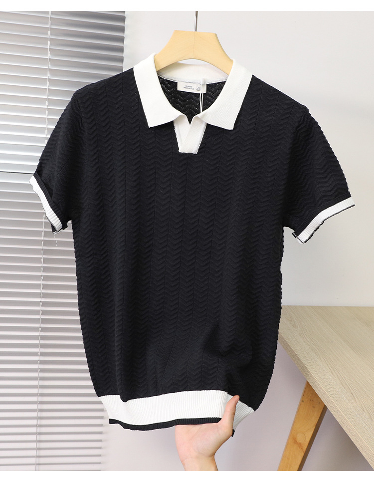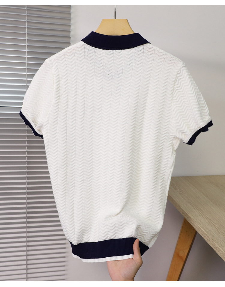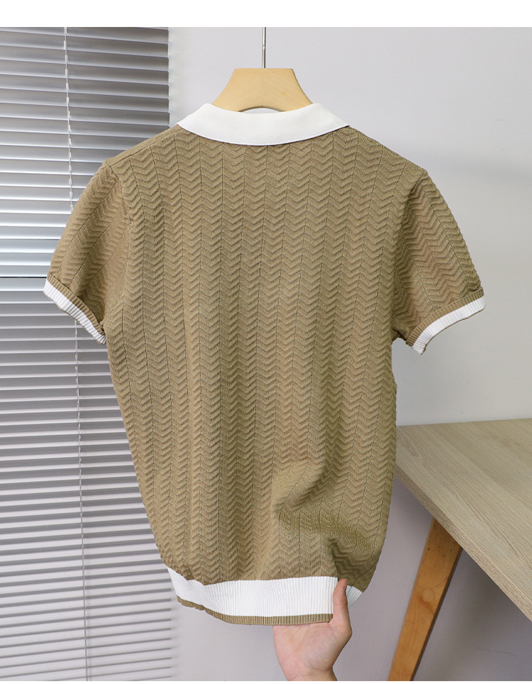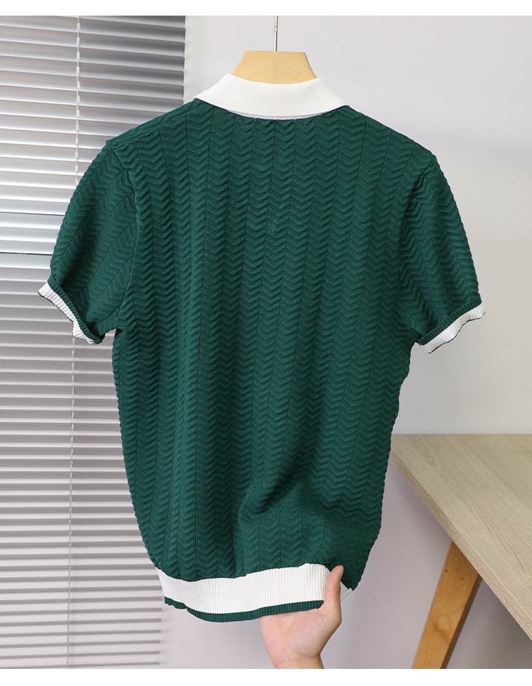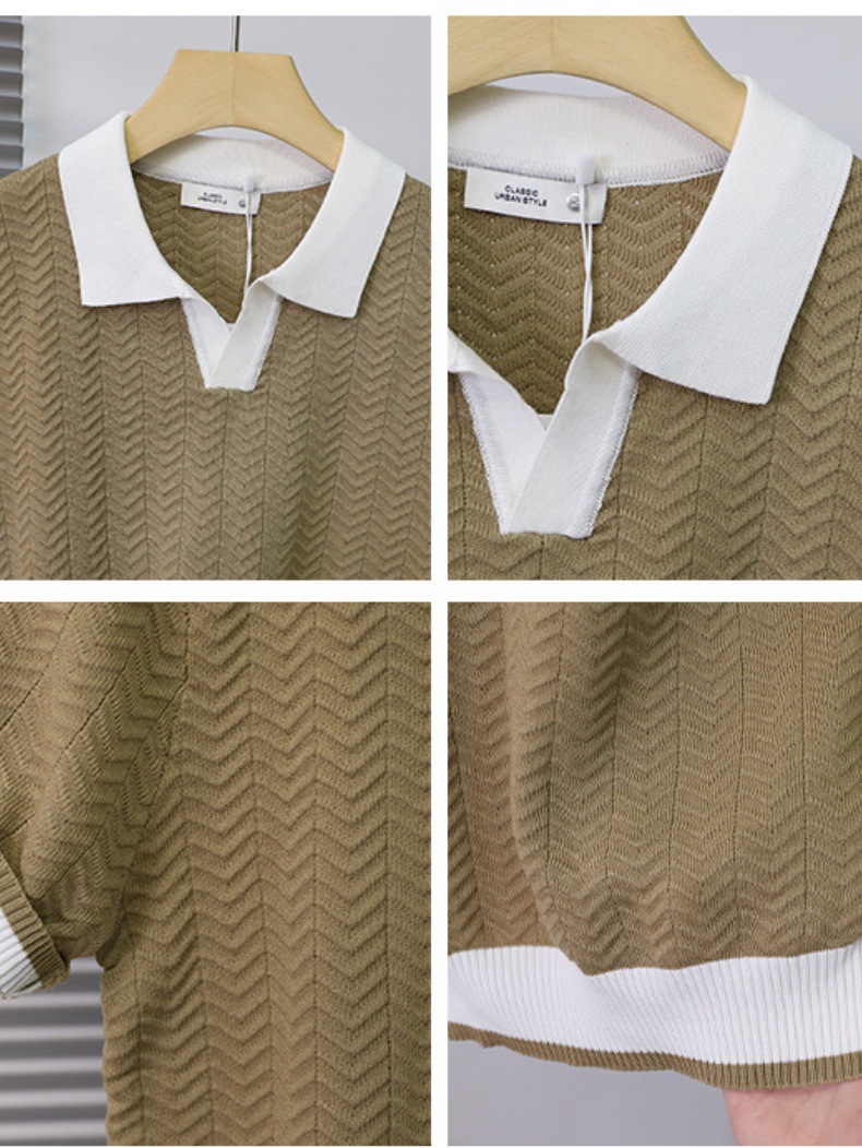 고품질 라펠 반팔 니트 남성 봄 여름 얇은 반팔 스웨터 남성 가볍고 성숙한 스타일 싱글 탑스토어 가기