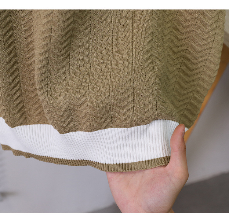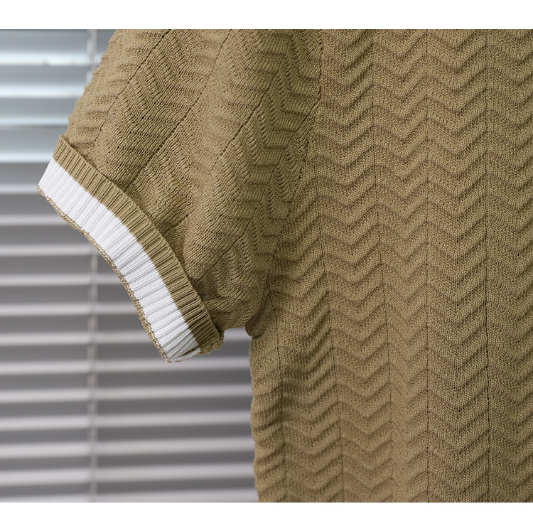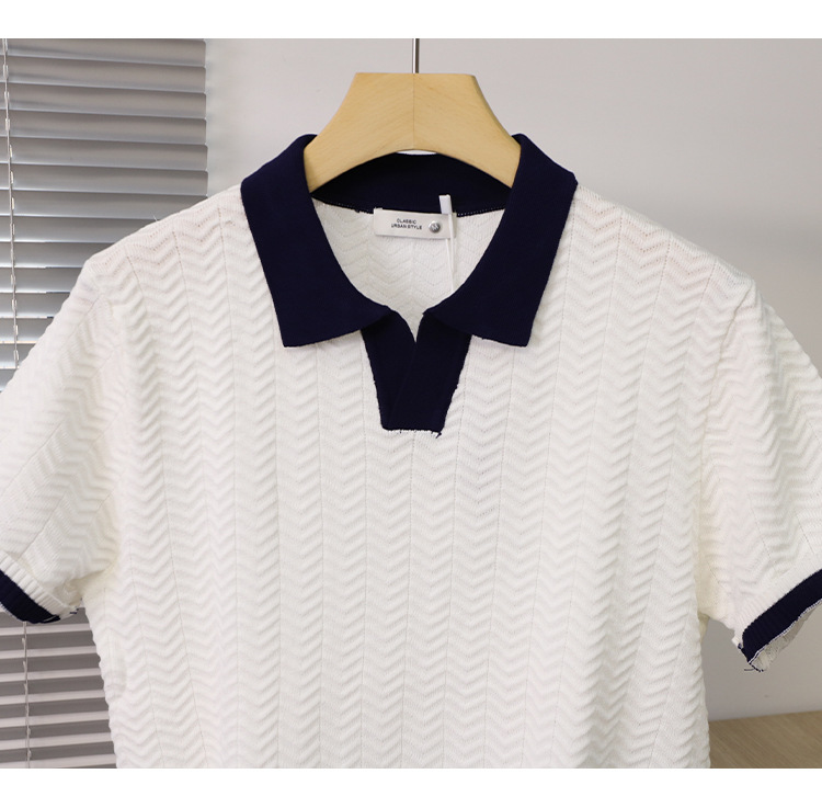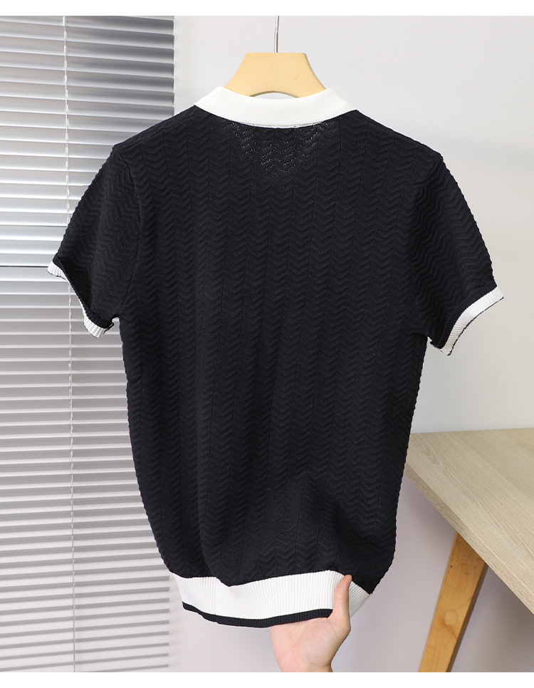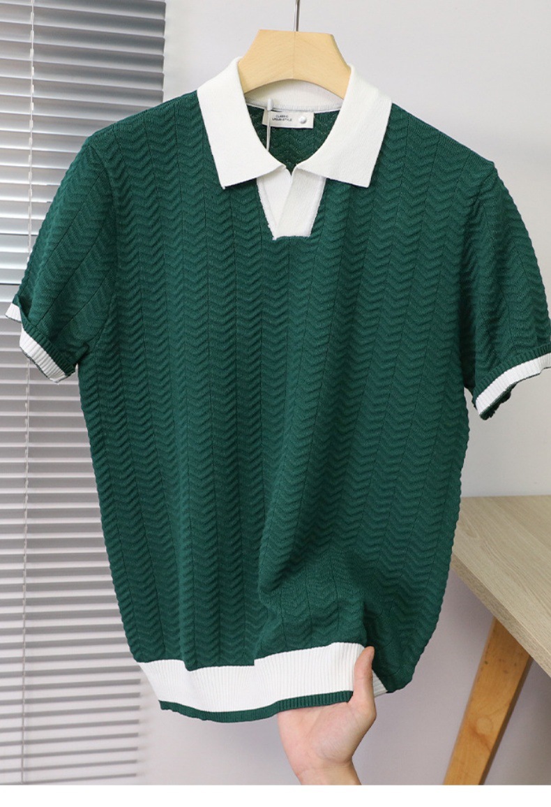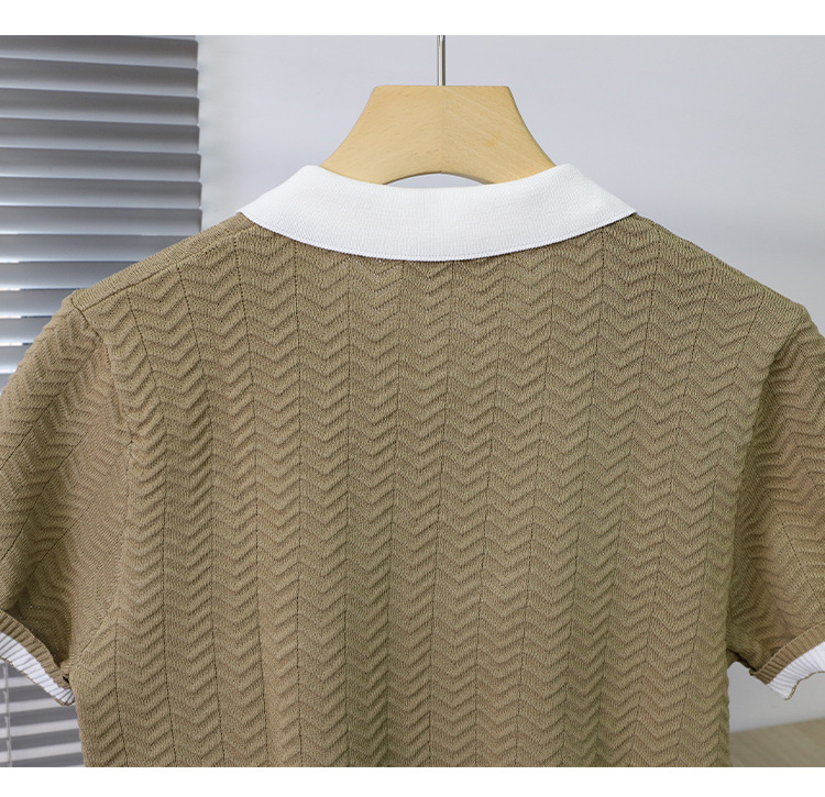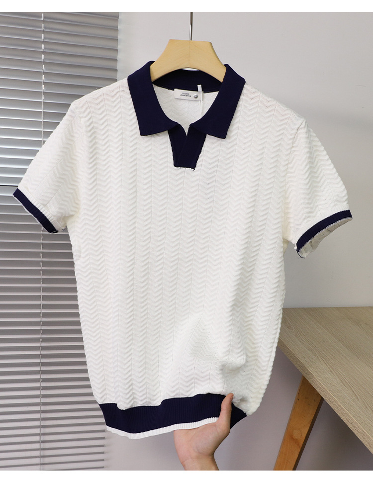 고품질 라펠 반팔 니트 남성 봄 여름 얇은 반팔 스웨터 남성 가볍고 성숙한 스타일 싱글 탑스토어 가기