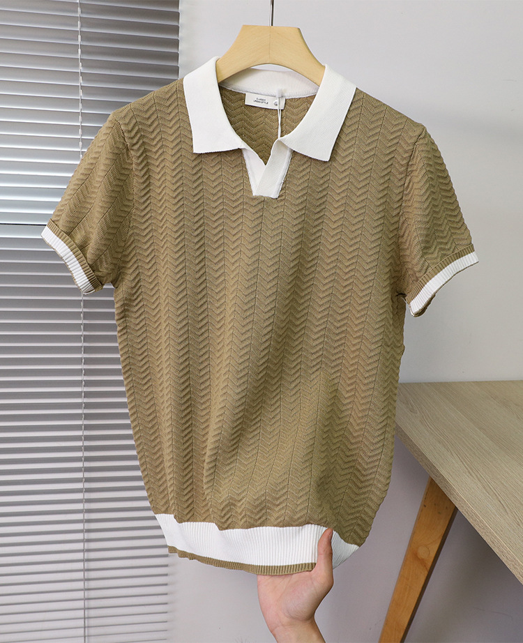 고품질 라펠 반팔 니트 남성 봄 여름 얇은 반팔 스웨터 남성 가볍고 성숙한 스타일 싱글 탑