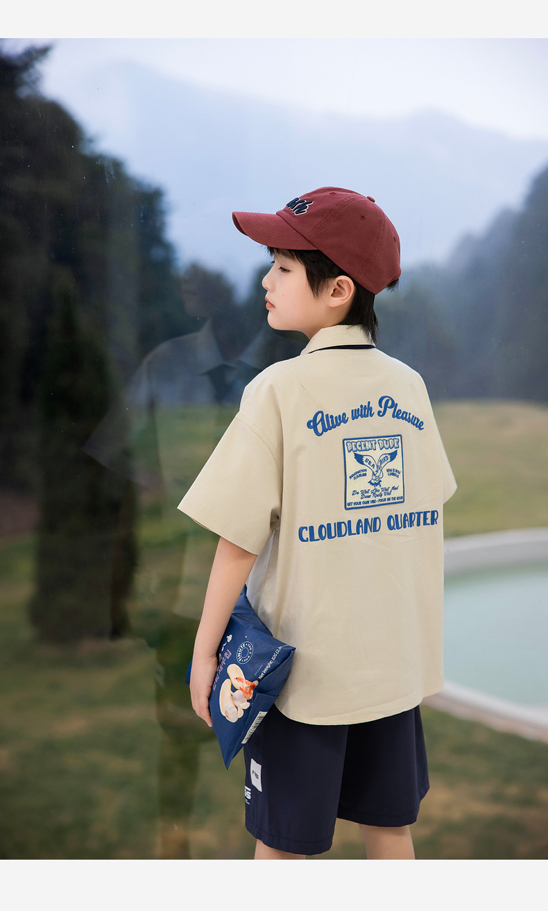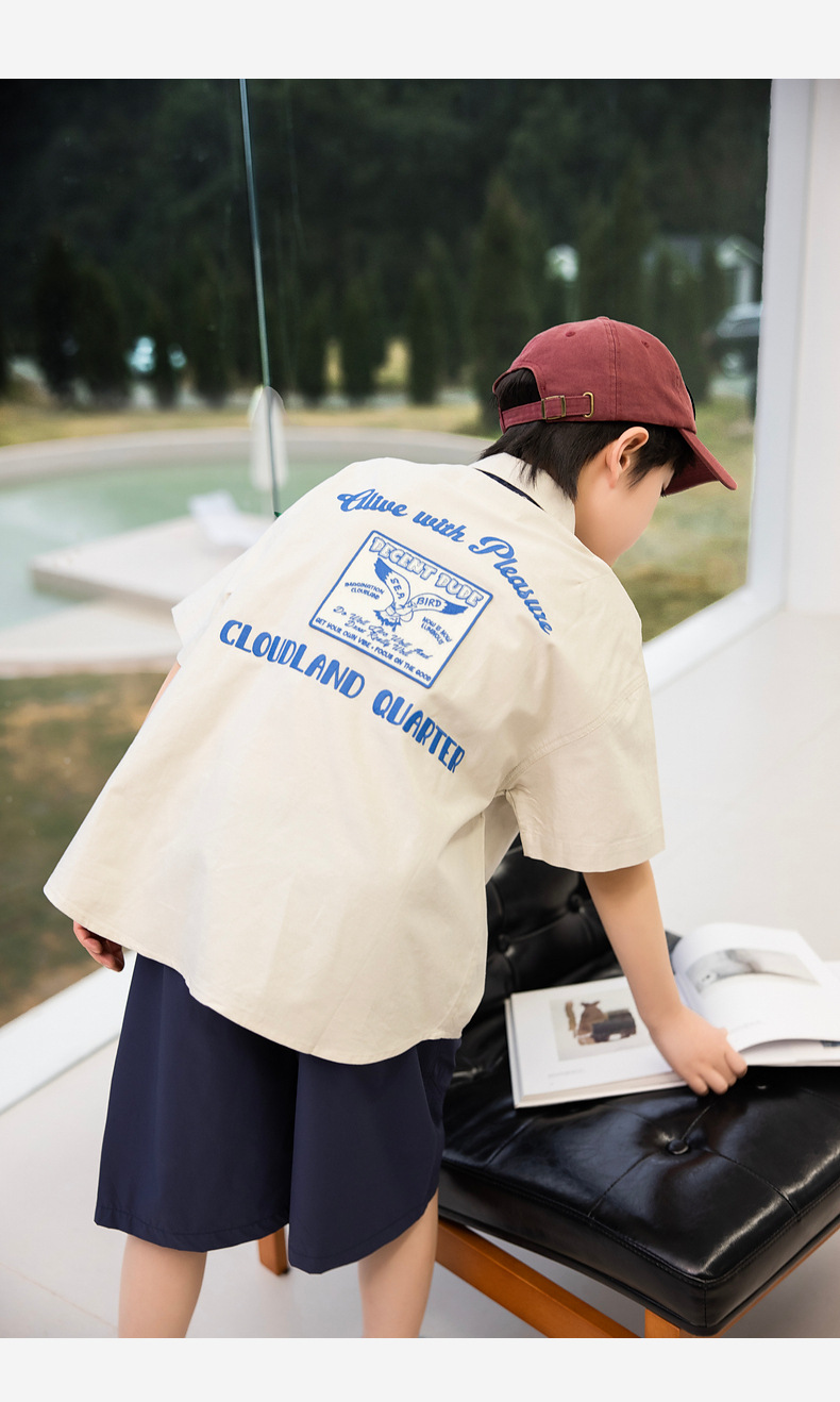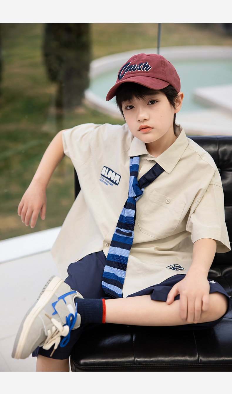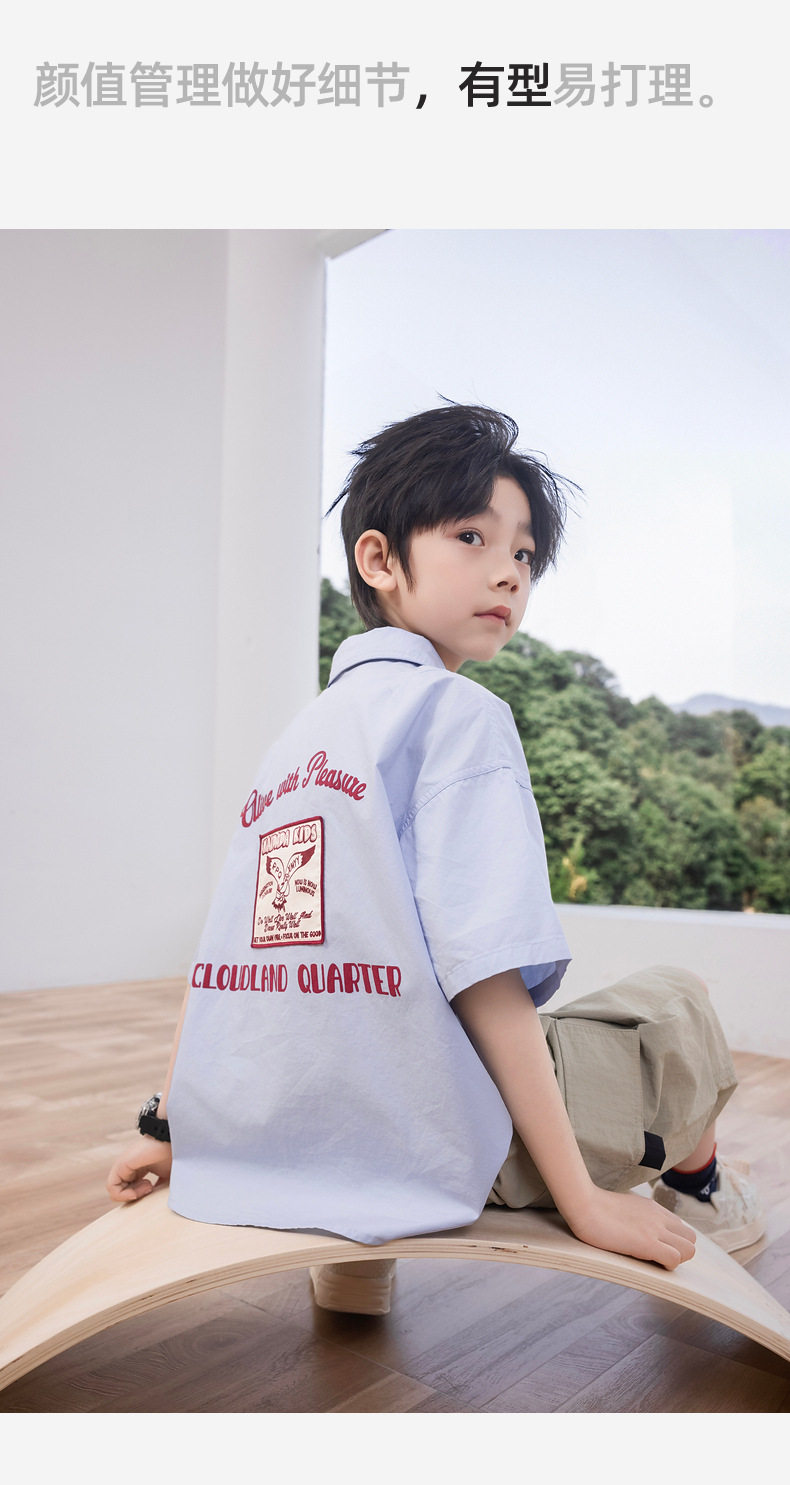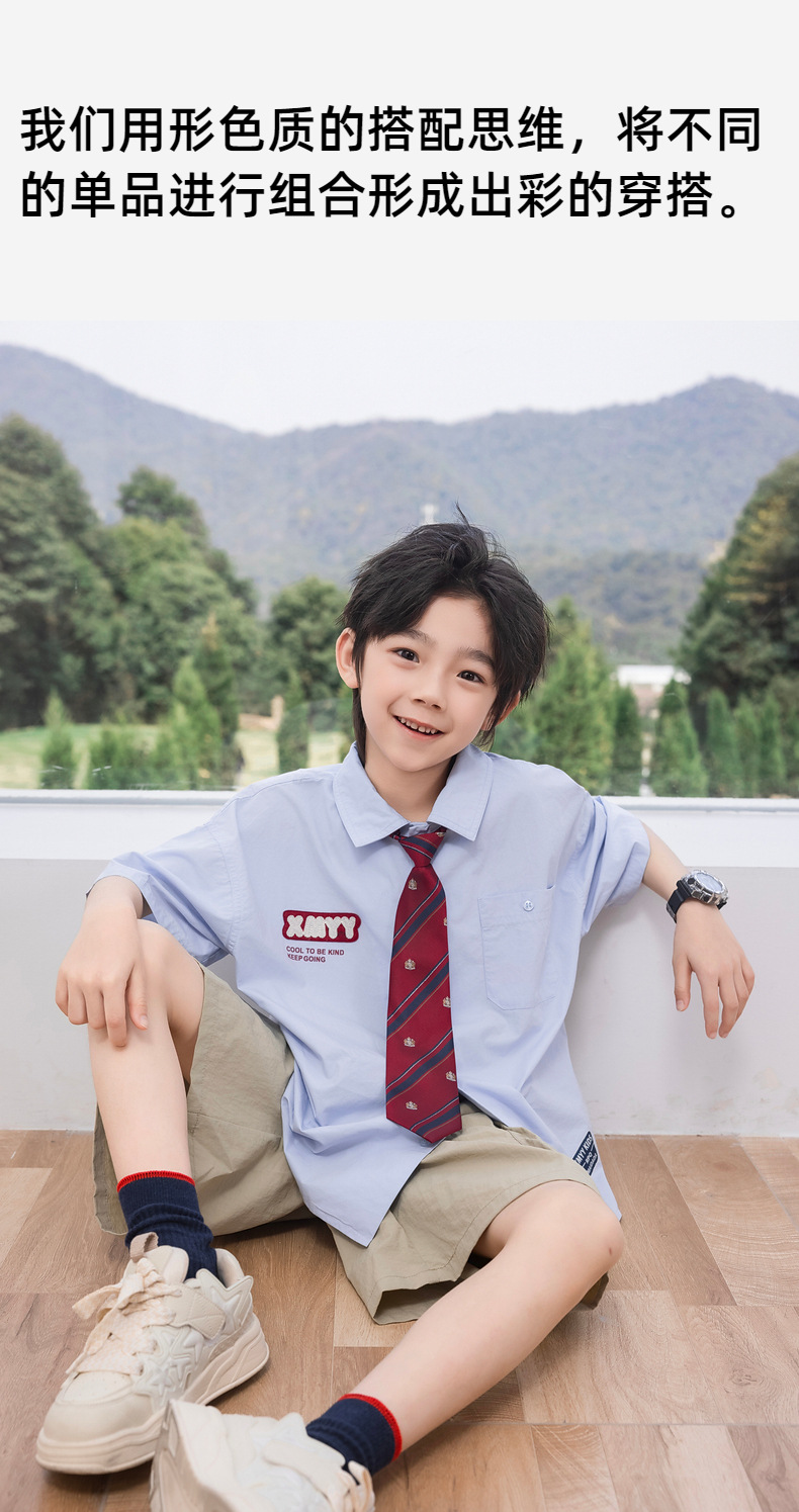 2025 여름 새로운 아동면 셔츠 넥타이 소년 짧은 소매 셔츠 여름 재킷 공장 도매스토어 가기