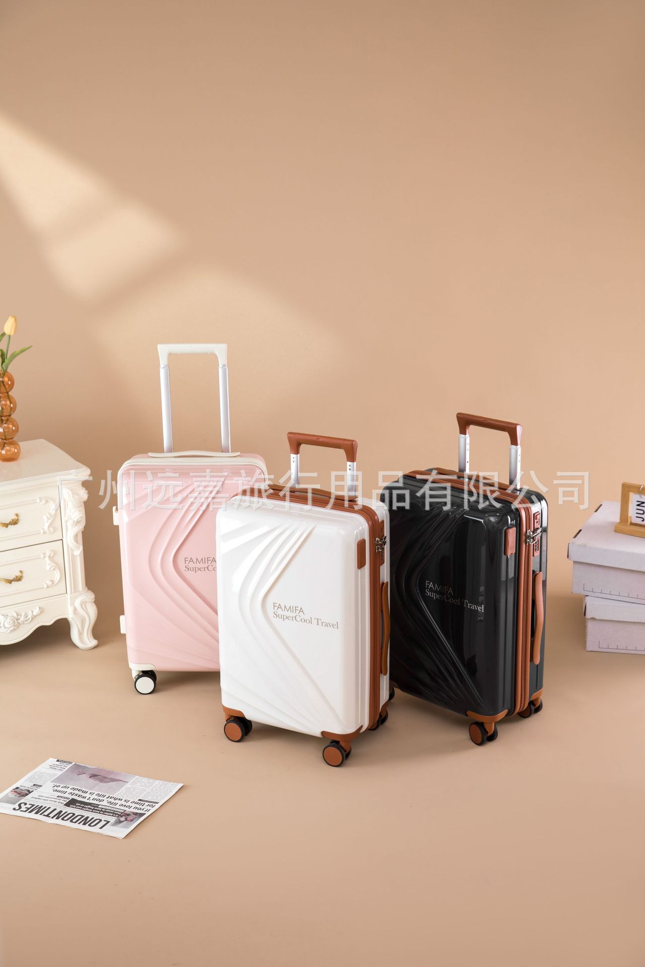 공장 직접 공급, 고급스러운 발광 여행가방 세트, 트롤리 케이스, 대용량 탑승 비밀번호 상자, 범용 휠