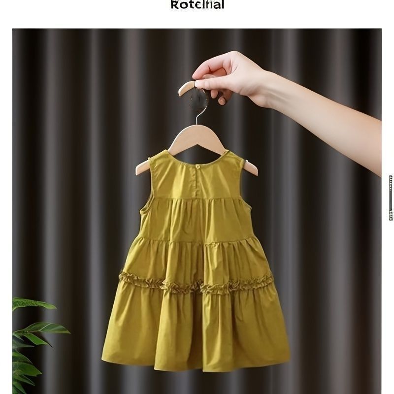 여자 2025 여름 새로운 민소매 솔리드 컬러 드레스 아기 스타일 중간 길이 코튼 공주 드레스 한국어 버전스토어 가기