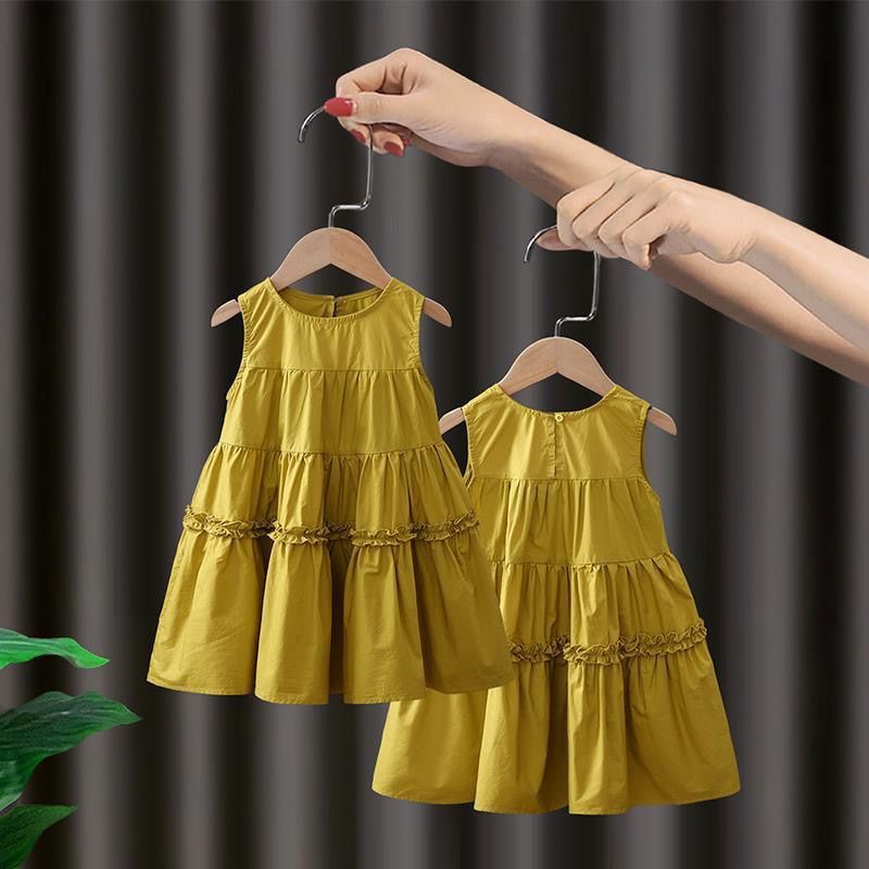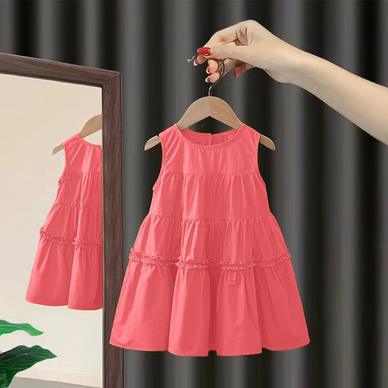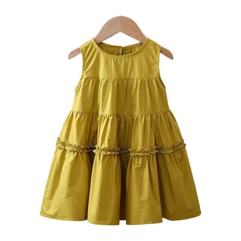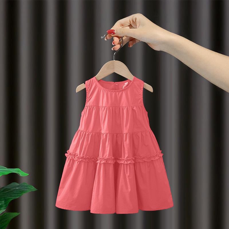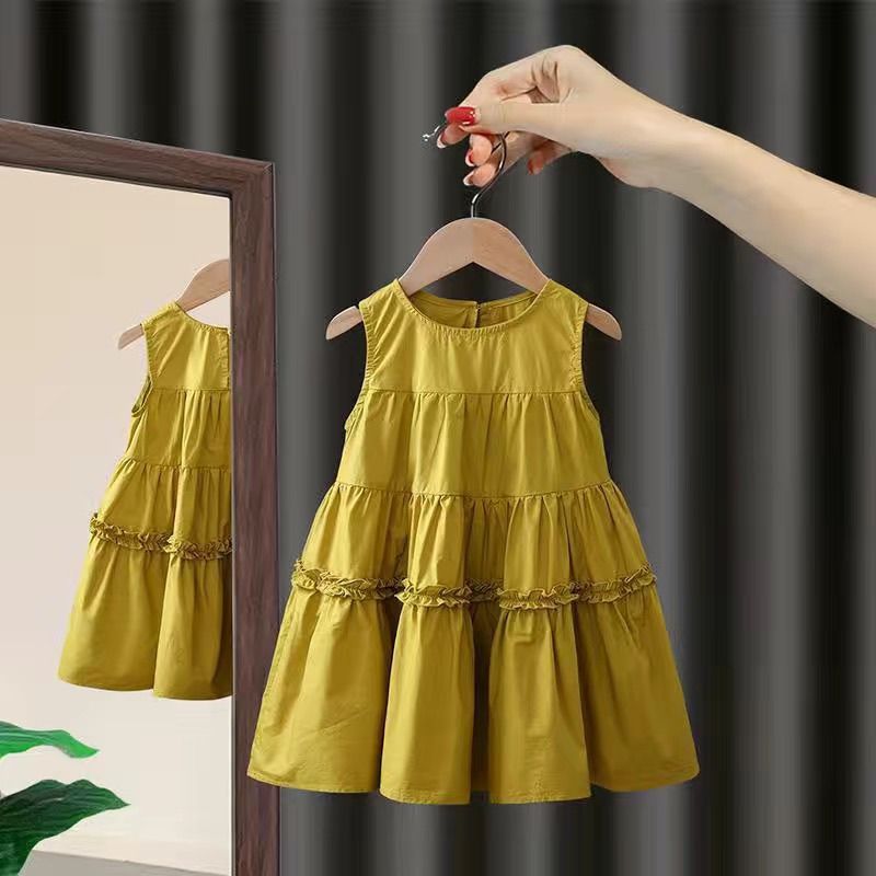여자 2025 여름 새로운 민소매 솔리드 컬러 드레스 아기 스타일 중간 길이 코튼 공주 드레스 한국어 버전
