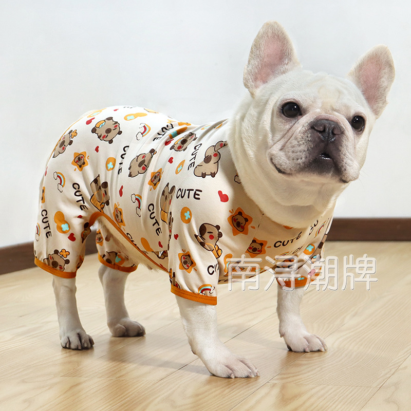 개 봄 네 다리 의류 스트레치면 귀여운 뚱뚱한 개 애완 동물 의류 방법 싸우는 개 푸고 개 여름 얇은 에어컨스토어 가기
