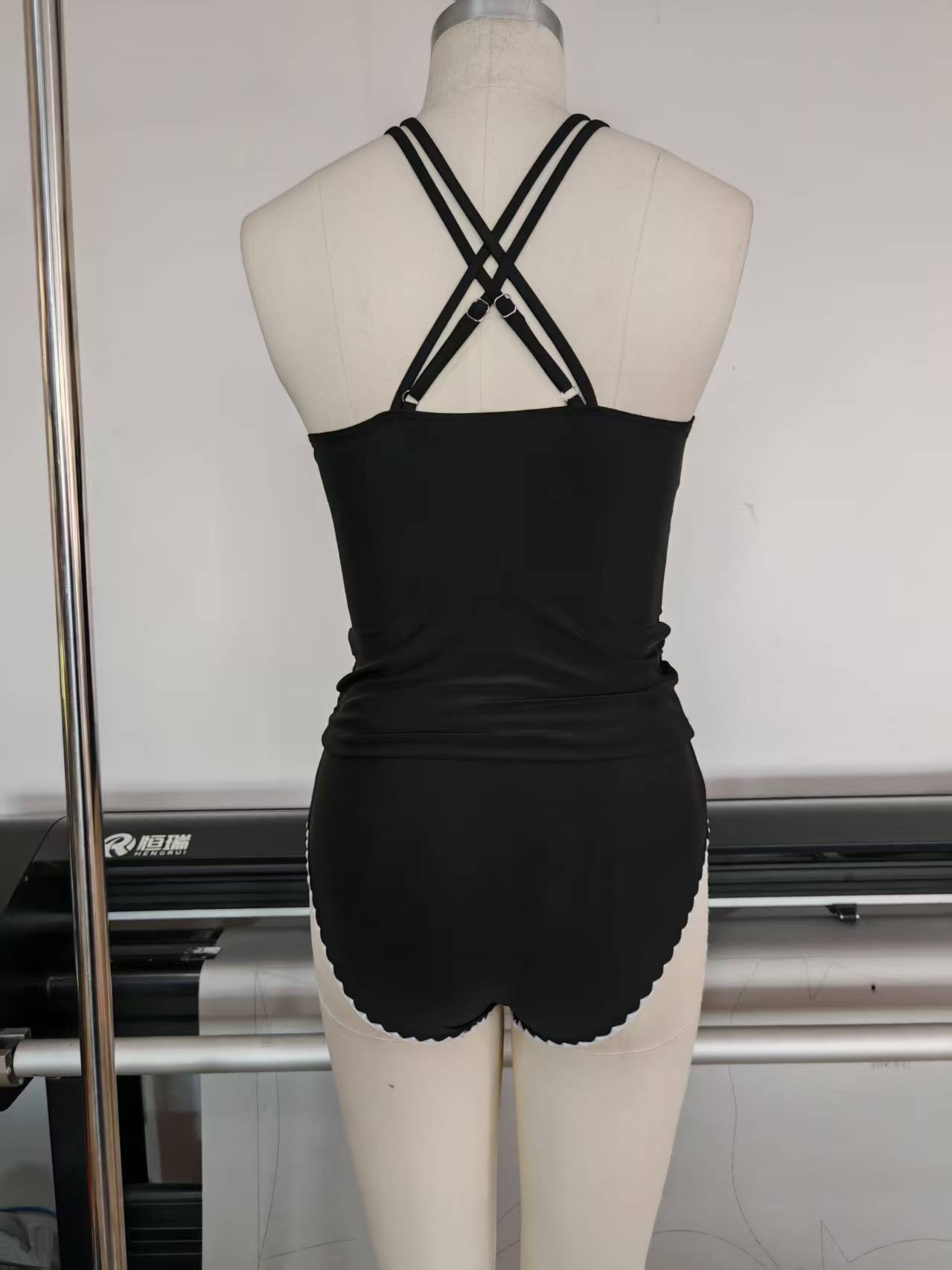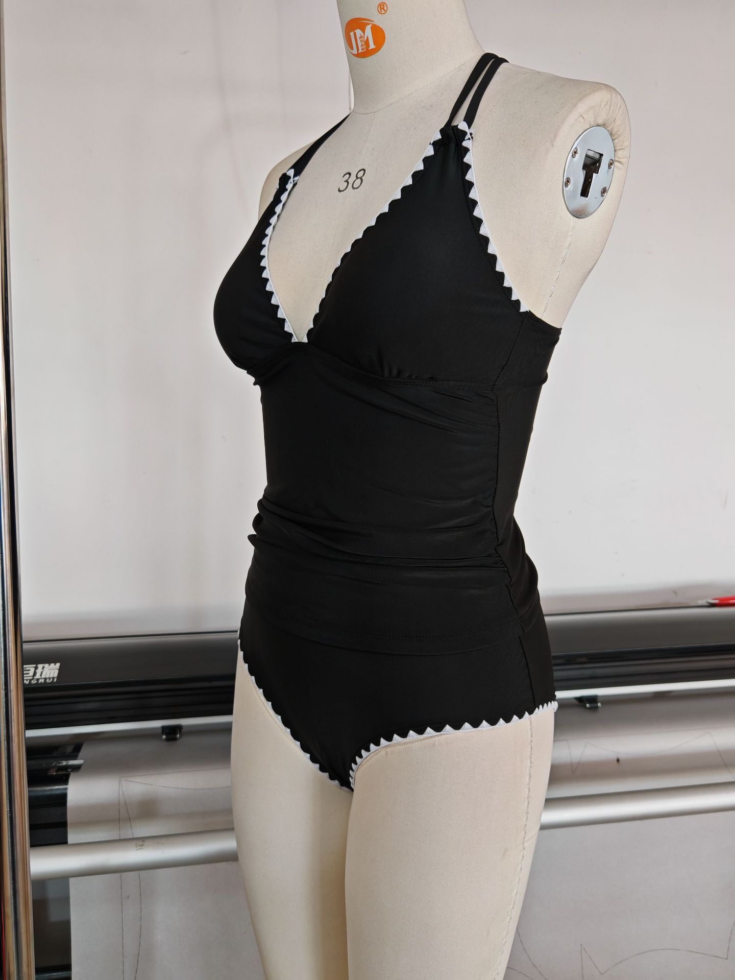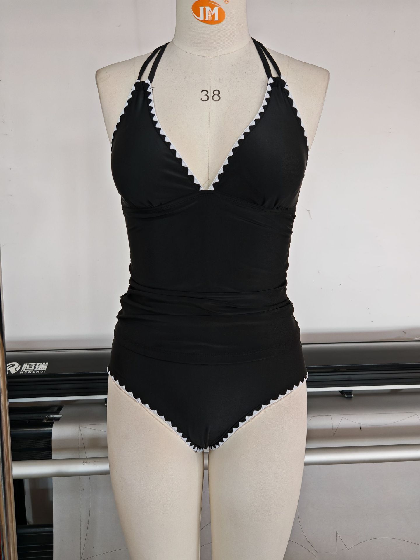 유럽과 미국의 새로운 대비 색상 섹시한 수영복 투피스 여성 여름 해변 휴가 스타일 로우 넥 슬리밍 여성 비키니