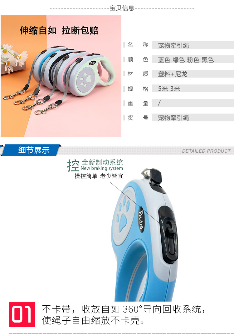 애완동물 용품 신제품 강아지 산책용 자동 신축식 목줄, 중소형견용 방폭 충격 방지 개줄, 탄성 목줄스토어 가기