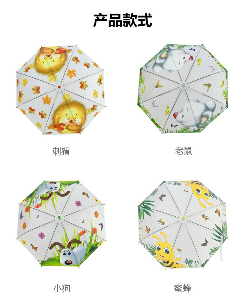 경량 학생용 우산 19inch 직선 뼈 구부러진 팔꿈치 휴대용 디자인 동물 무늬 자동 개폐, 제조업체에서 직접 공급스토어 가기