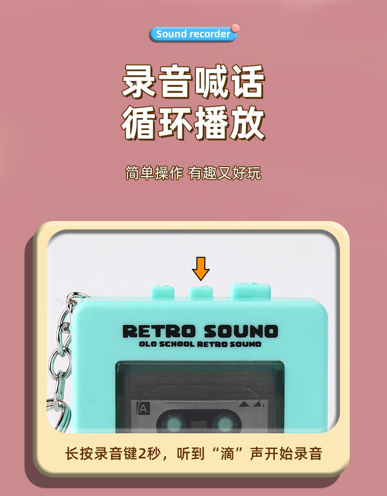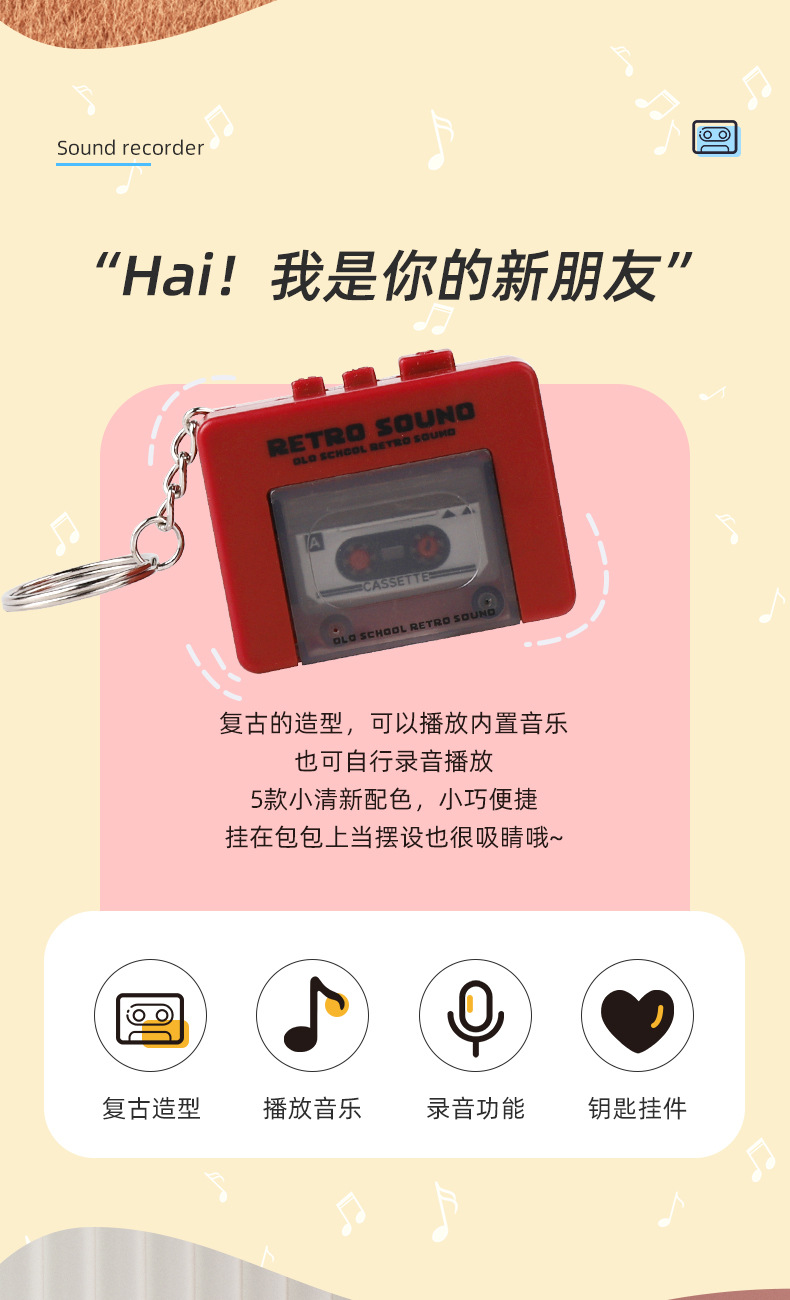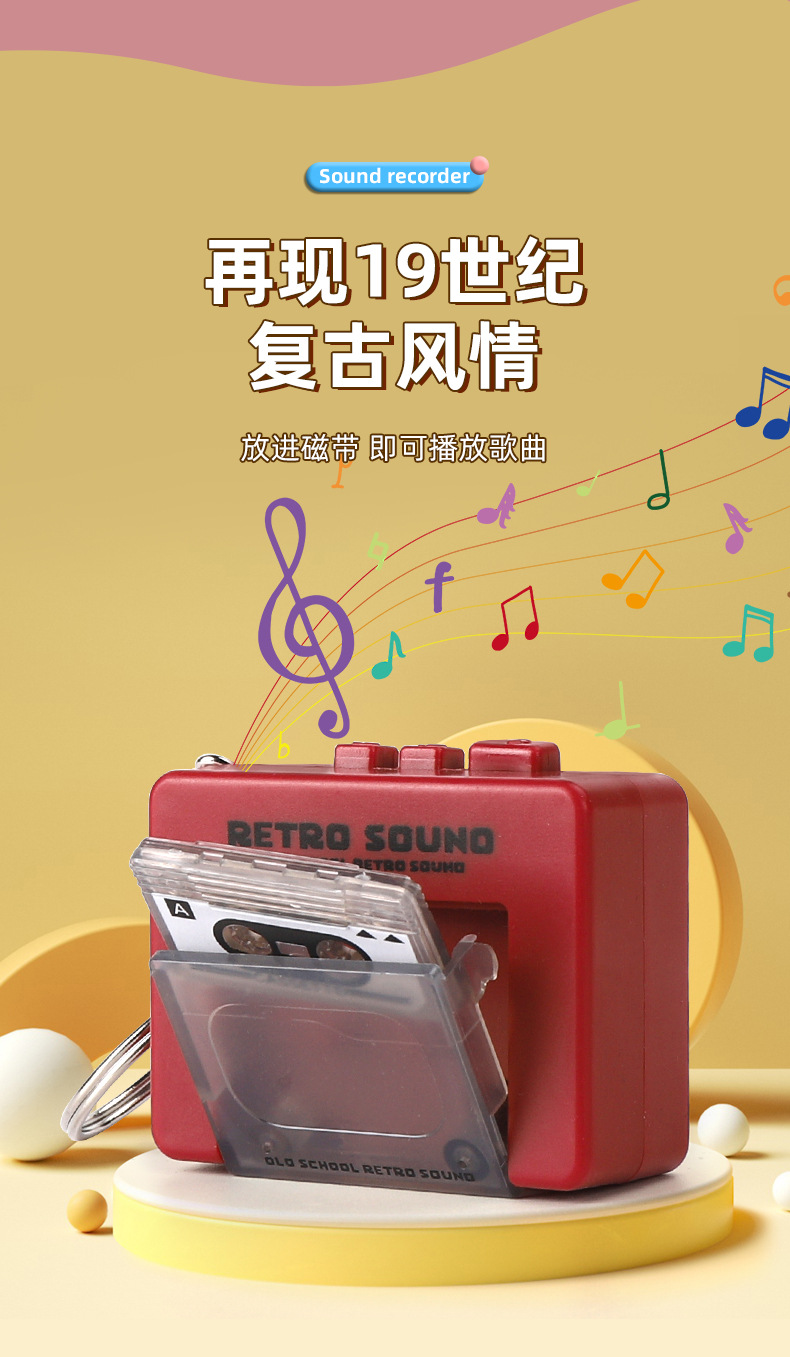 창조적 인 복고풍 테이프 레코더 키 체인 배낭 펜던트 학생 작은 선물 장난감 도매는 녹음을 노래합니다