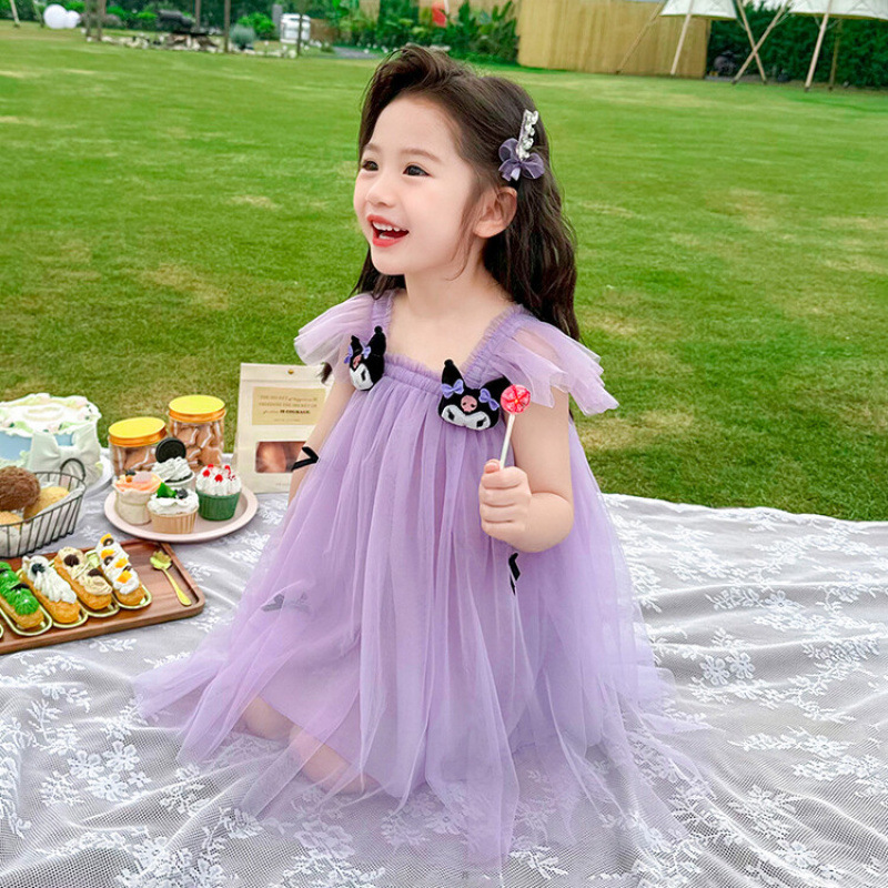 소녀 원피스 2025 년 여름 새로운 도착 버섯 어린이 소녀 슬링 스커트 어린 소녀 공주 스커트 여름 원피스