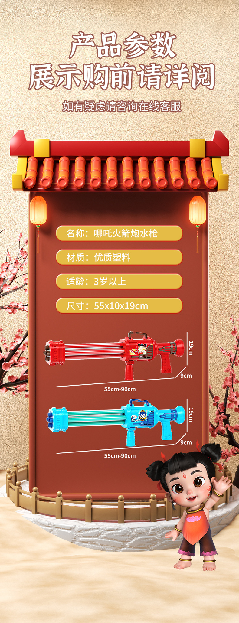 • 51CM 정품 공인 Nezha 단일 배럴 로켓 발사기 물대포 [빨간색]