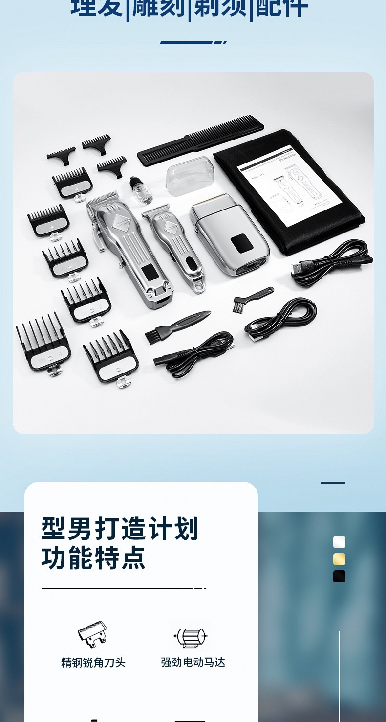 국경 간 핫 세일 3 세트 엄마와 어머니 전기 클리퍼 남자 홈 헤어 미용사 헤어 살롱 하이 파워 헤어 클리퍼