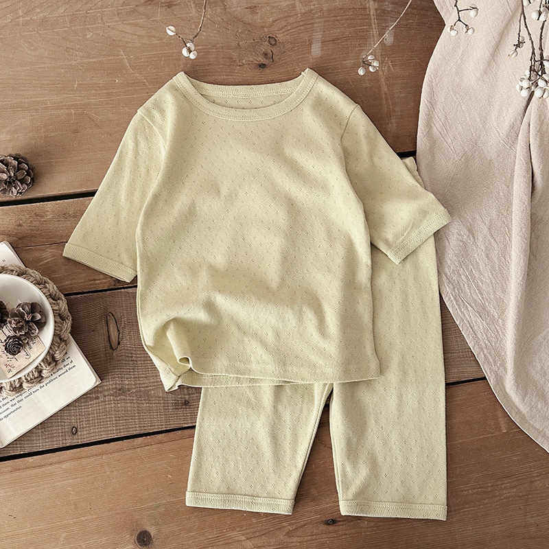 어린이 잠옷 얇은 순면 카테고리 소년 소녀 7 소매 여름 세트 아기 에어컨 홈 의류 여름 옷