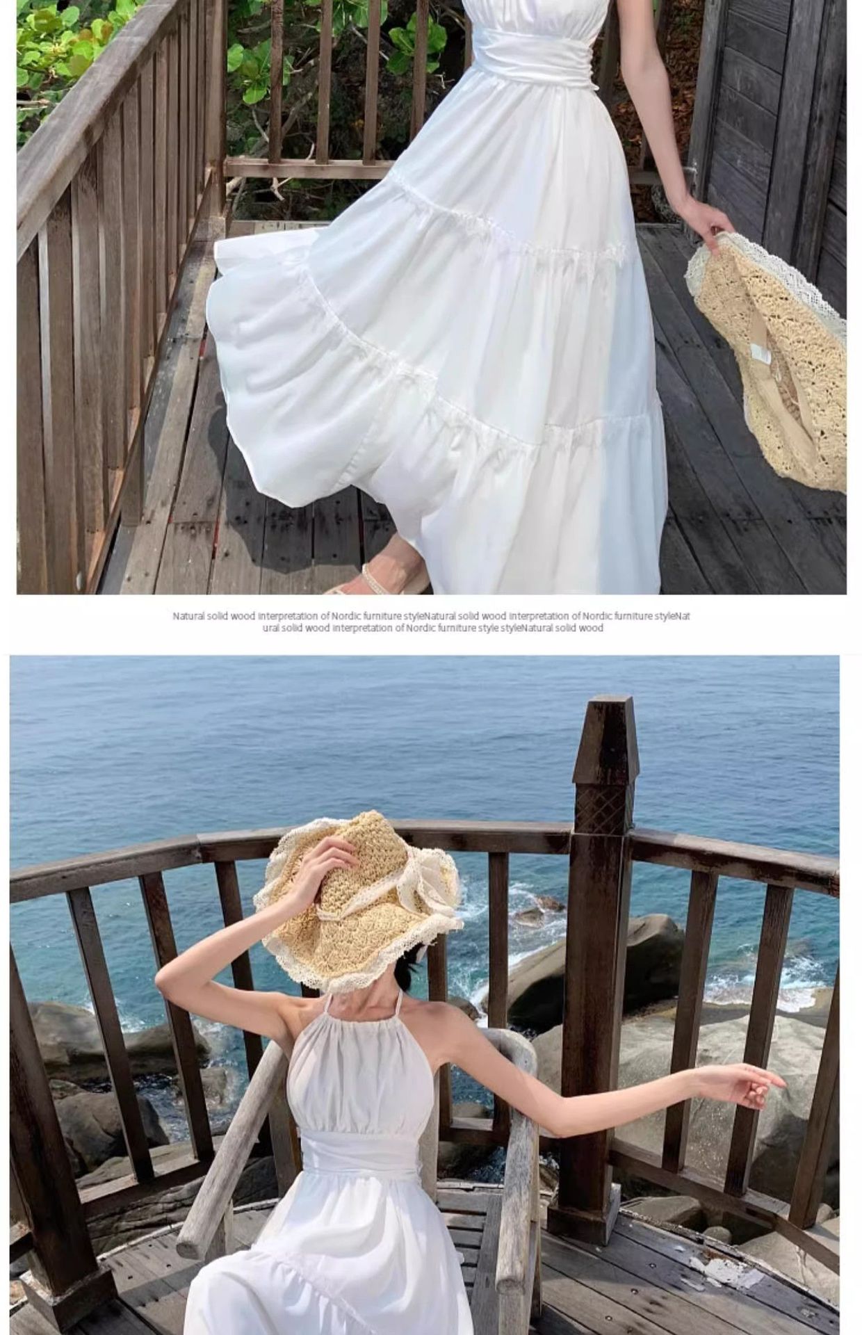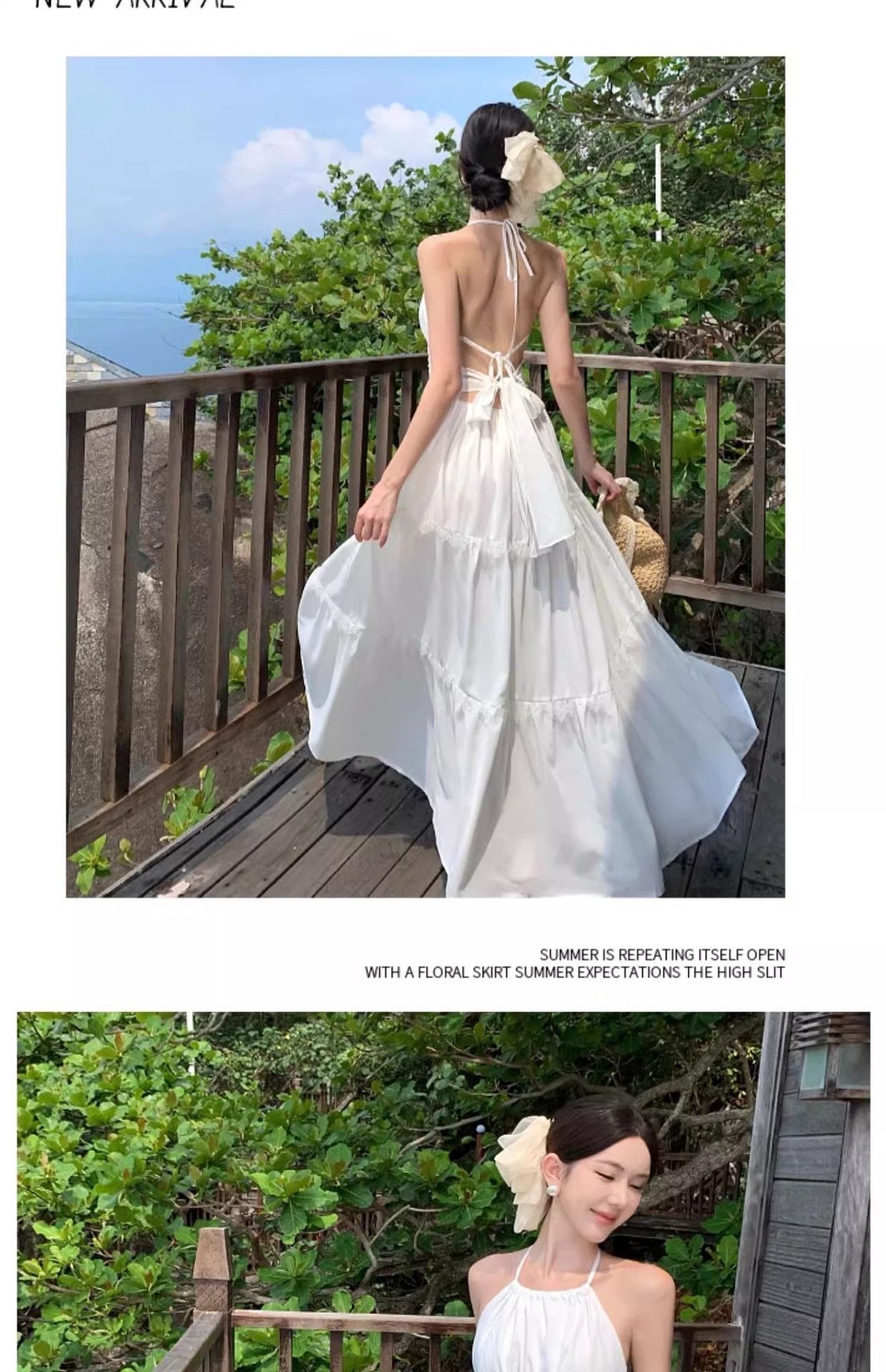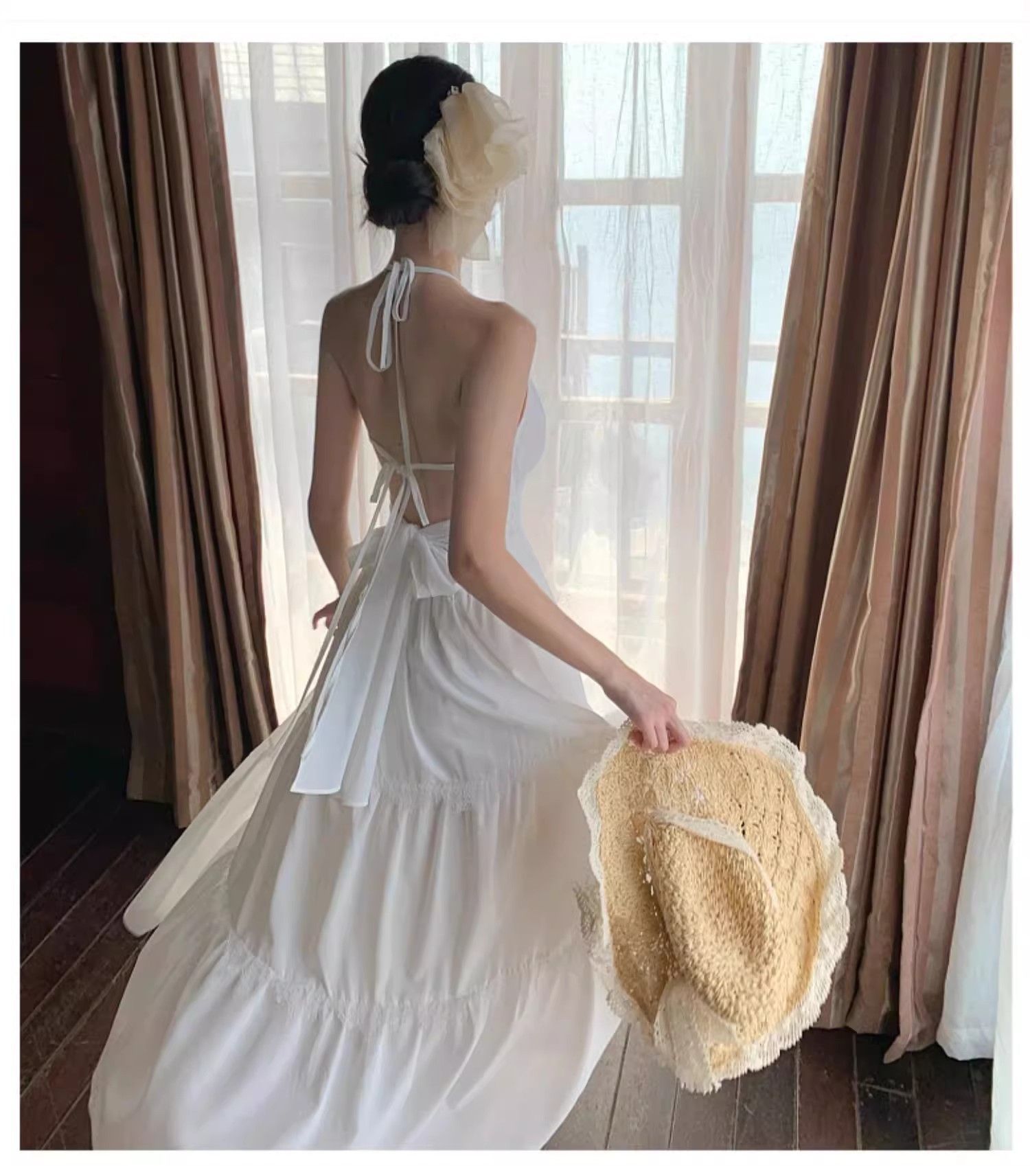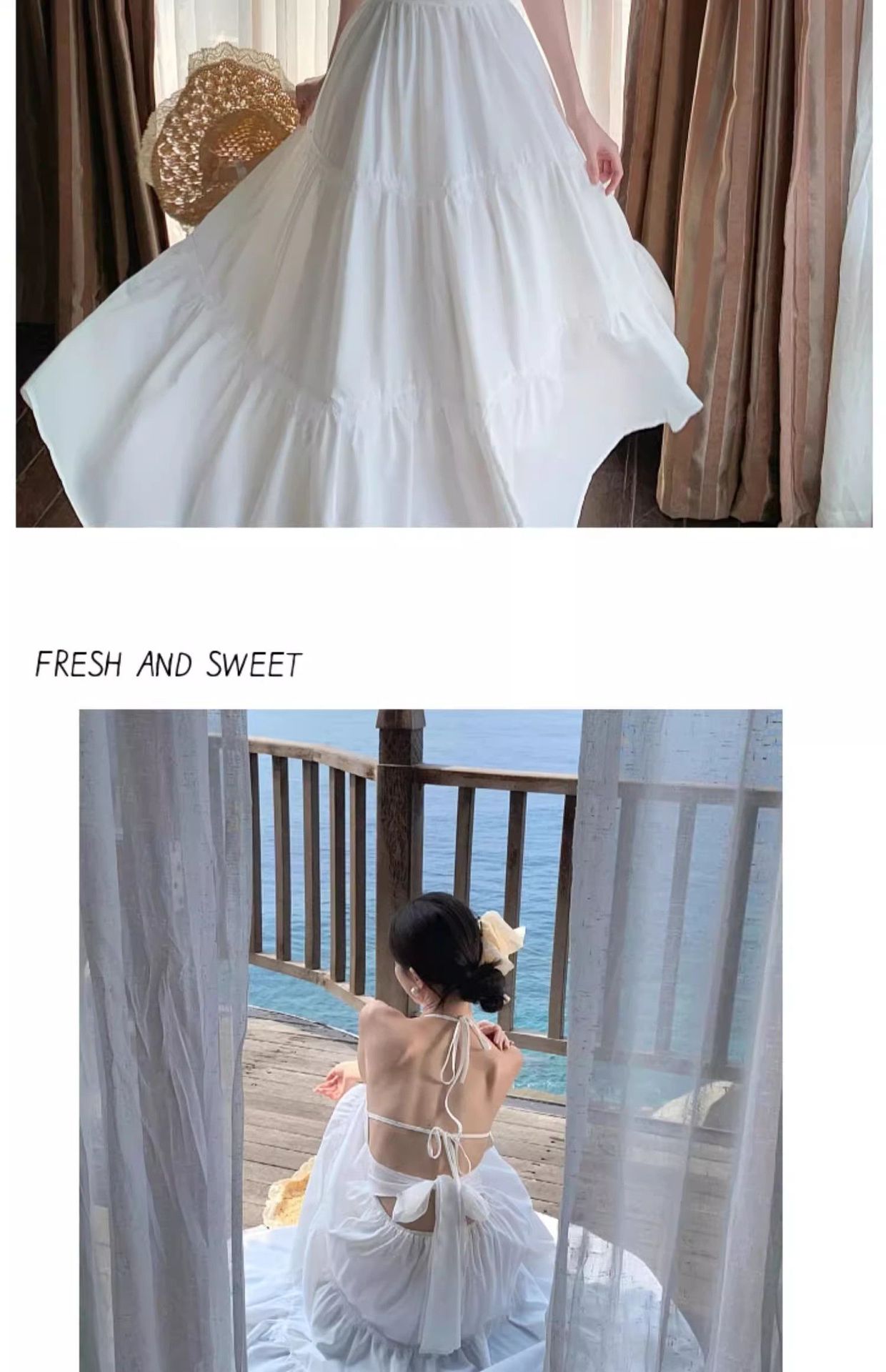 해변 휴가 스타일 디자인 레이스 업 비치 스커트 여름 새로운 틈새 달콤한 백리스 홀터넥 드레스스토어 가기