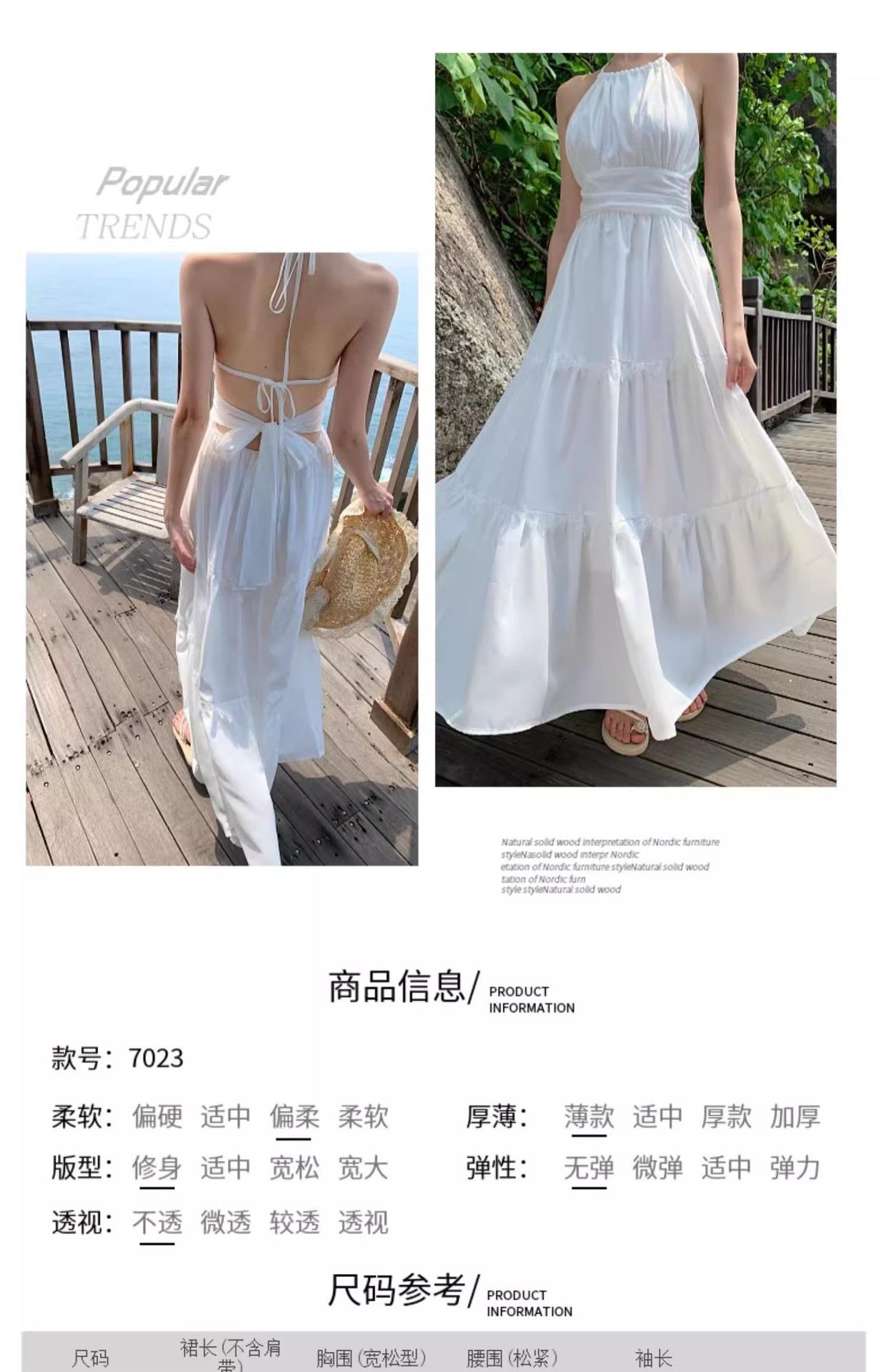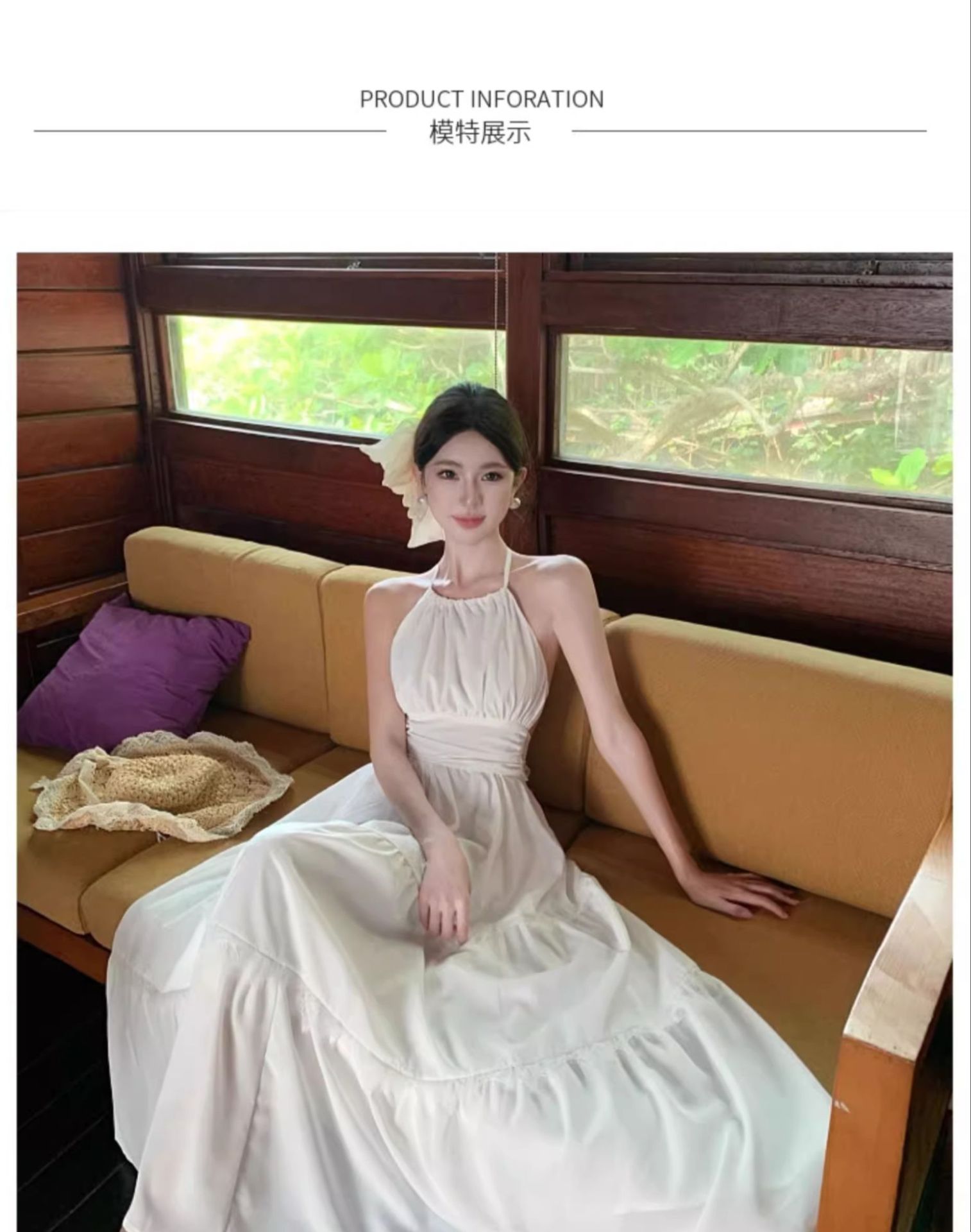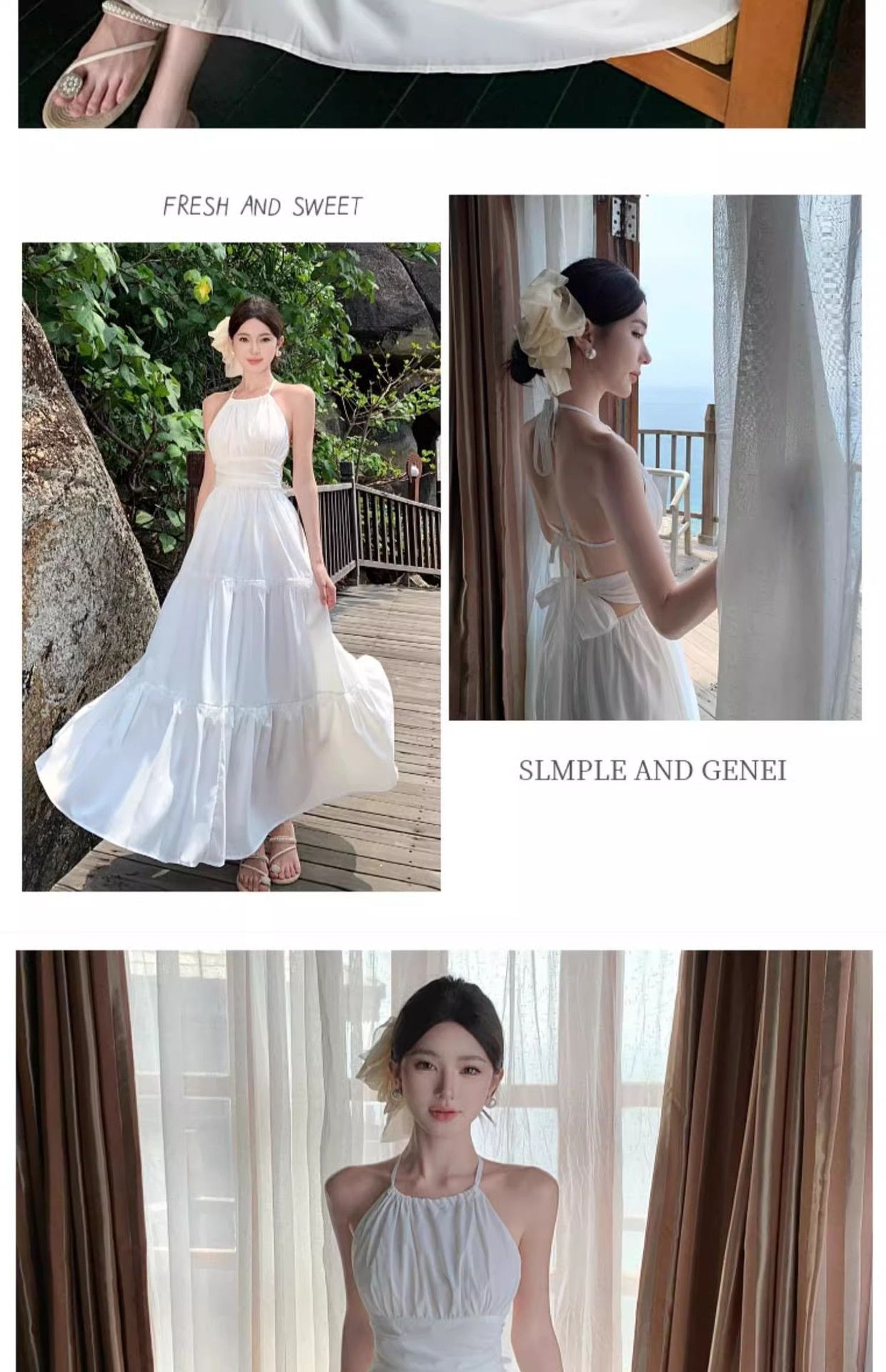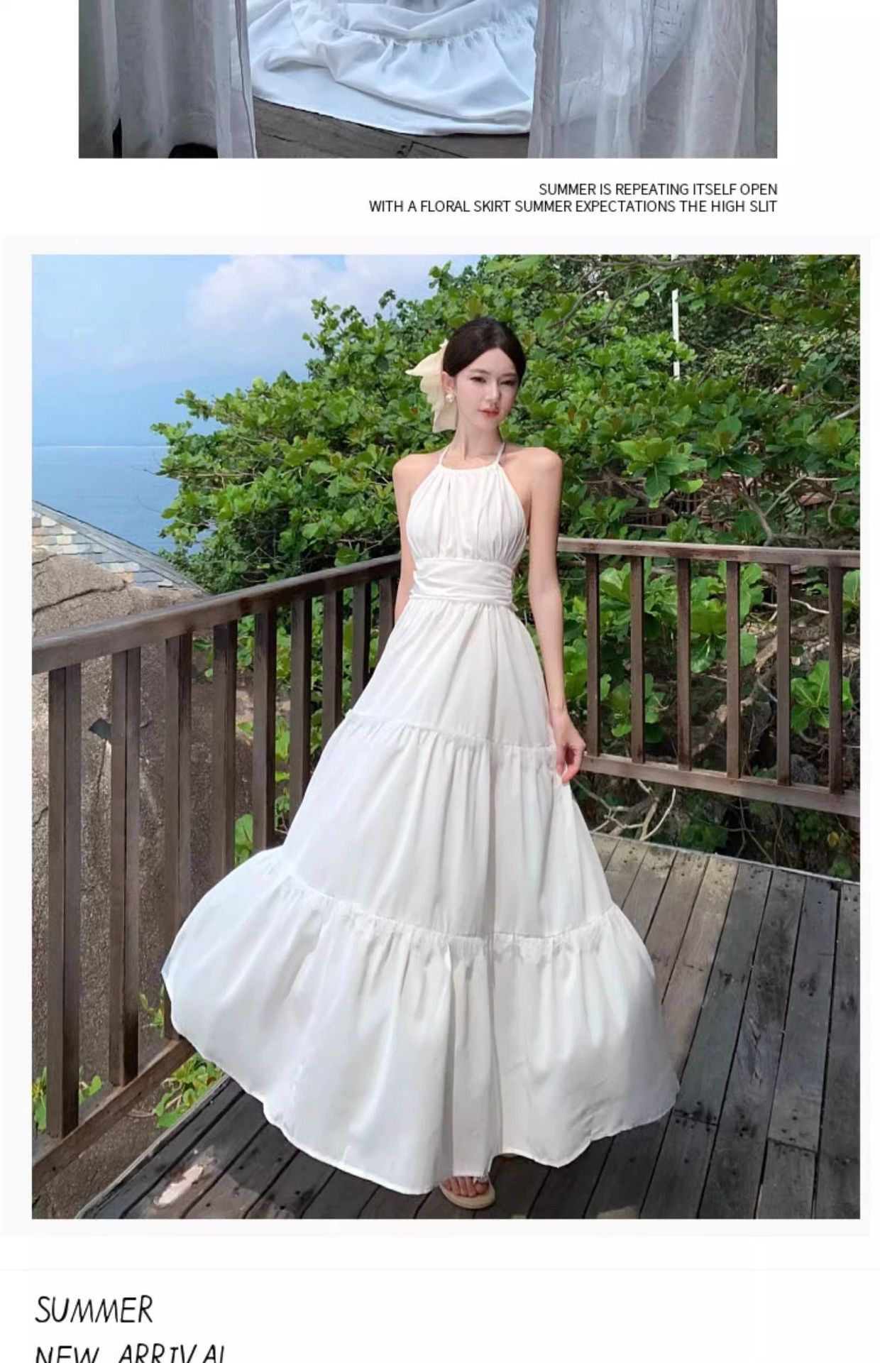해변 휴가 스타일 디자인 레이스 업 비치 스커트 여름 새로운 틈새 달콤한 백리스 홀터넥 드레스스토어 가기