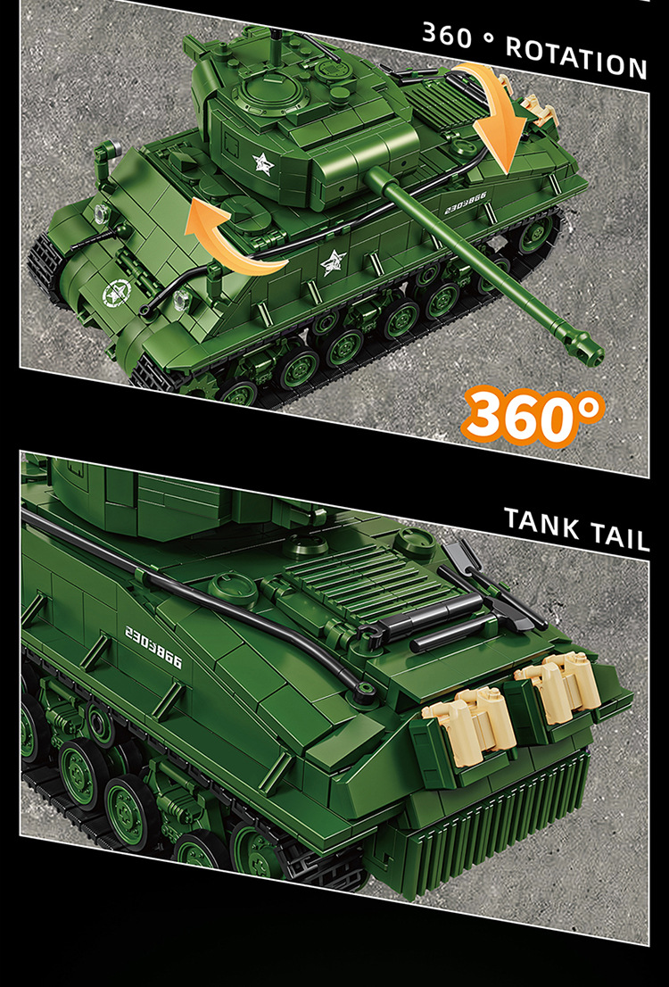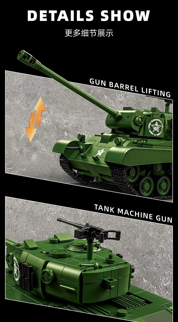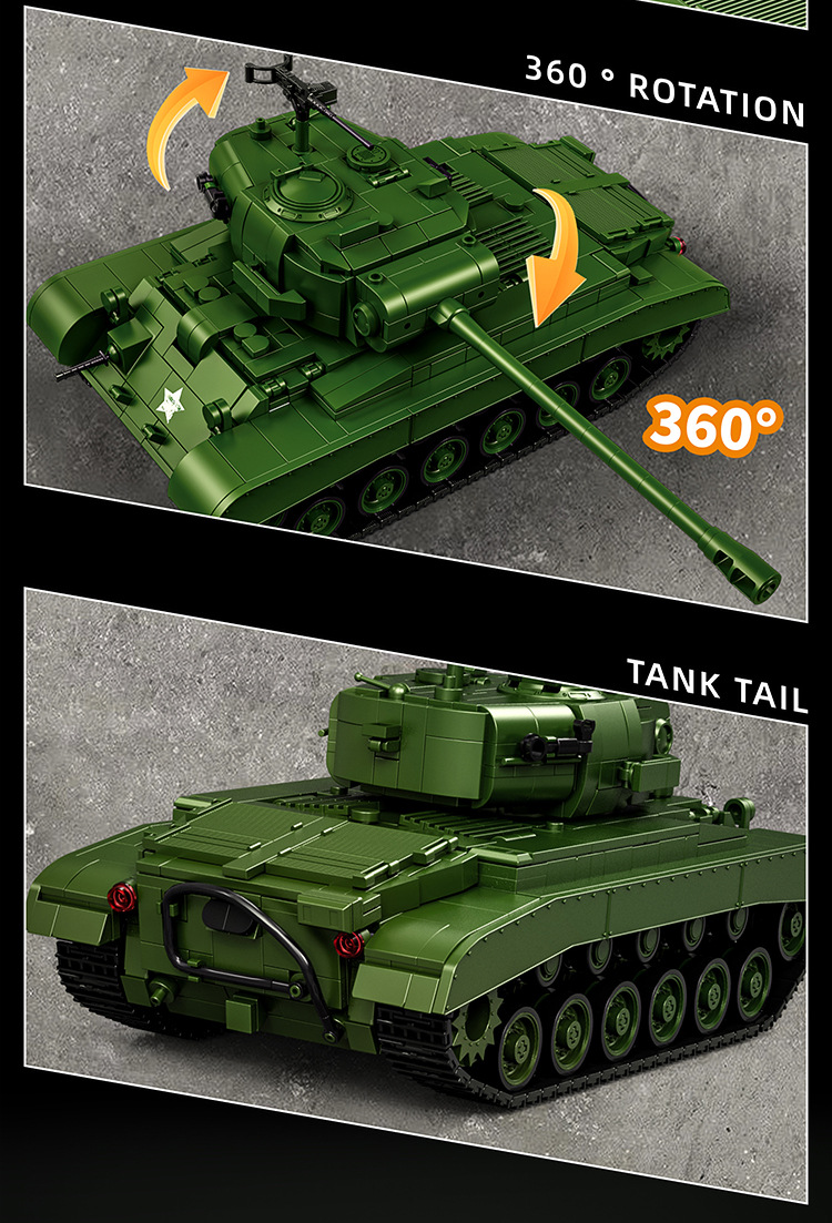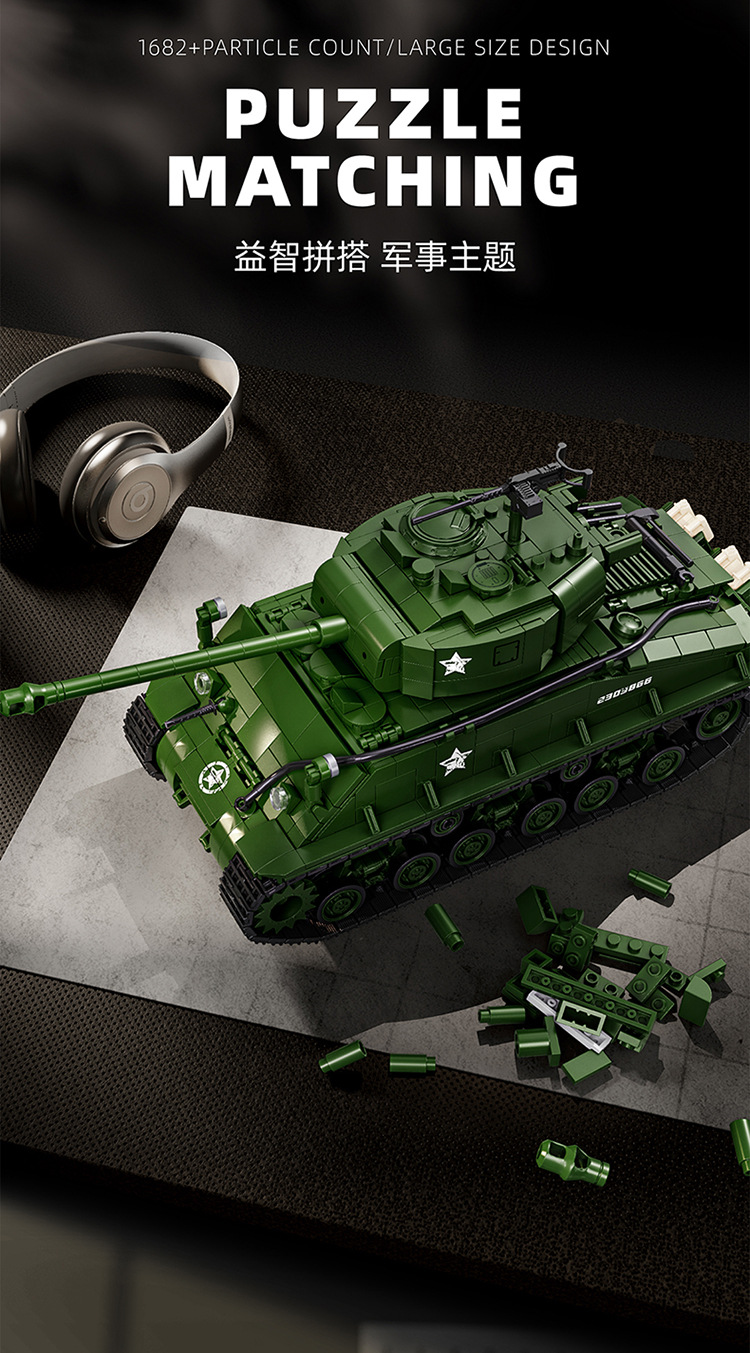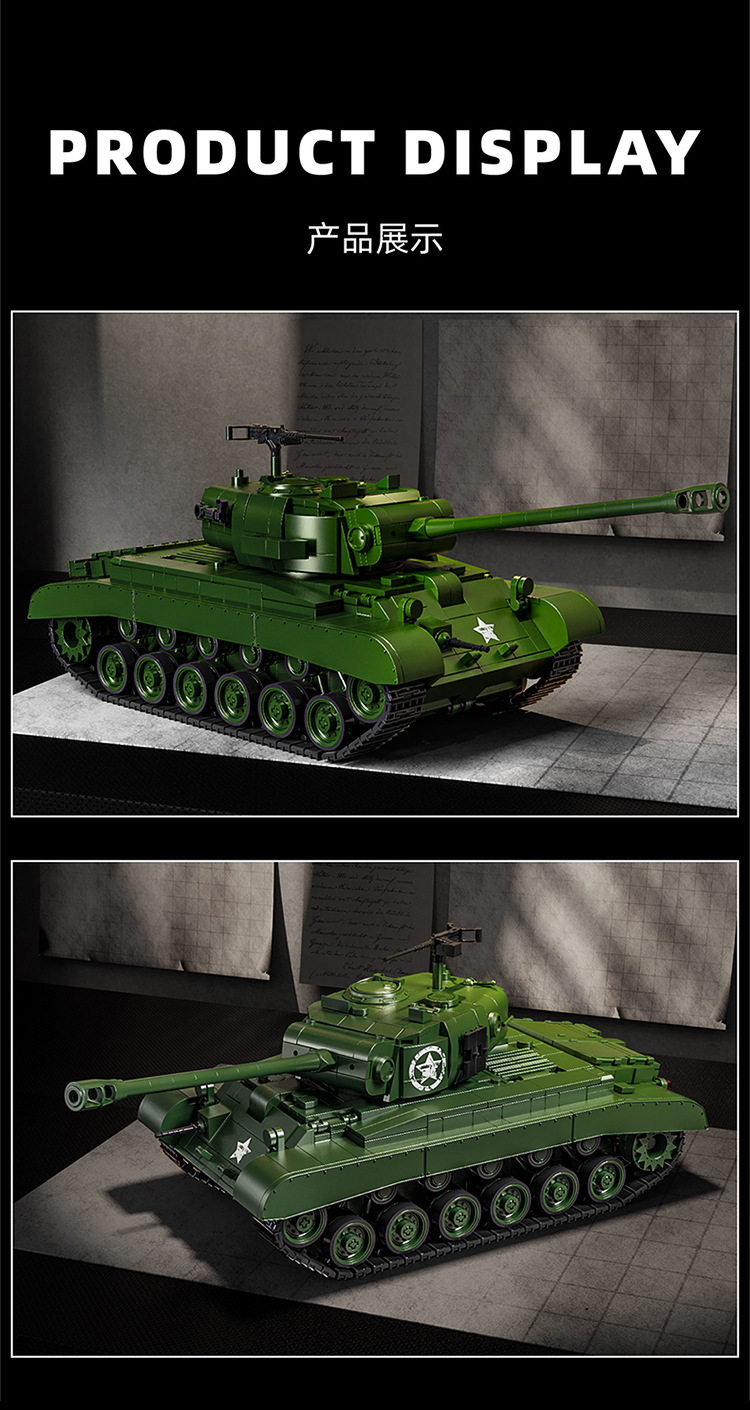 12GO97011 제 2 차 세계 대전 미국 M26 퍼싱 무거운 탱크 높은 난이도 조립 된 Puetic 빌딩 블록 국경 장난감