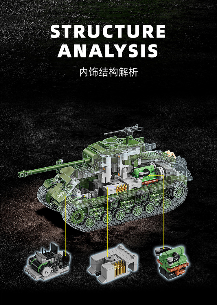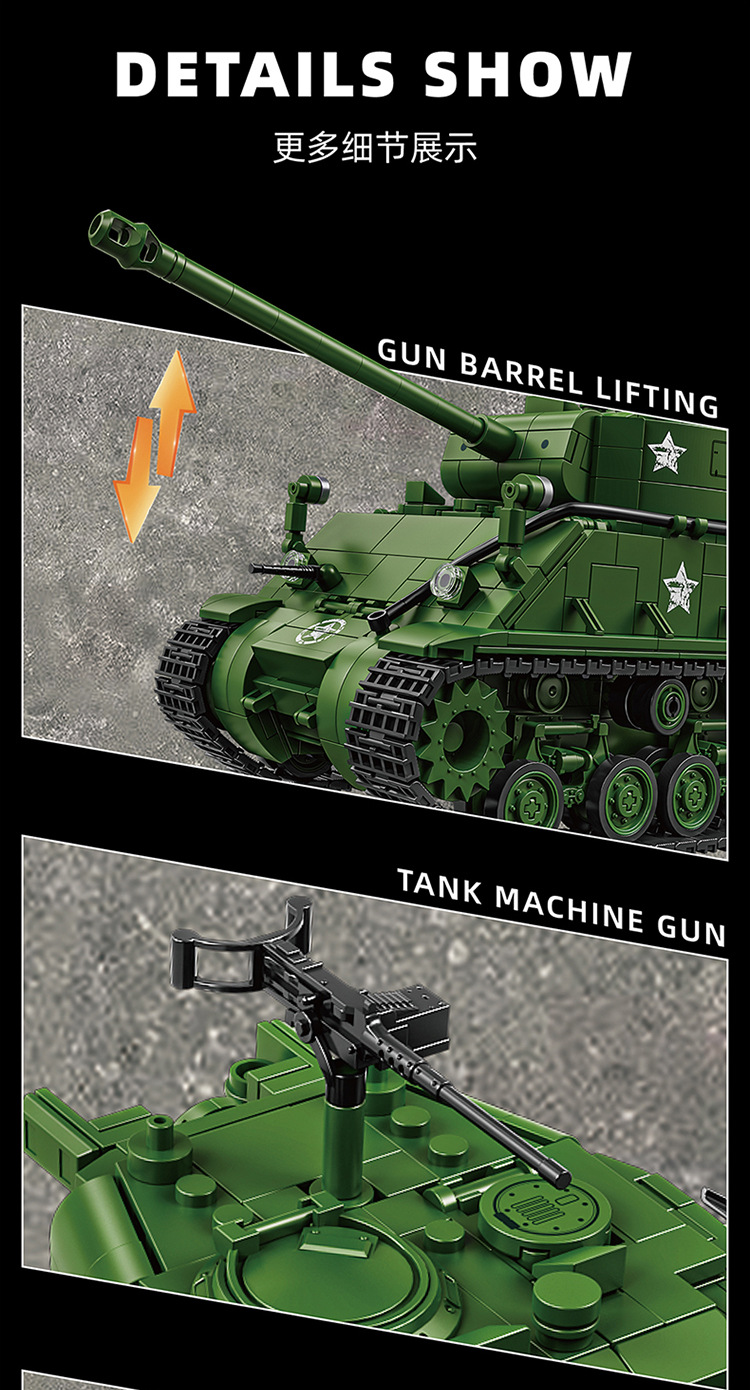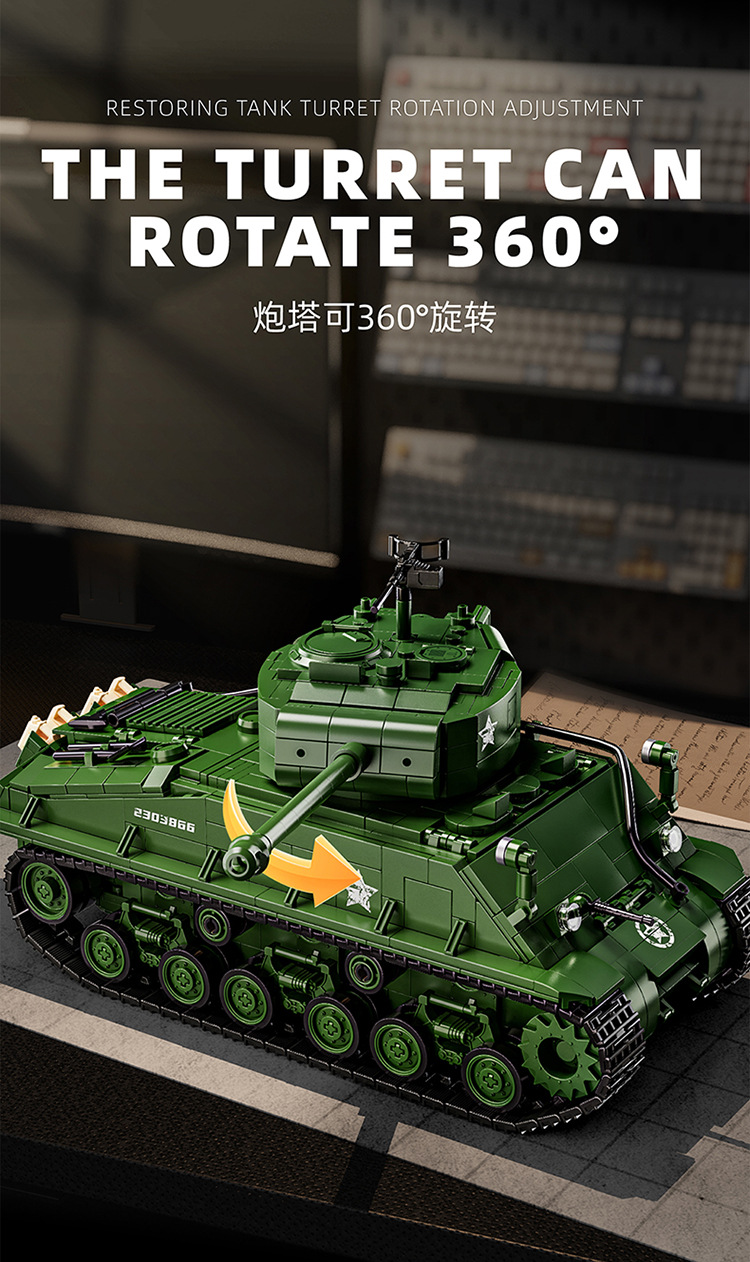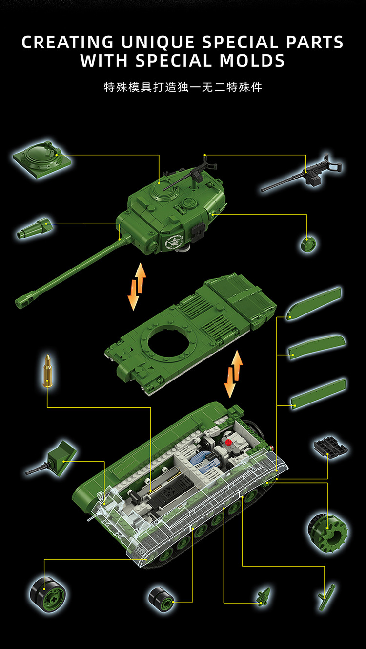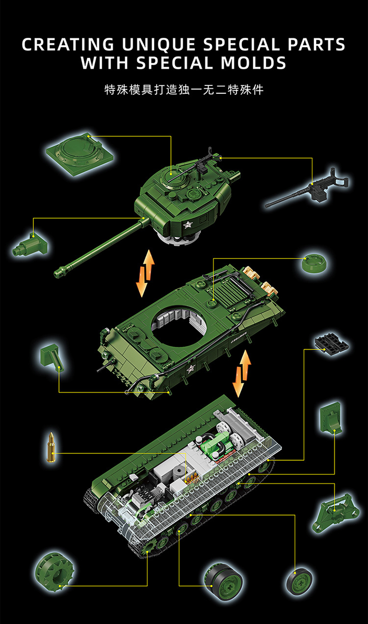 12GO97011 제 2 차 세계 대전 미국 M26 퍼싱 무거운 탱크 높은 난이도 조립 된 Puetic 빌딩 블록 국경 장난감