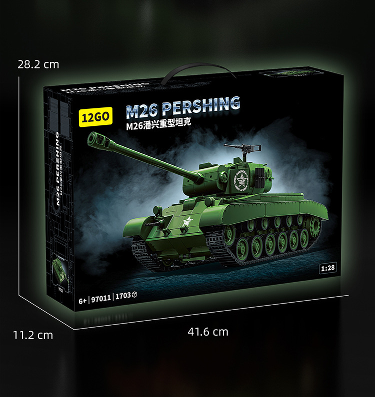 12GO97011 제 2 차 세계 대전 미국 M26 퍼싱 무거운 탱크 높은 난이도 조립 된 Puetic 빌딩 블록 국경 장난감스토어 가기