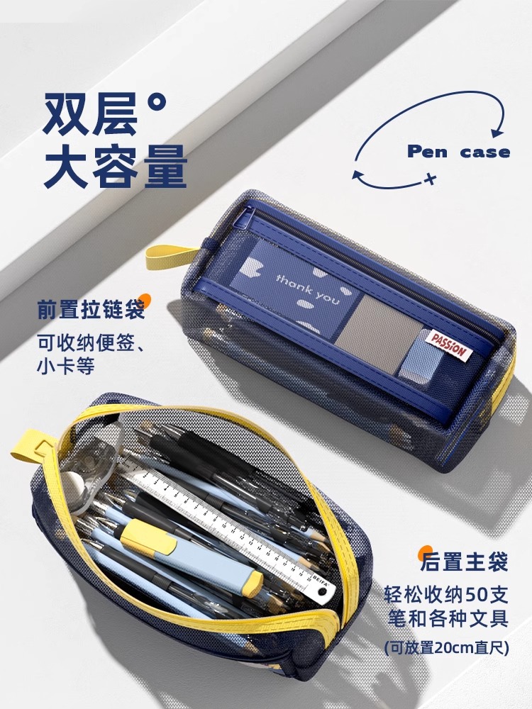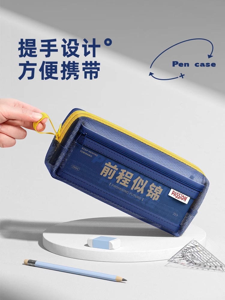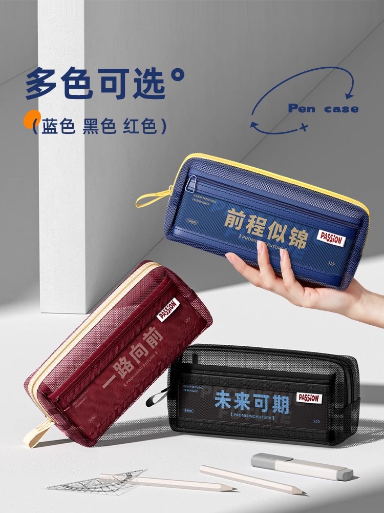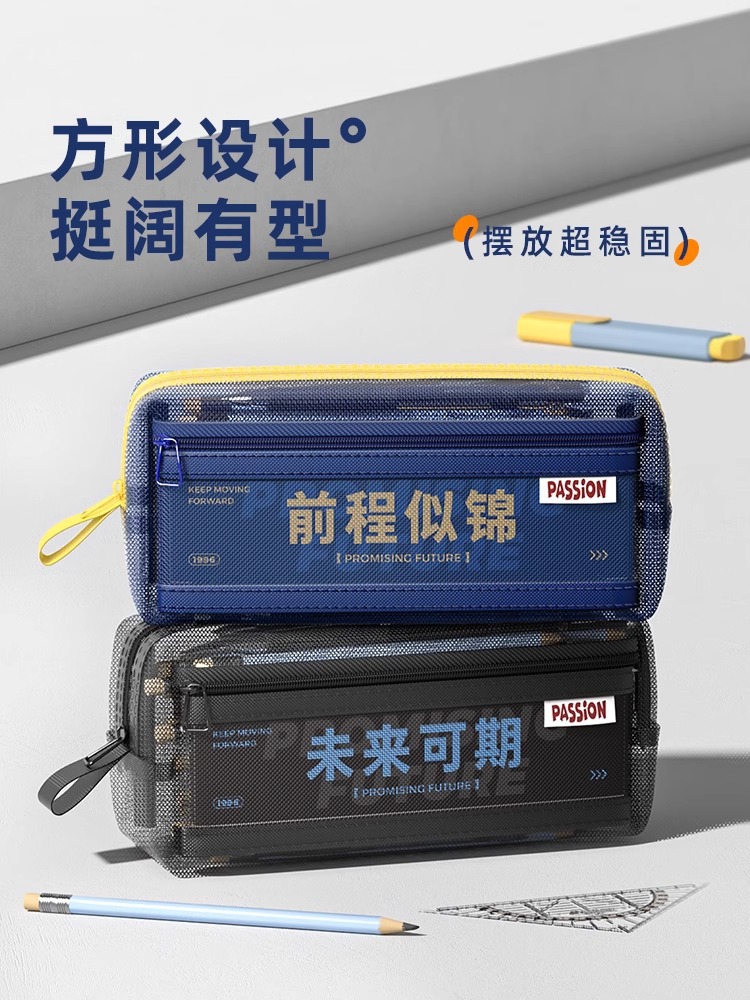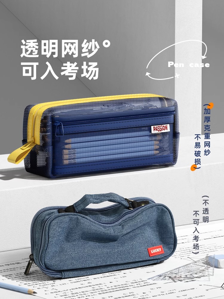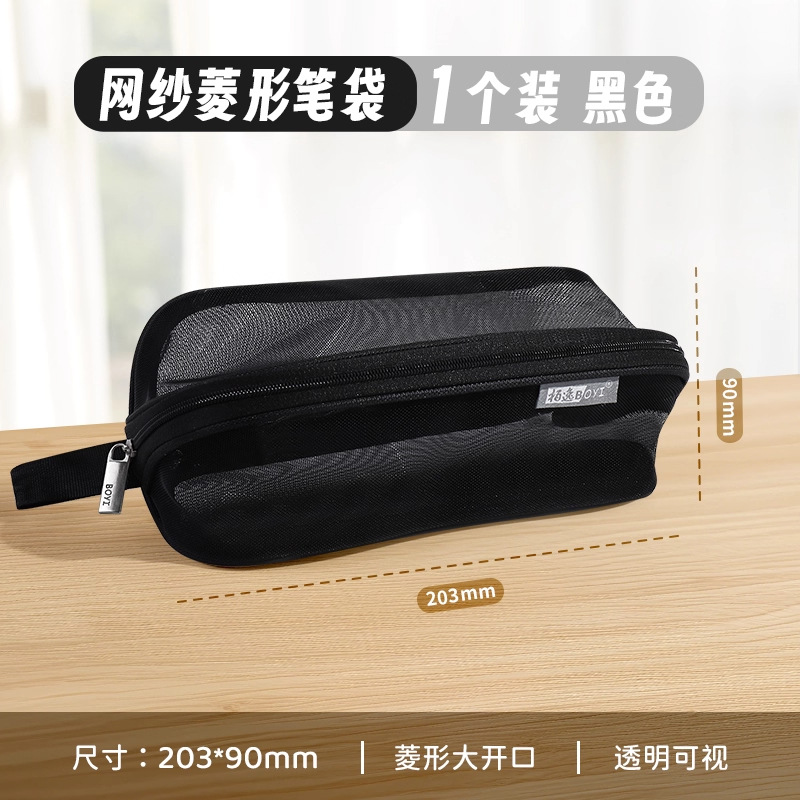 2025년 신형 투명 메쉬 필통, 멋스럽고 인기 있는 대용량, 심플한 남아 문구가방, 틈새 스타일스토어 가기