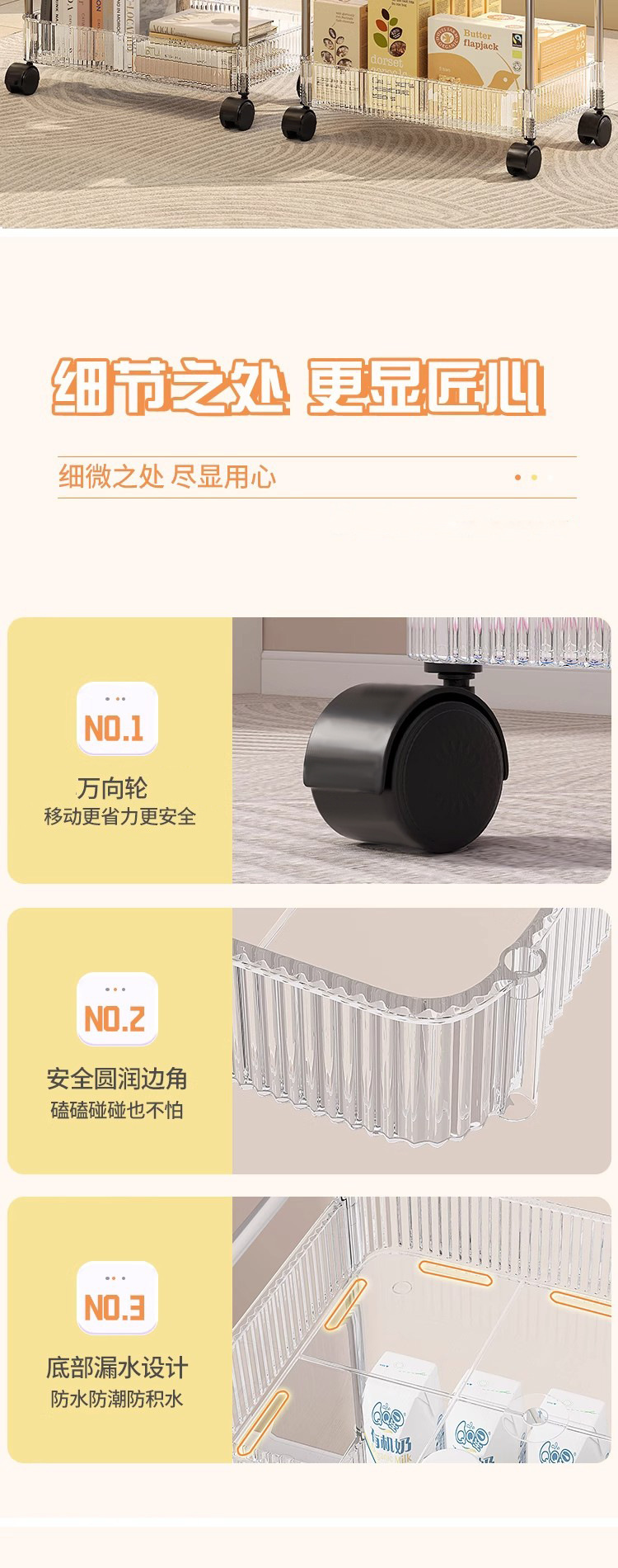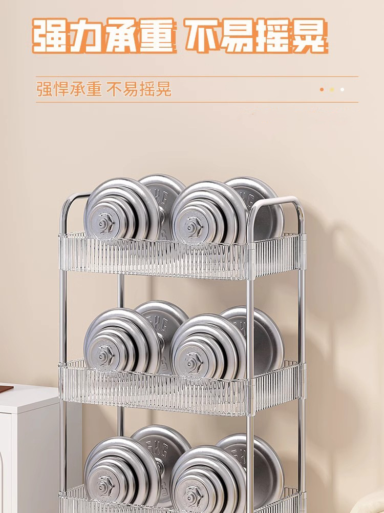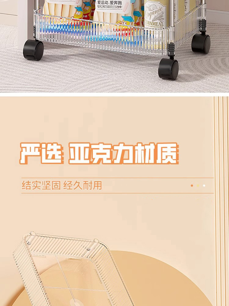 • 바구니가 없는 투명 아크릴 3겹 - 롤러 4개 포함