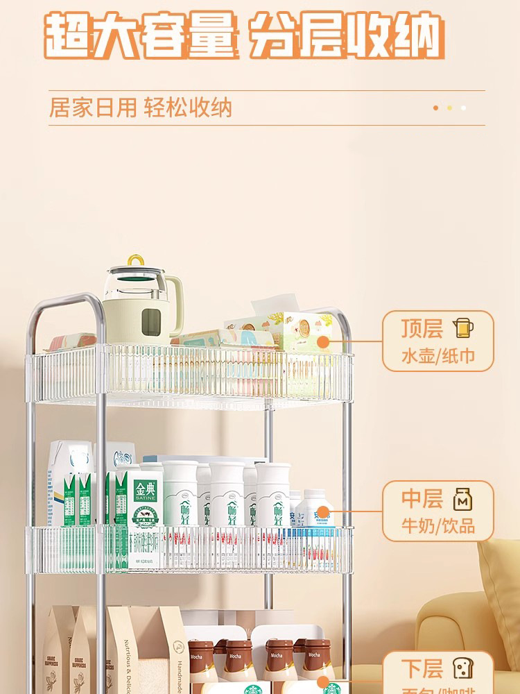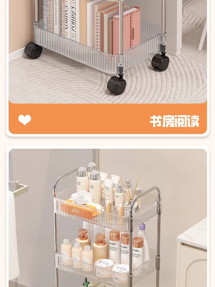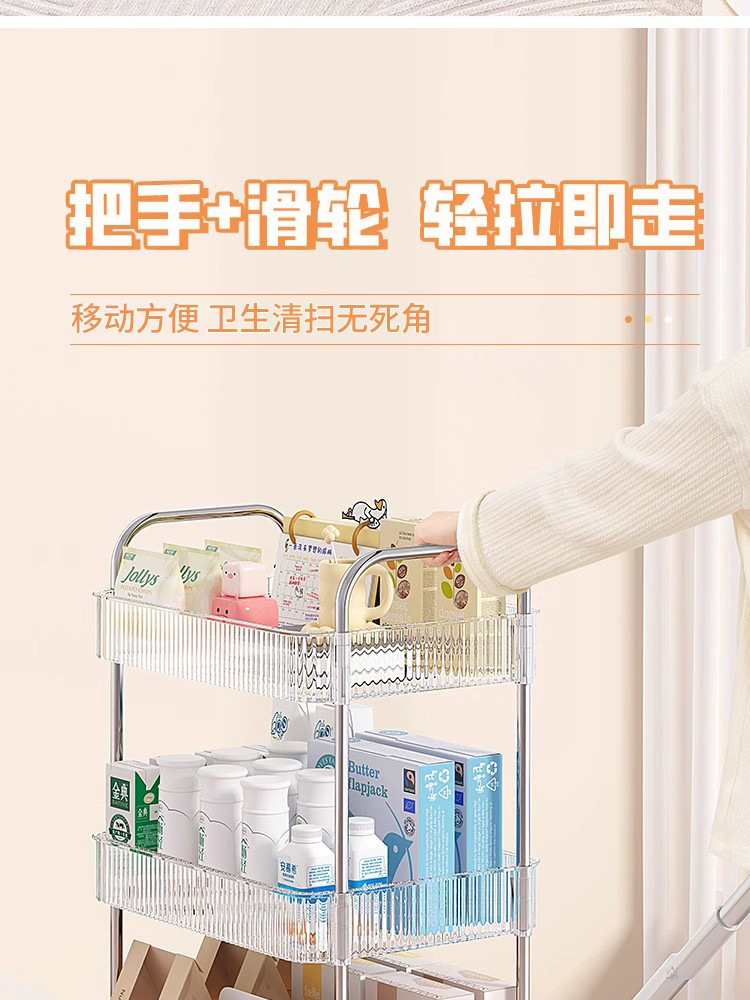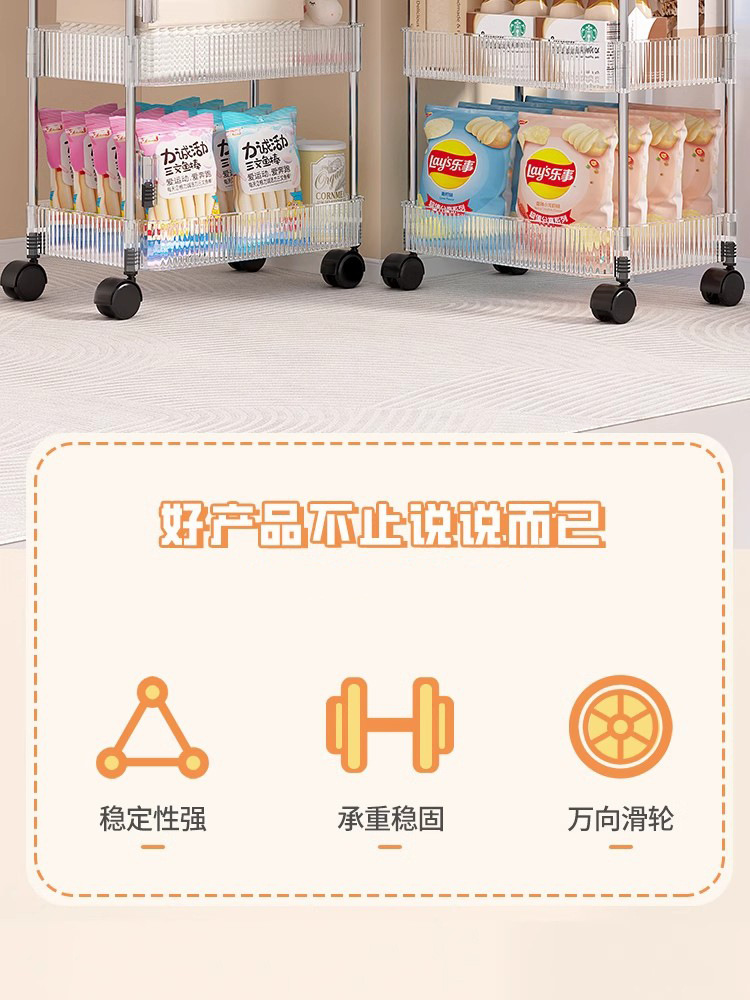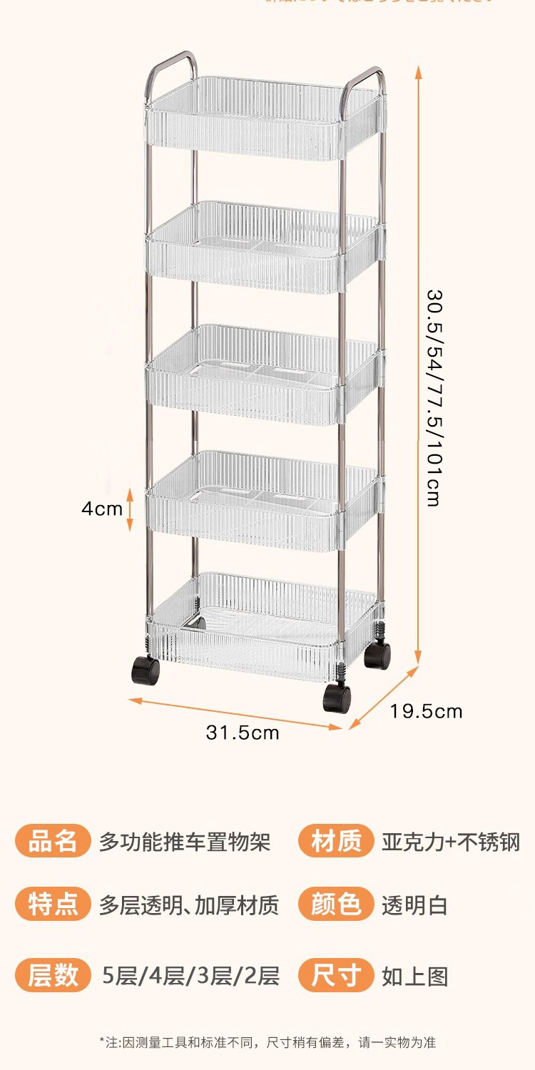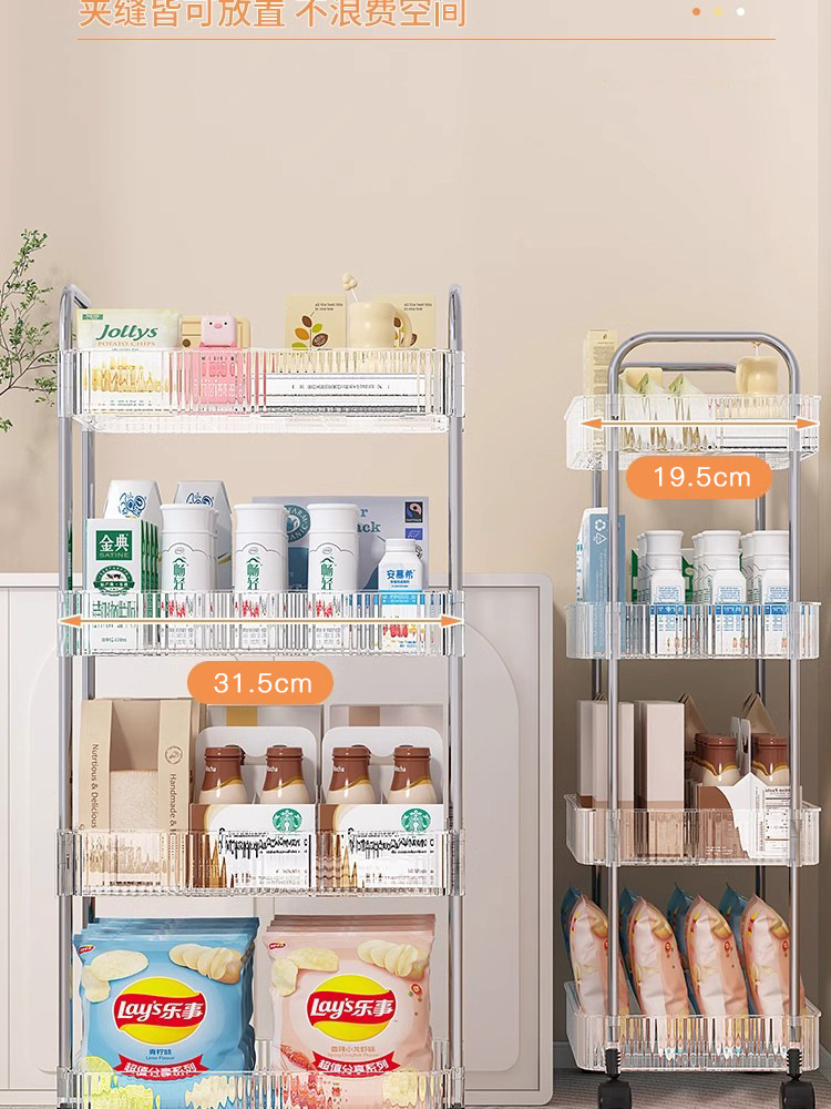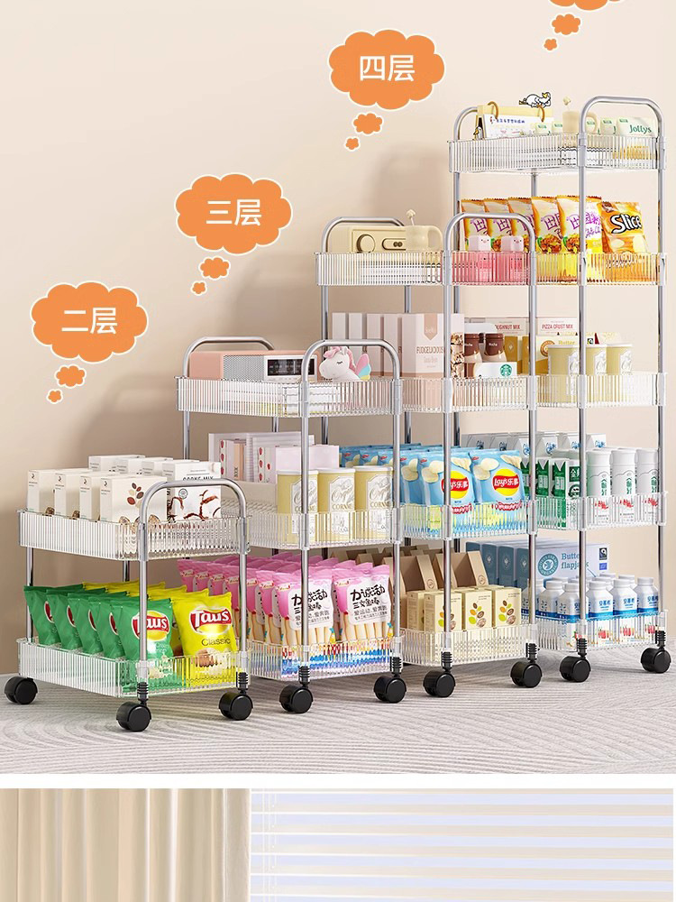 투명한 다층 수납 카트, 욕실, 침실, 침대 옆, 기숙사, 간단한 간식 보관, 화장품 보관에 적합스토어 가기