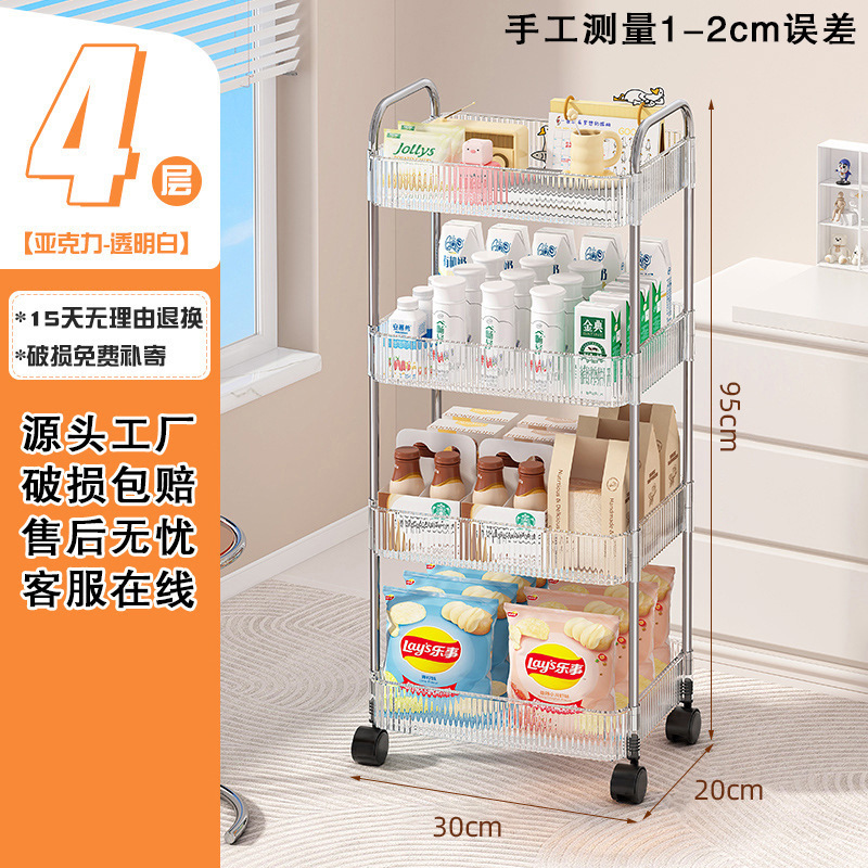 • 바구니가 없는 투명 아크릴 4겹 - 롤러 4개 포함