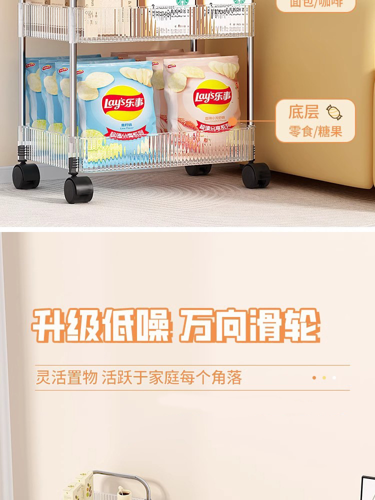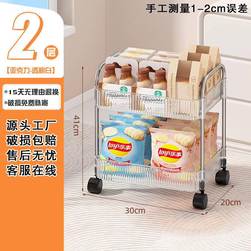 • 바구니가 없는 투명 아크릴 2겹 - 롤러 4개 포함