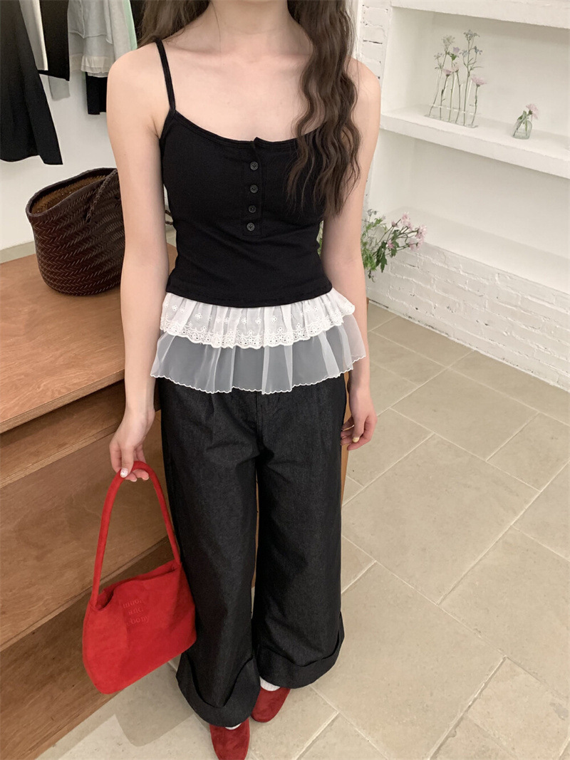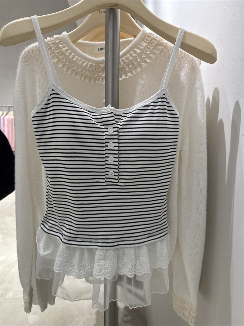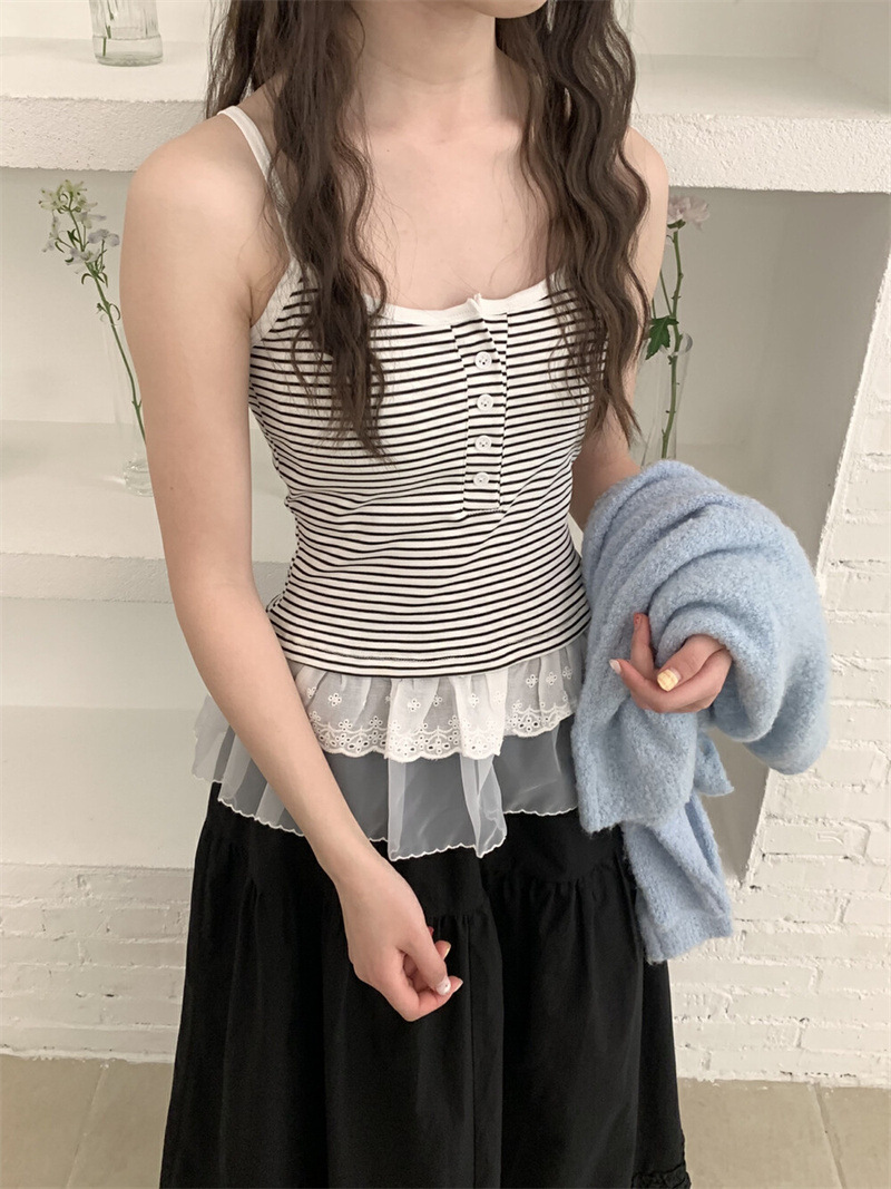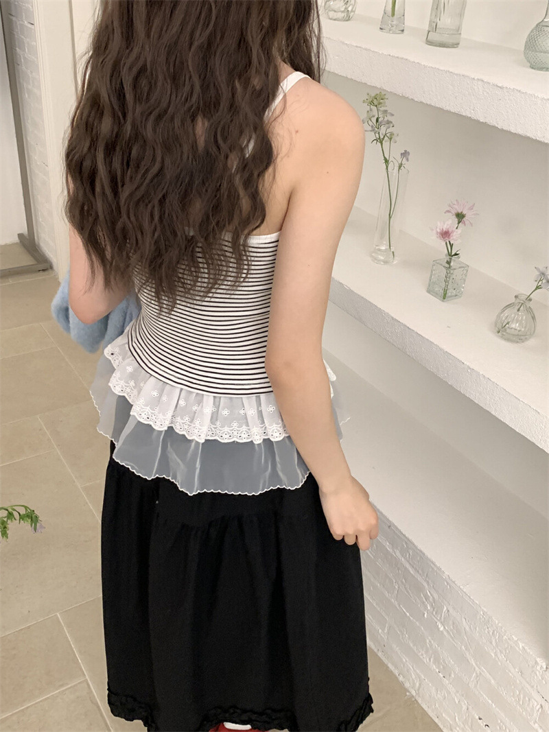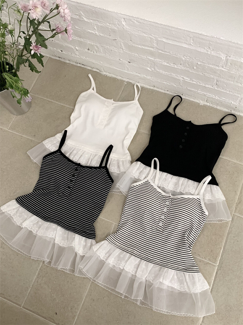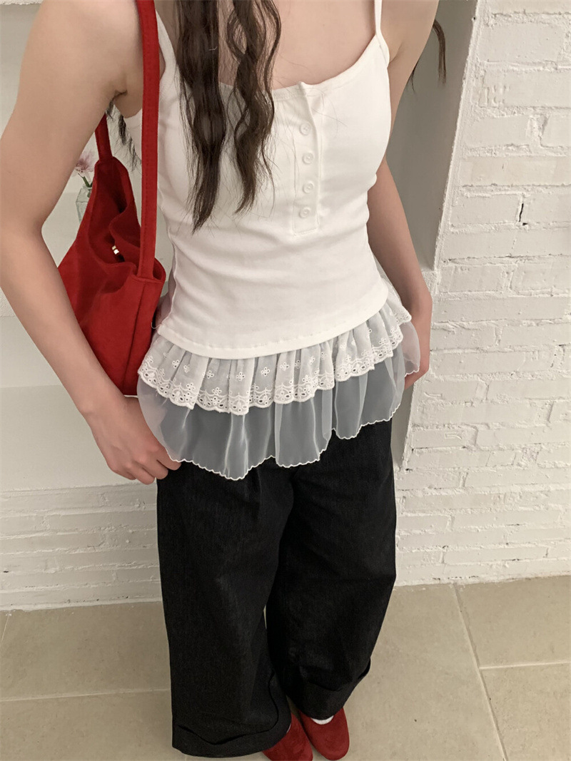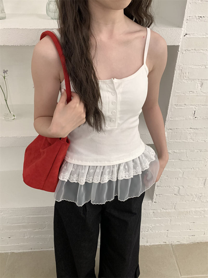한대인 블로거와 똑같은 스타일의 여성용 캐미솔, 멋스러운 더블 레이스 밑단, 엉덩이 커튼 레이어드 탑스토어 가기