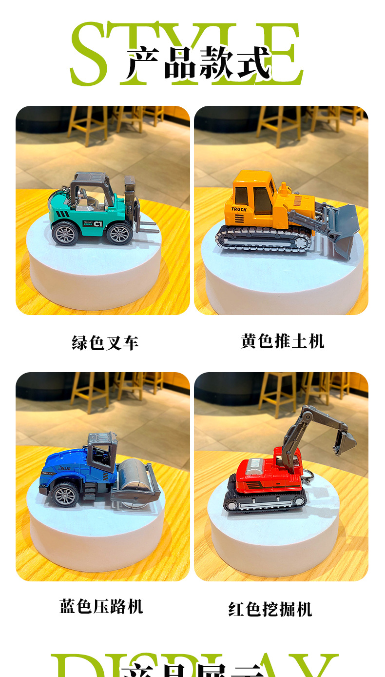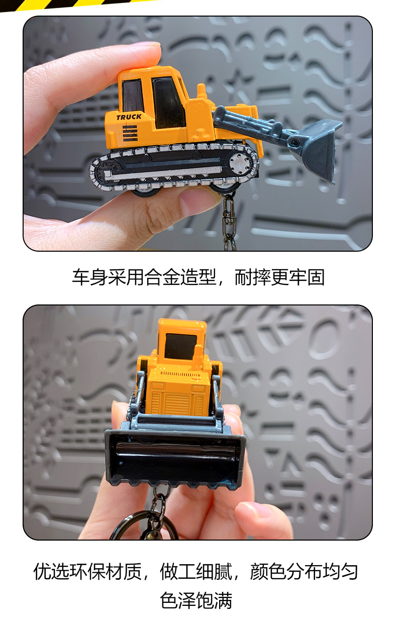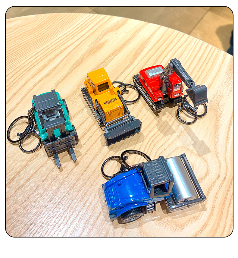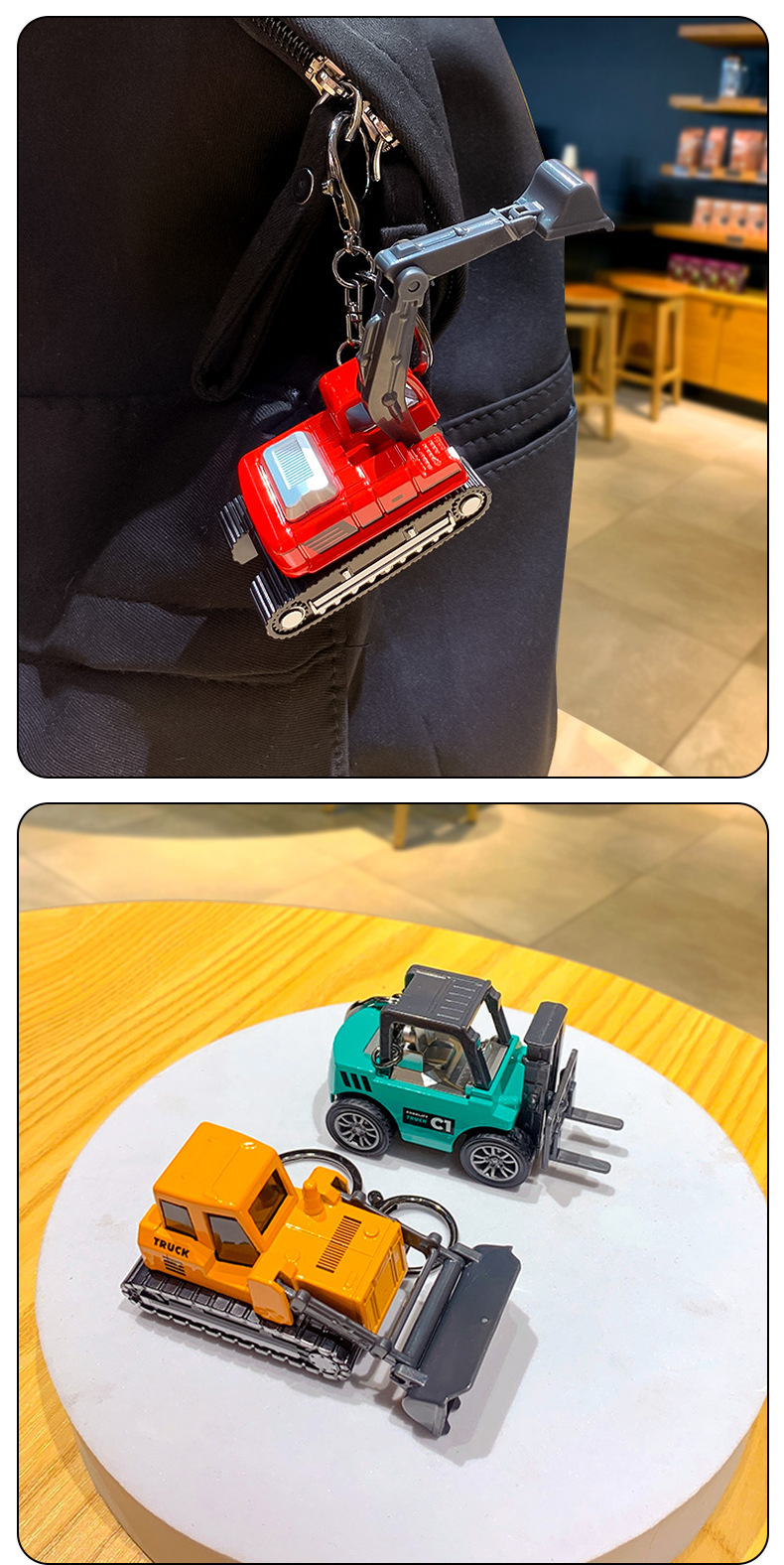 만화 풀백 굴삭기 어린이 장난감 열쇠 고리 펜던트 자동차 가방 열쇠 고리 펜던트 작은 선물 도매