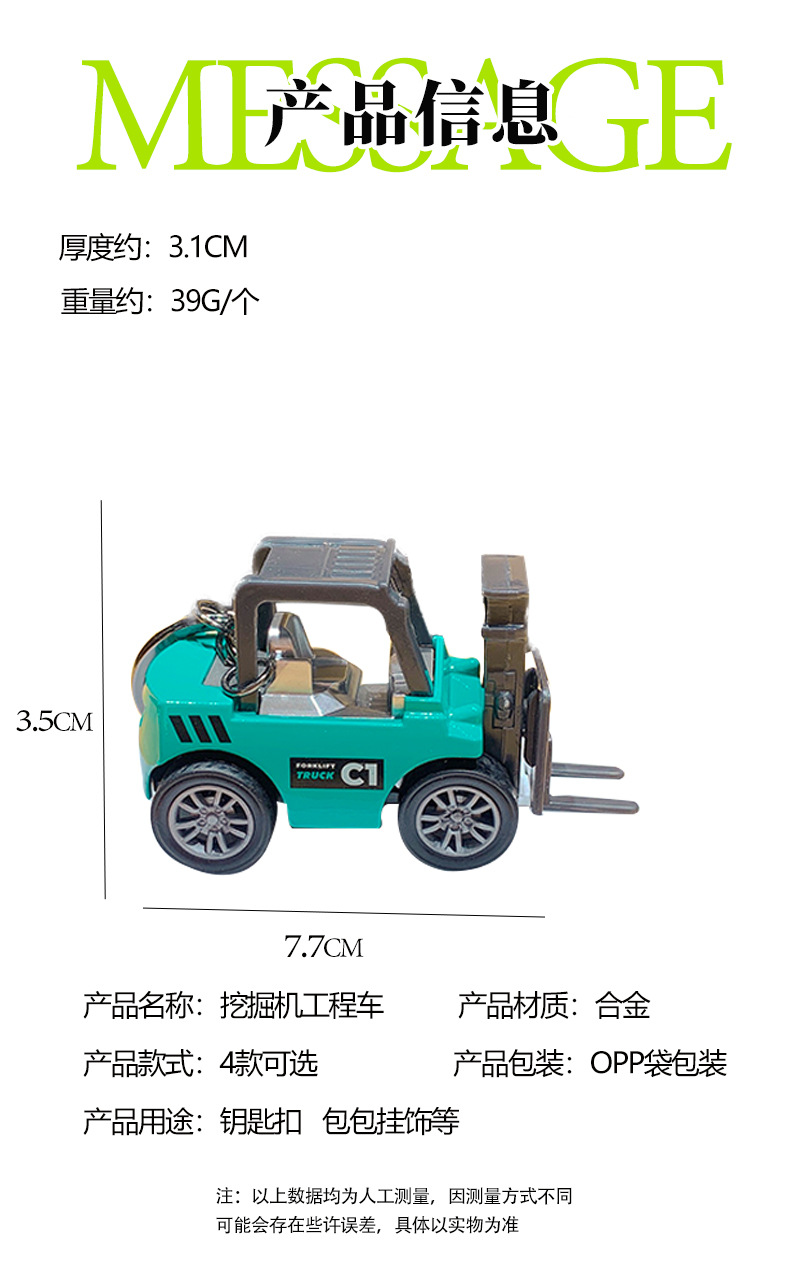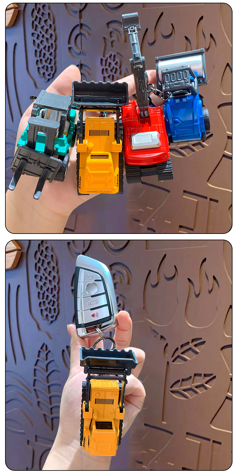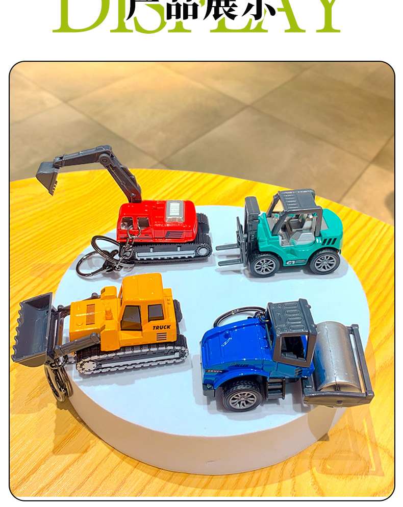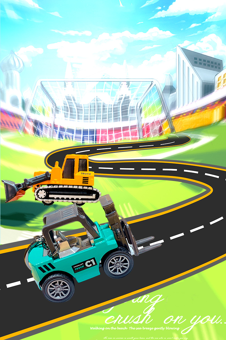 만화 풀백 굴삭기 어린이 장난감 열쇠 고리 펜던트 자동차 가방 열쇠 고리 펜던트 작은 선물 도매