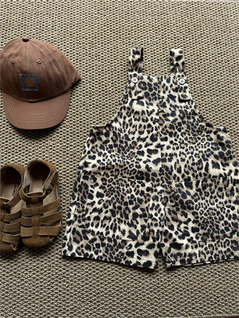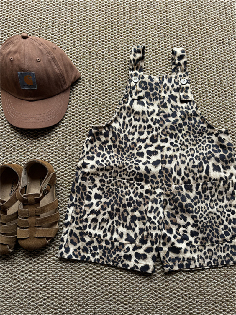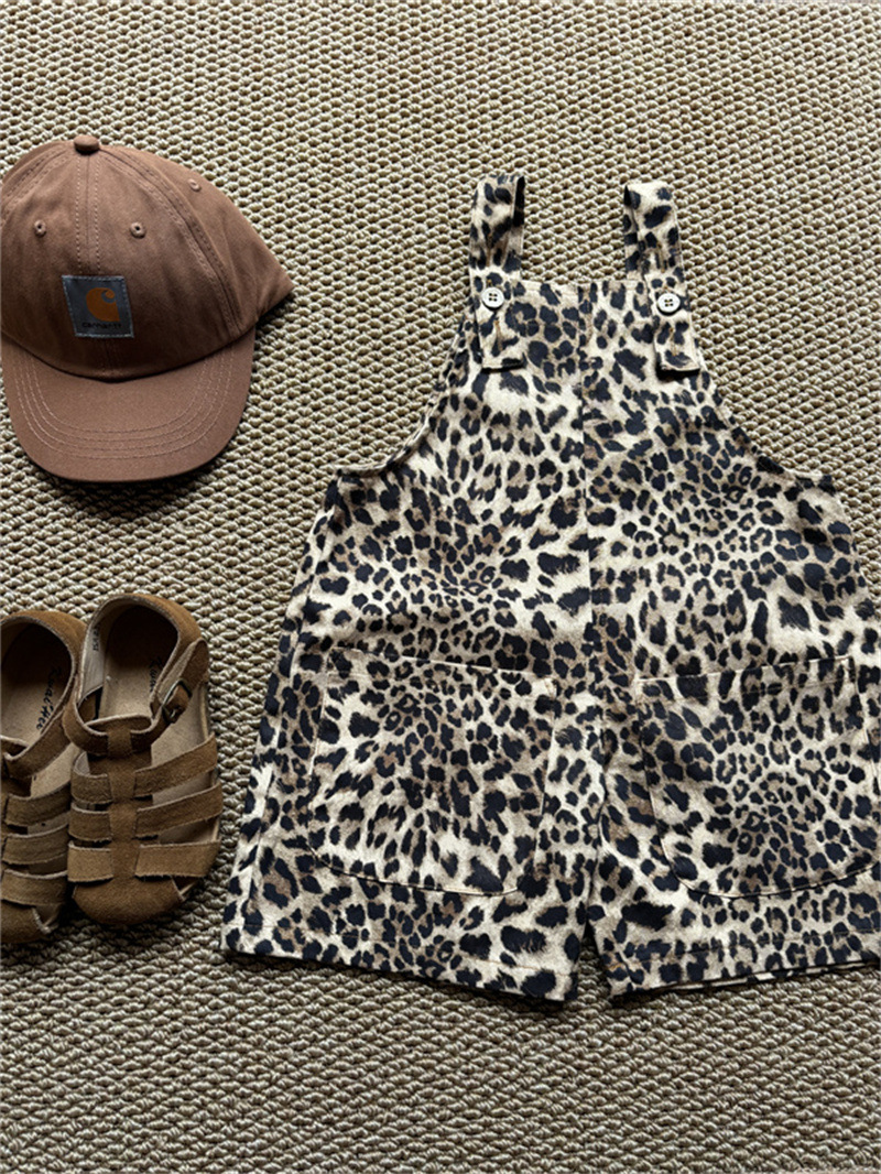 한국식 아동복 남학생의 끈끈한 여름 트렌디 쿨웨어 어린이 레오파드 반바지 유행 신식 핸섬 점프 수트