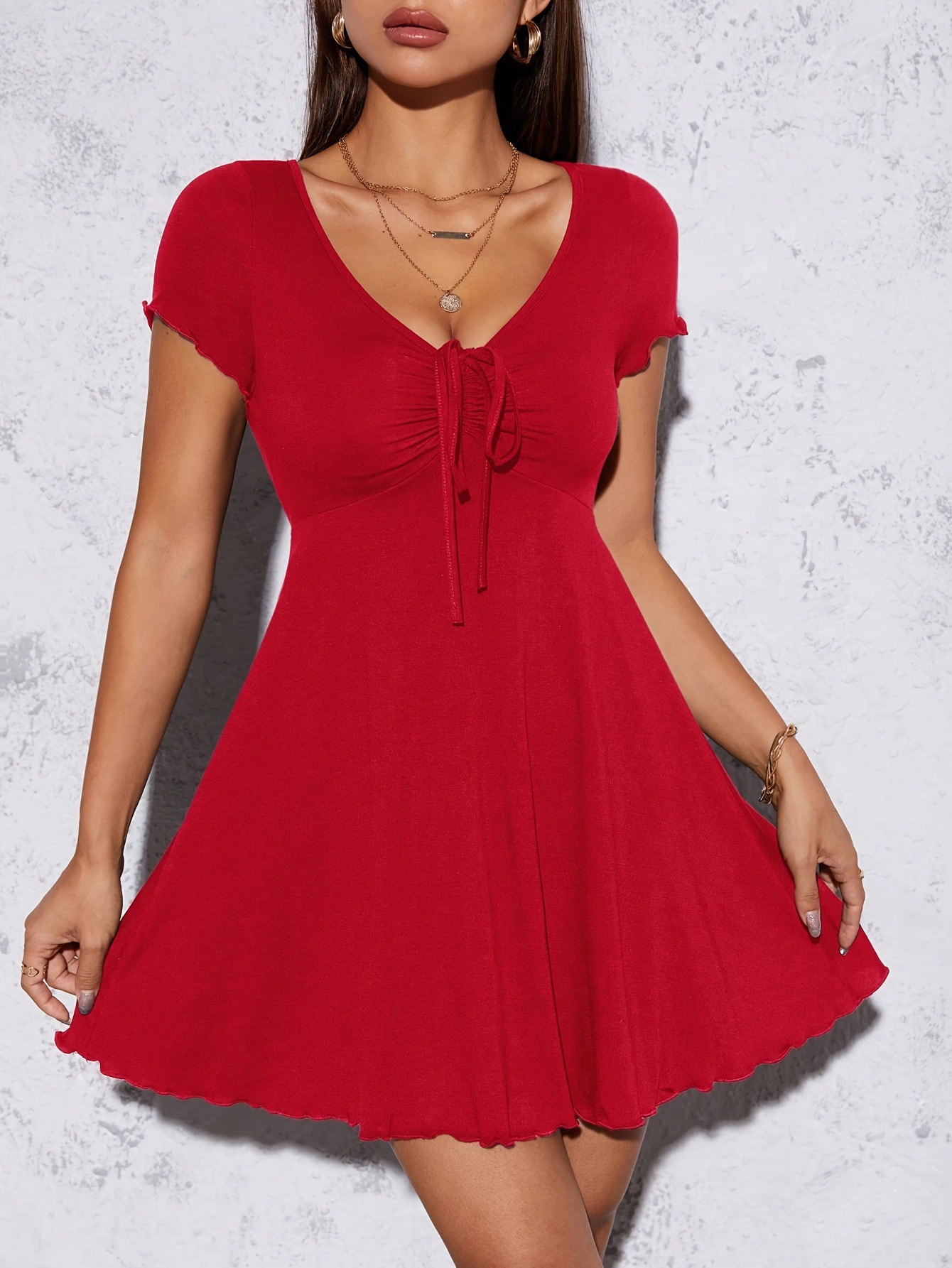 순수한 욕망 스타일 V 넥 원피스 여름 여성 활 프랑스 슬림 핏 슬리밍 우아한 디자인 센스 타이트 허리 스커트스토어 가기