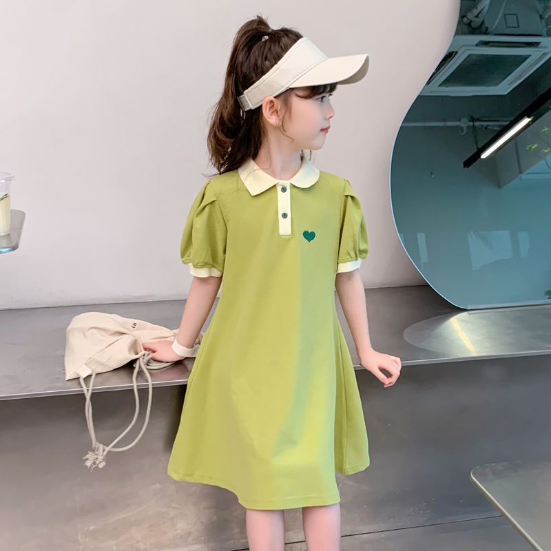 소녀 여름 원피스 사랑 원피스 2025 새로운 어린 소녀 어린이 한국 스타일 티셔츠 원피스 여름 폴로 원피스 트렌디