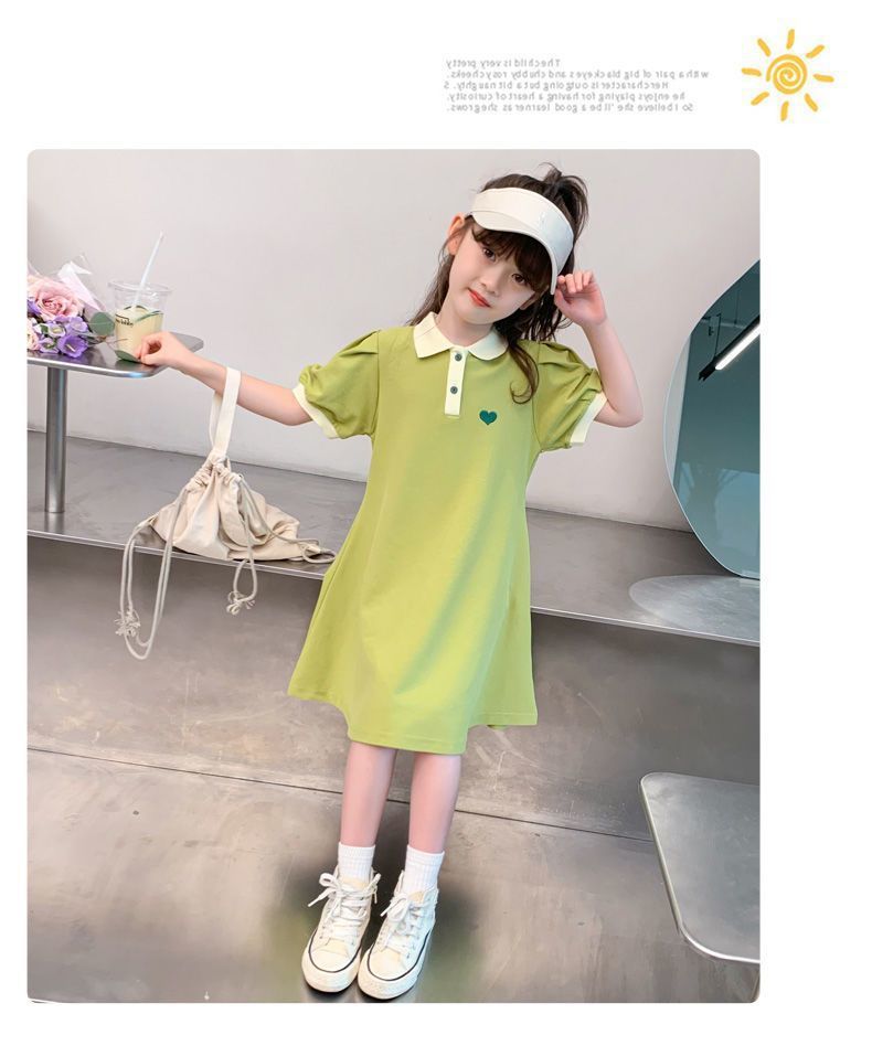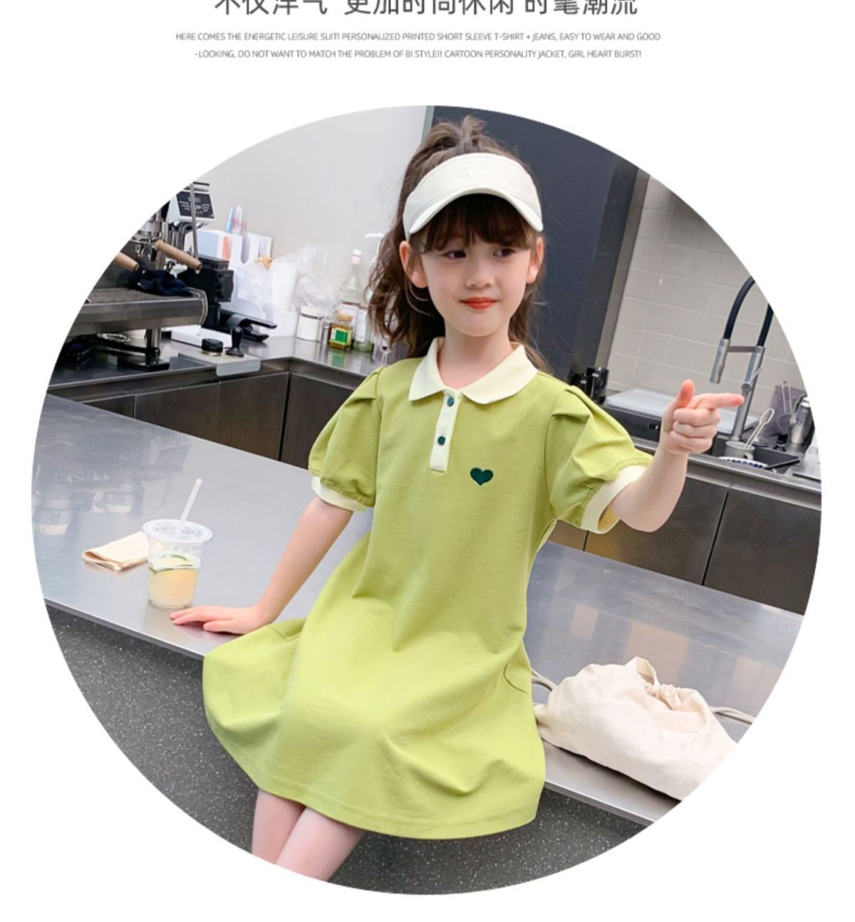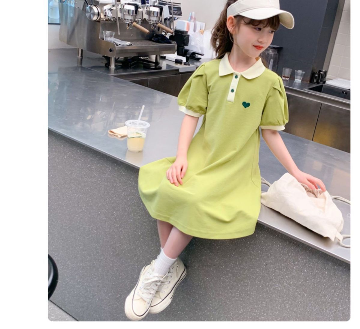 소녀 여름 원피스 사랑 원피스 2025 새로운 어린 소녀 어린이 한국 스타일 티셔츠 원피스 여름 폴로 원피스 트렌디스토어 가기