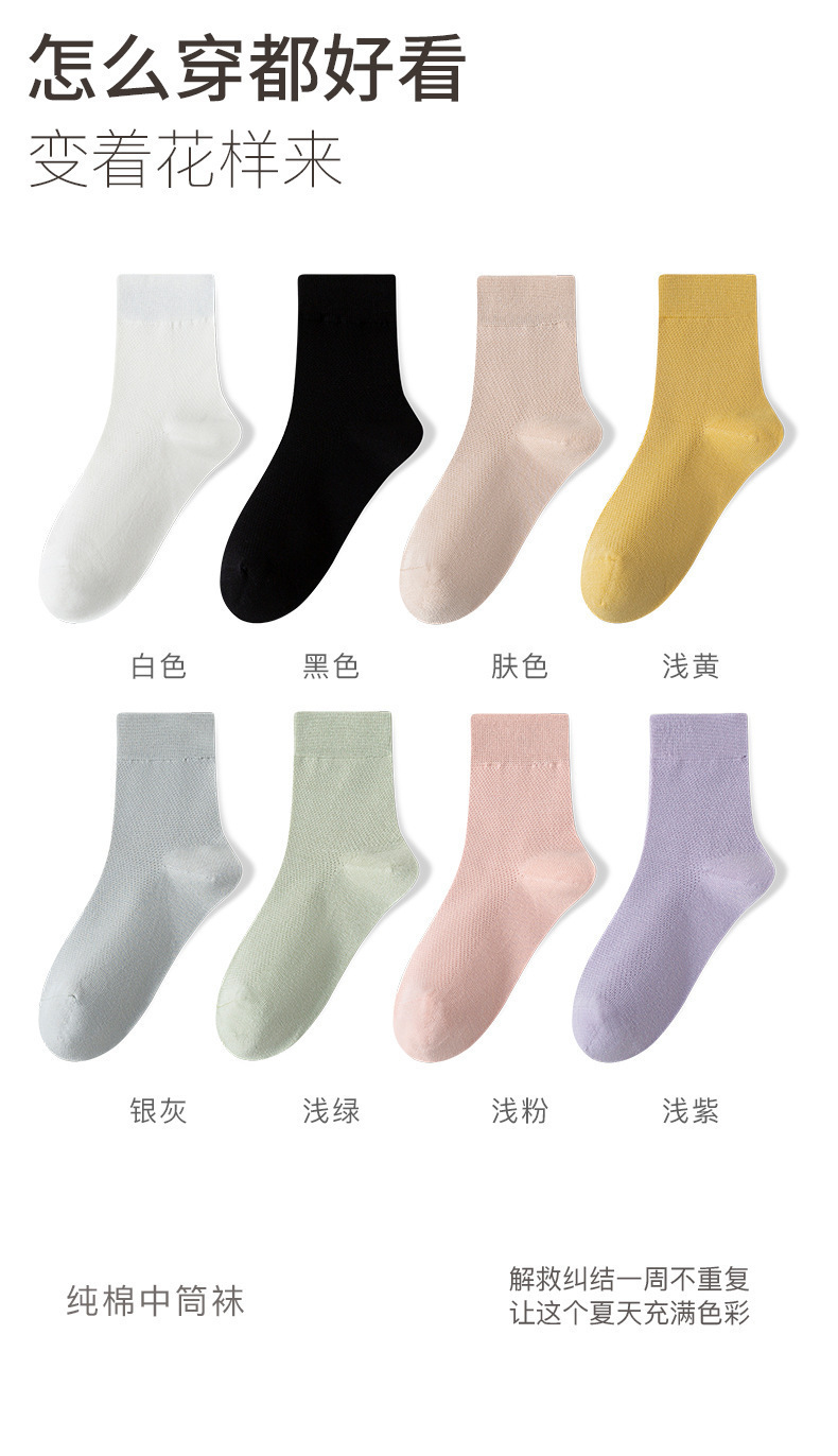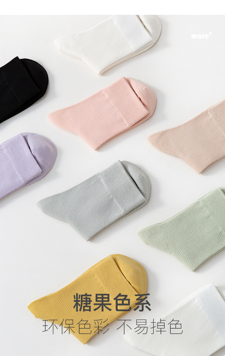 양말 여성용 미드 튜브 양말 봄과 여름 메쉬 통기성 코튼 양말 솔리드 컬러 더미 양말 안티 필 일본 여성의 미드 튜브 양말