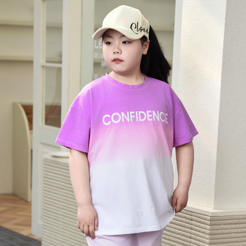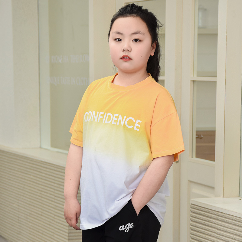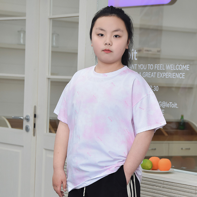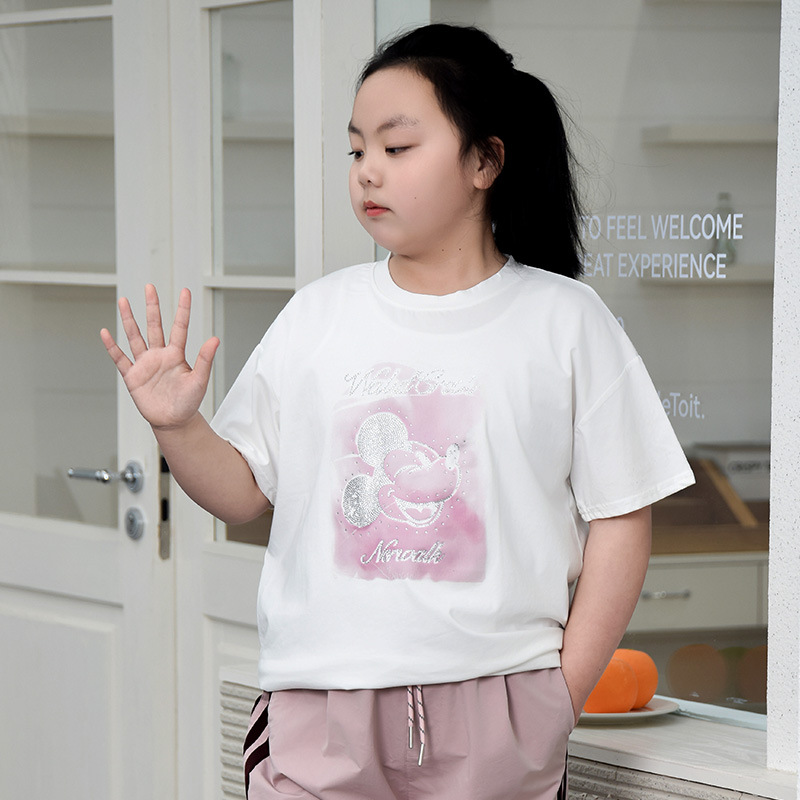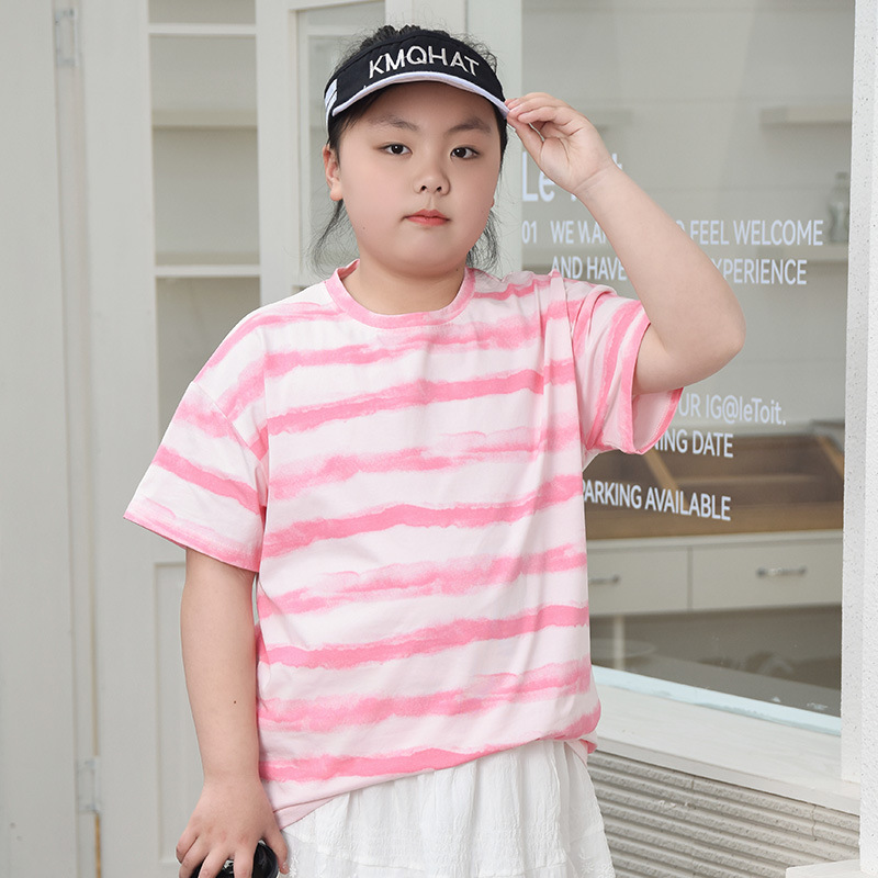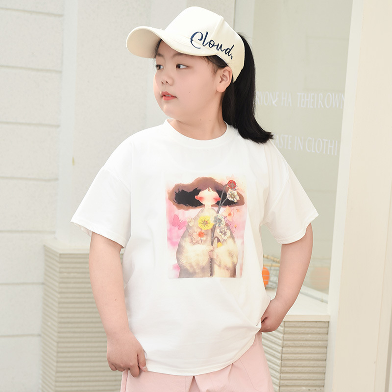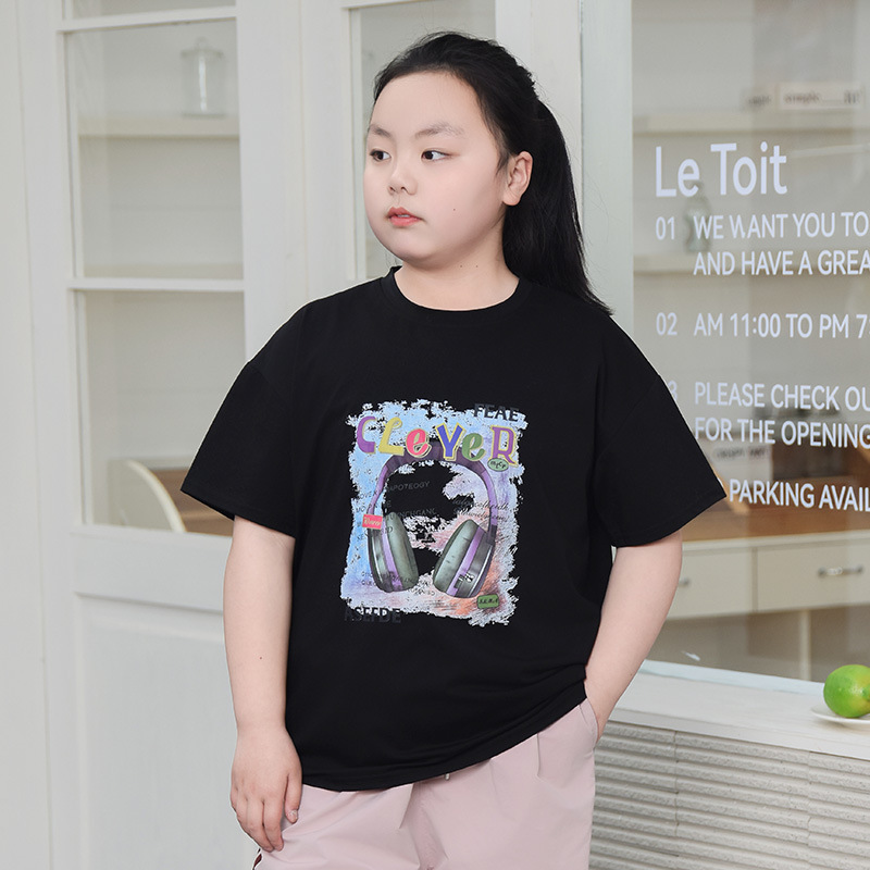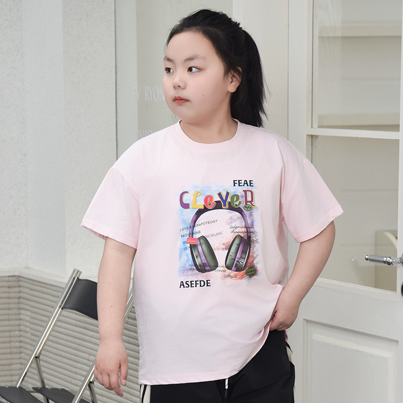 뚱뚱한 어린이 티셔츠 여자 지방 플러스 사이즈 반팔 플러스 사이즈 아동복 어린이 느슨한 반소매 중견 어린이 여름 착용 면 T 얇은