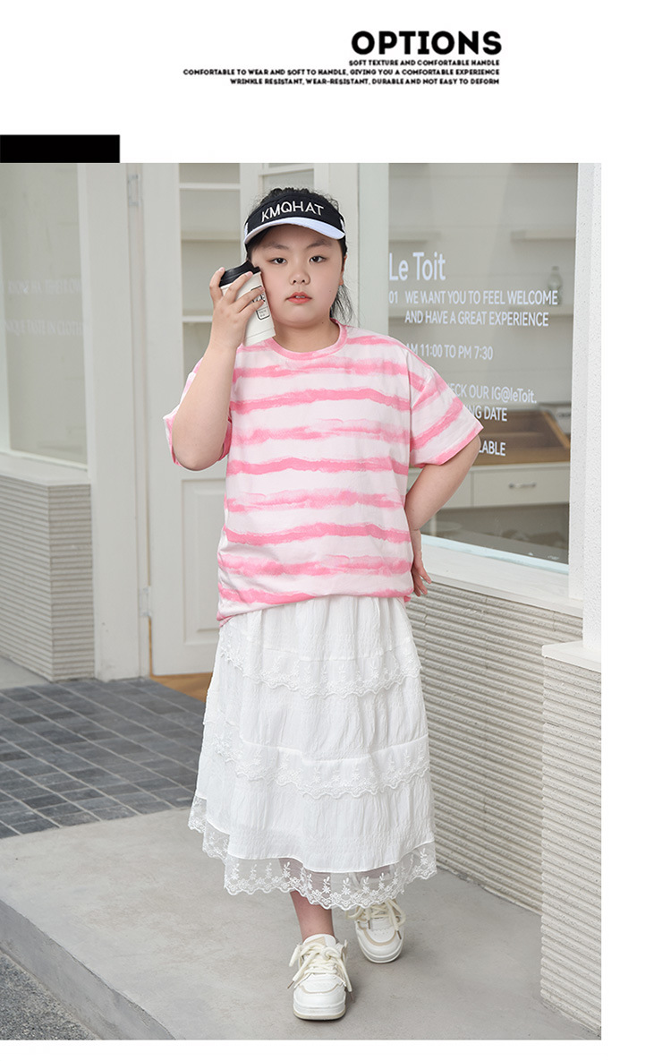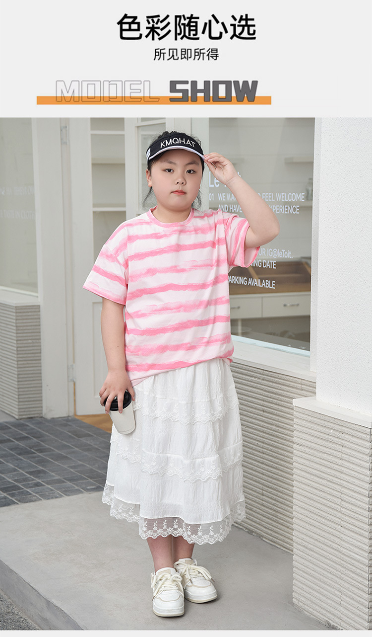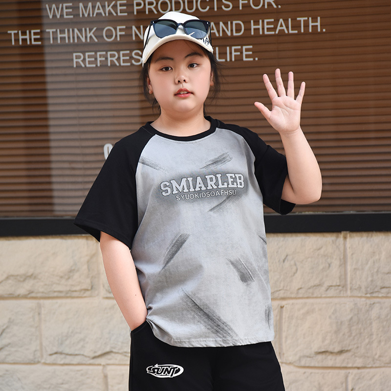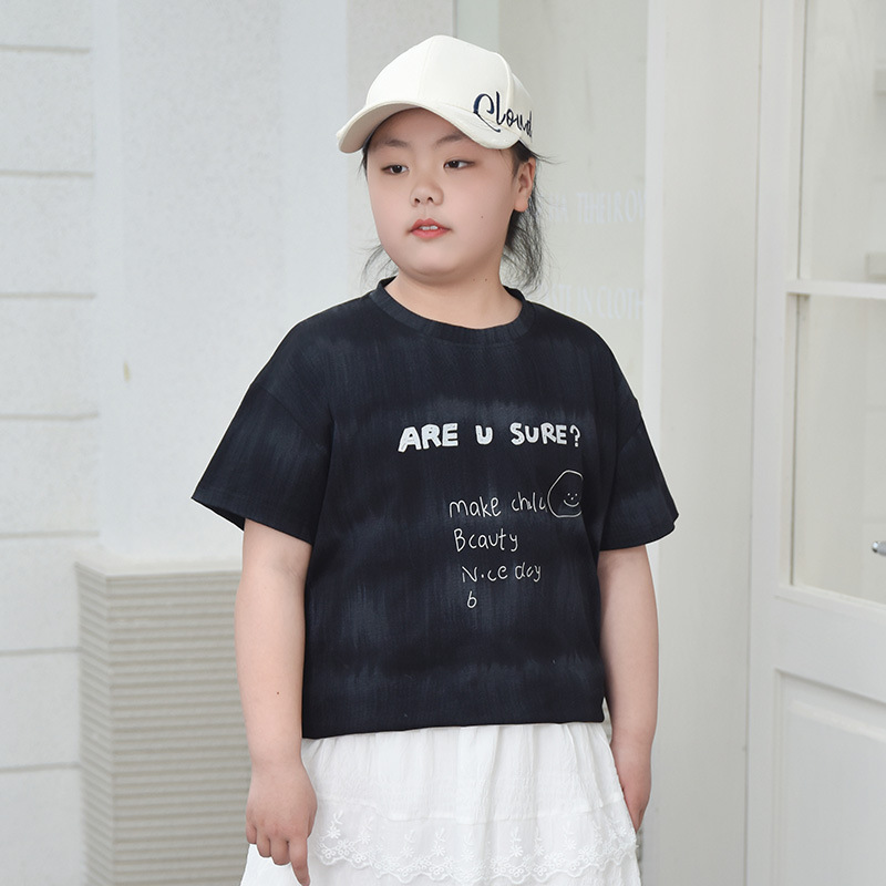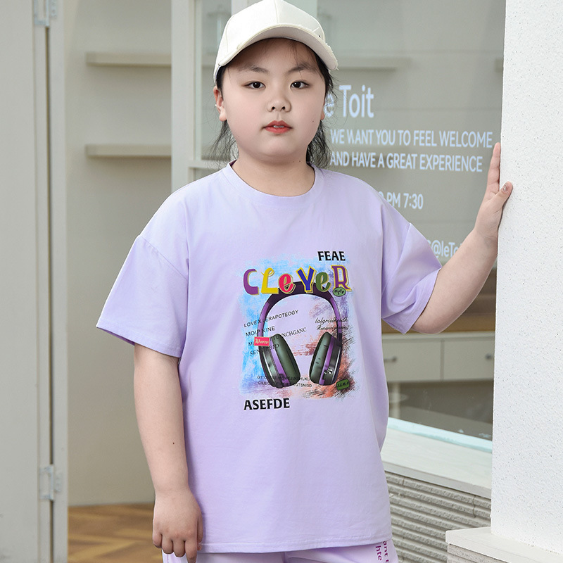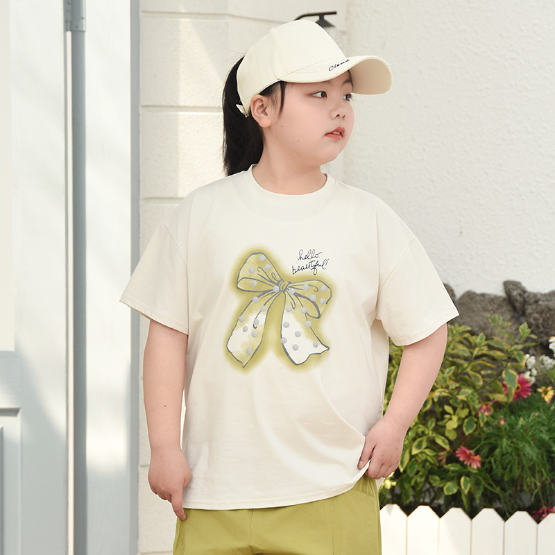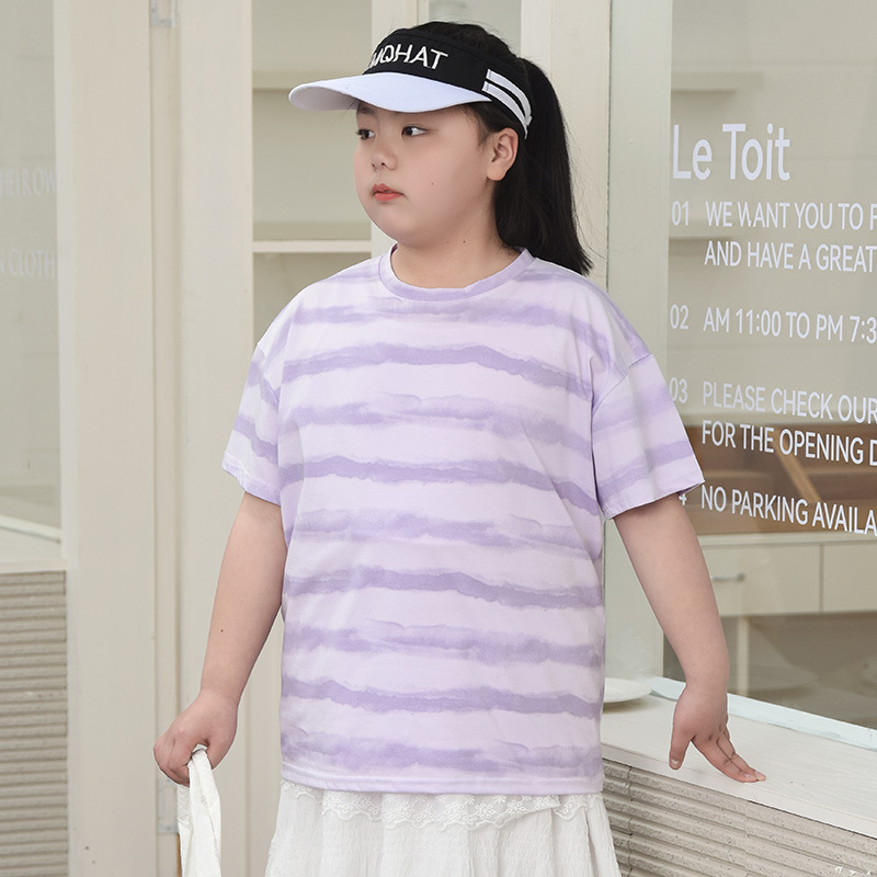 뚱뚱한 어린이 티셔츠 여자 지방 플러스 사이즈 반팔 플러스 사이즈 아동복 어린이 느슨한 반소매 중견 어린이 여름 착용 면 T 얇은