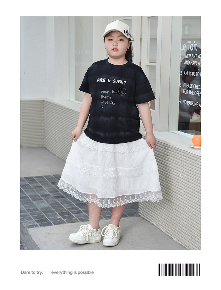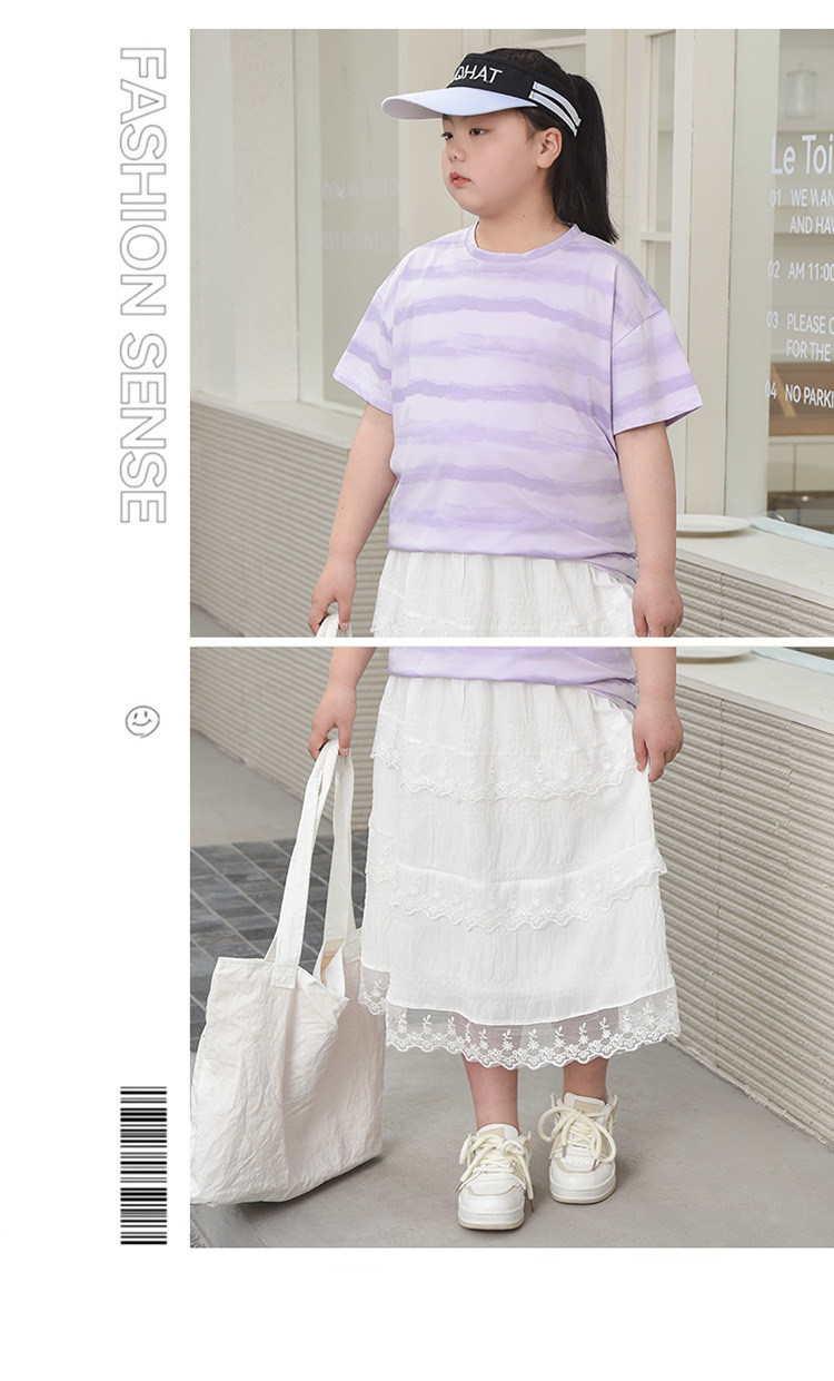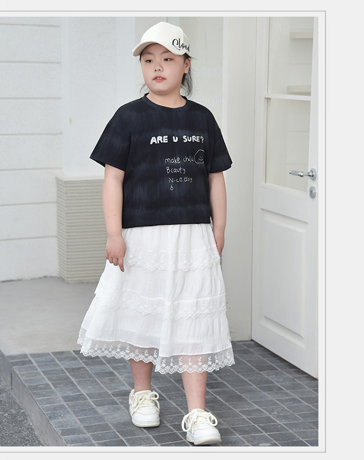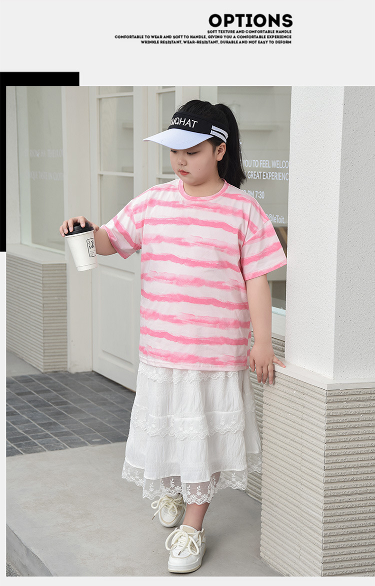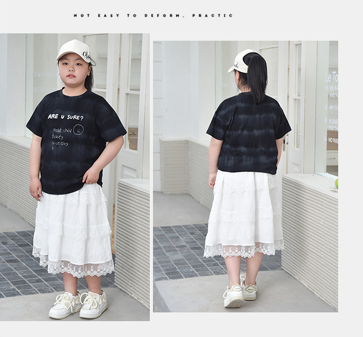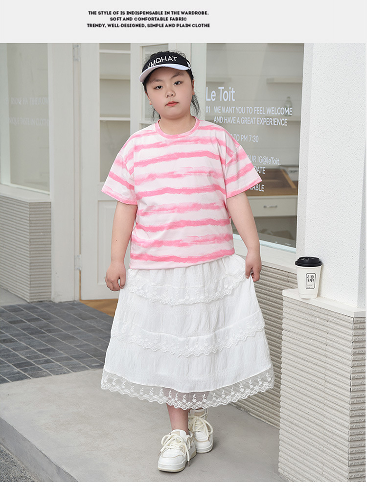 뚱뚱한 어린이 티셔츠 여자 지방 플러스 사이즈 반팔 플러스 사이즈 아동복 어린이 느슨한 반소매 중견 어린이 여름 착용 면 T 얇은