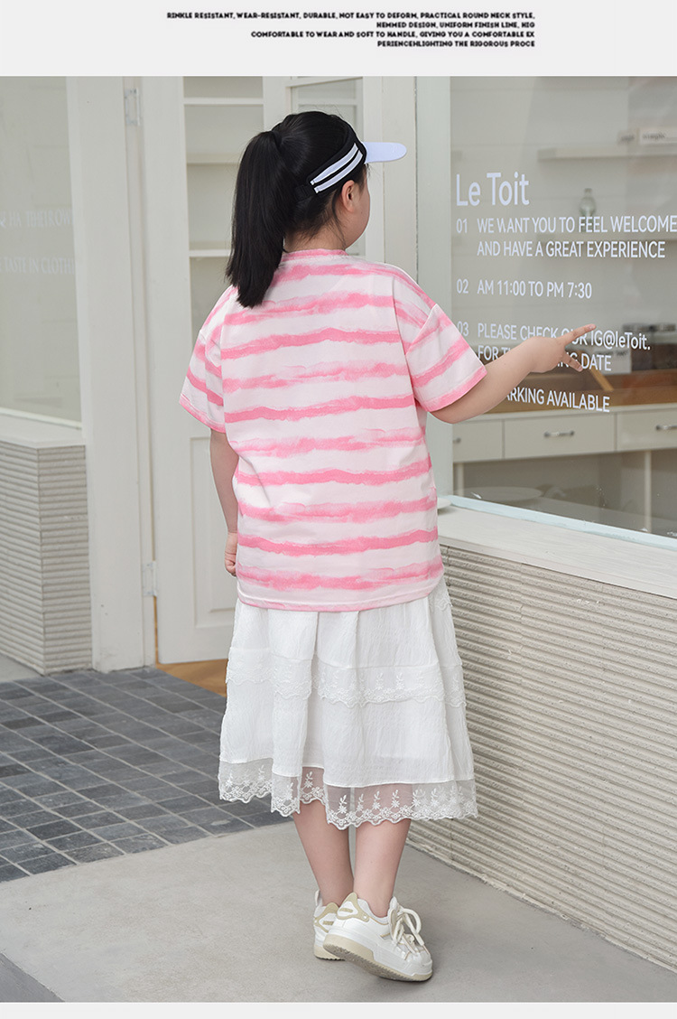 뚱뚱한 어린이 티셔츠 여자 지방 플러스 사이즈 반팔 플러스 사이즈 아동복 어린이 느슨한 반소매 중견 어린이 여름 착용 면 T 얇은스토어 가기