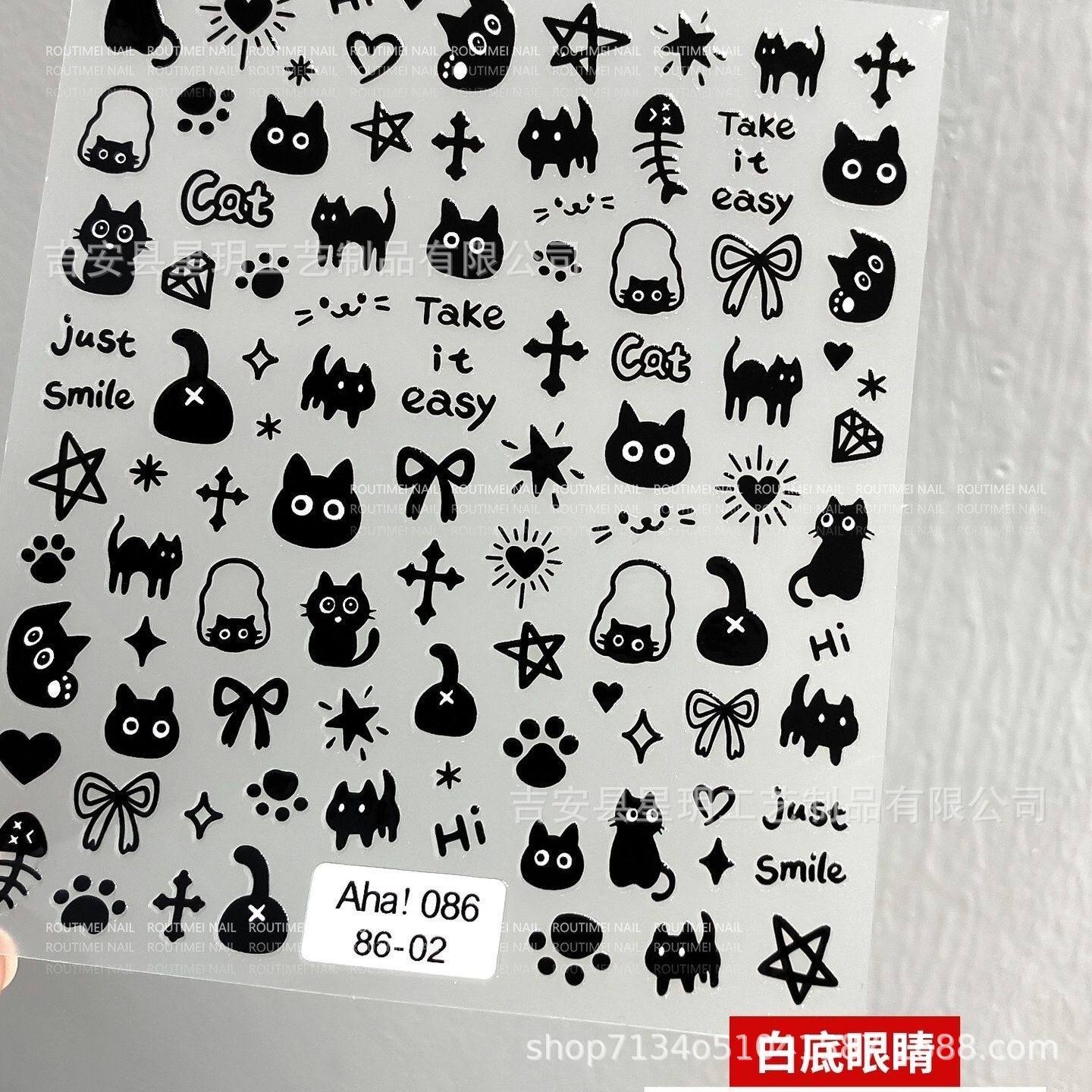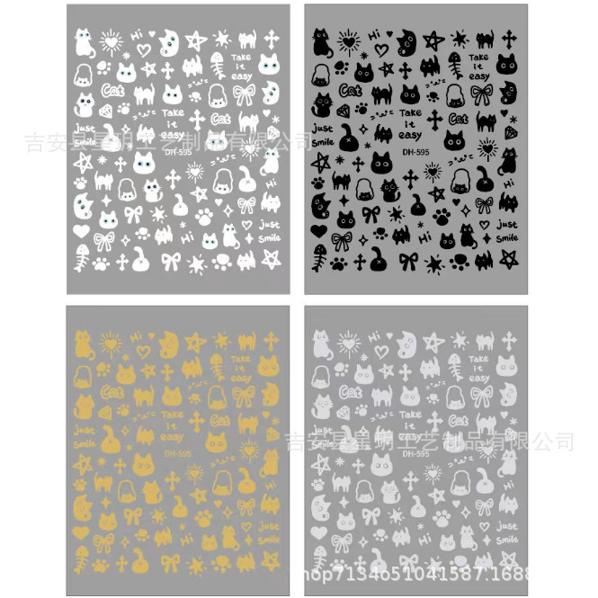 귀여운 고양이 네일 아트 스티커 인터넷 연예인 핫 스타일 핫 스탬핑 실버 흑백 고양이 동물 스티커 네일 액세서리 데칼 도매