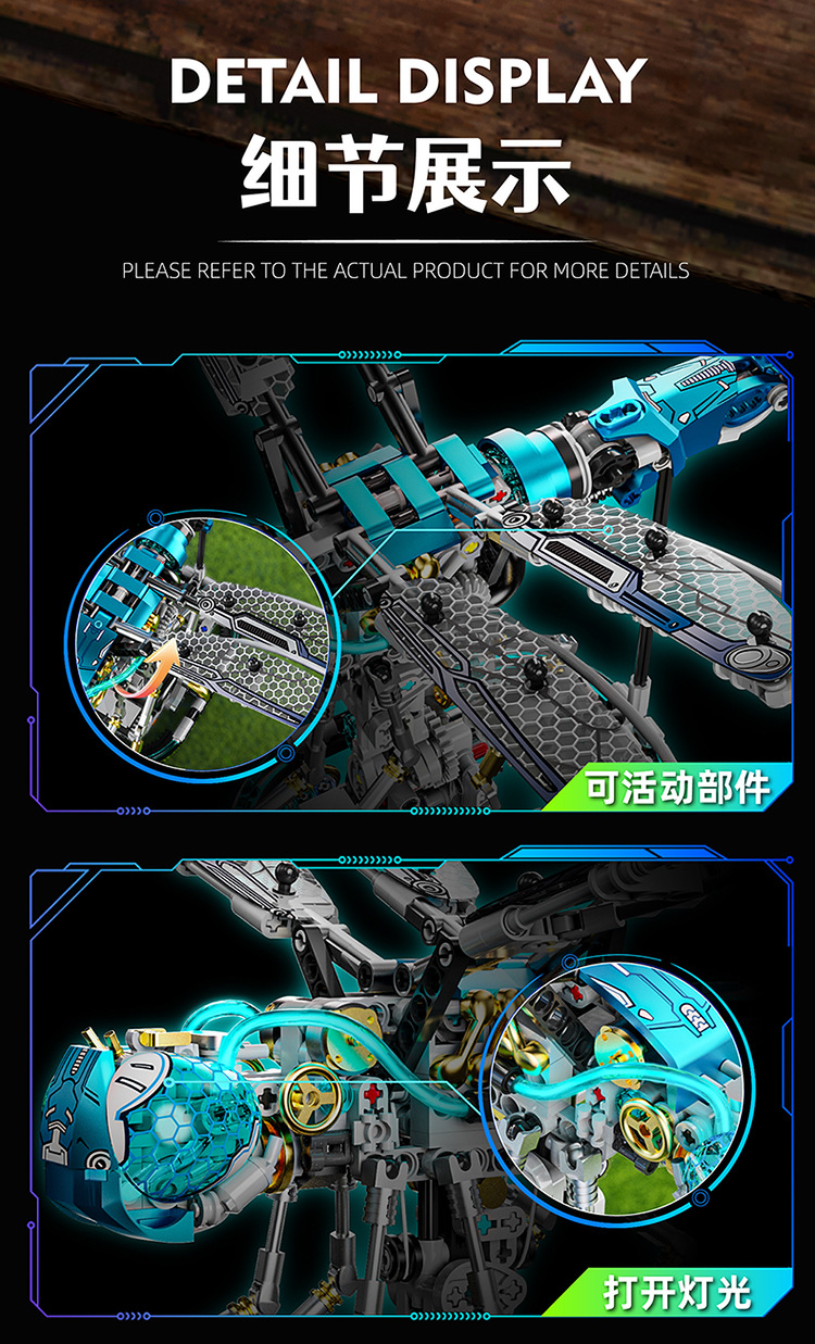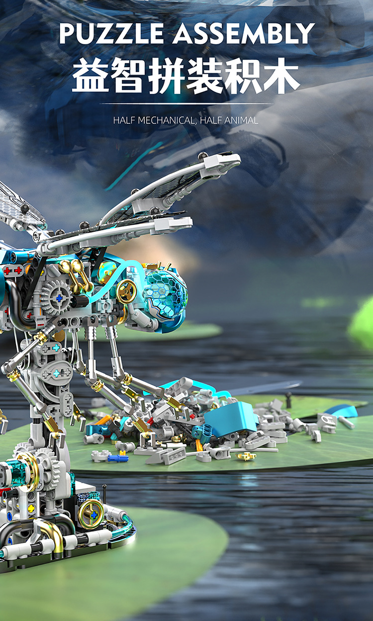 미국 및 13086 기계식 잠자리 고래 조립 건물 블록 사마귀 모델 악마 물고기 전기 소년 국경 장난감