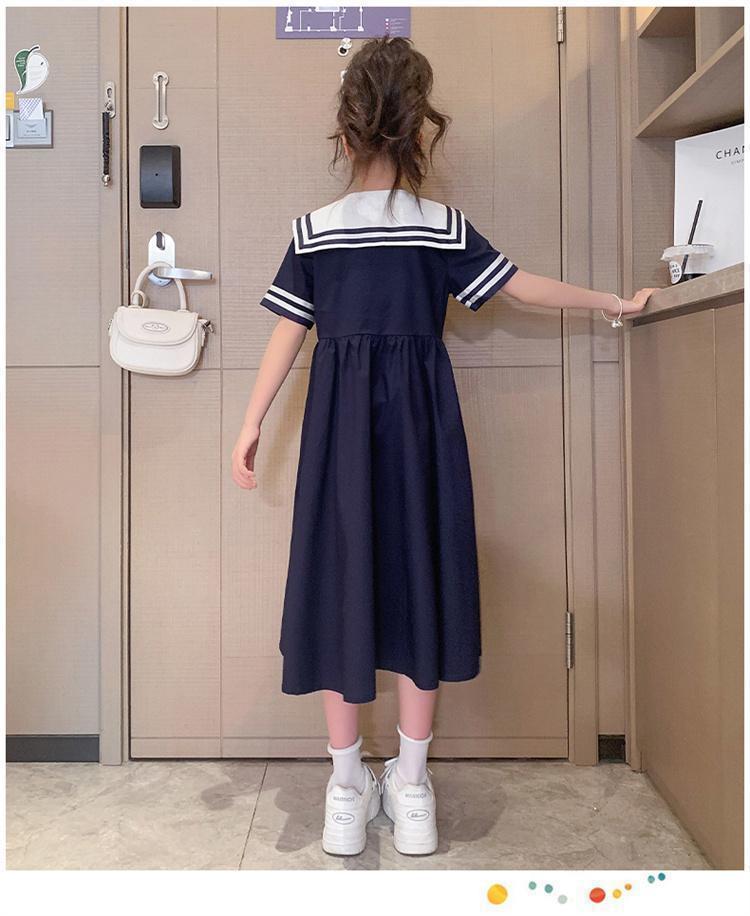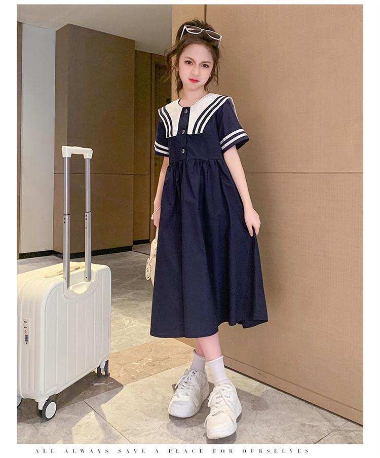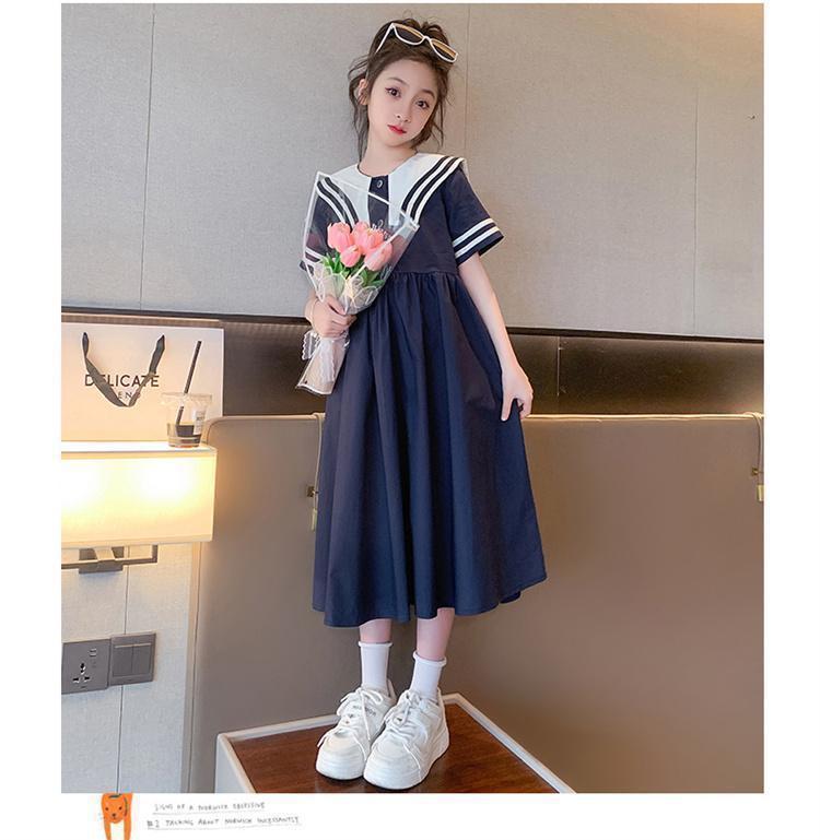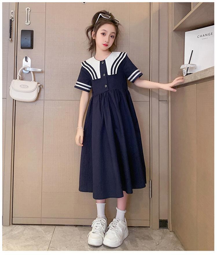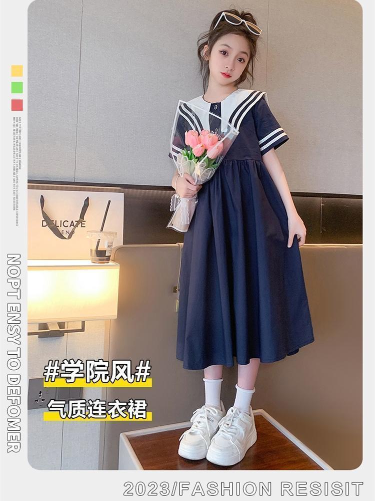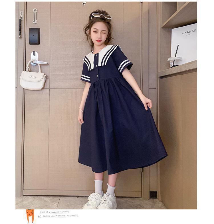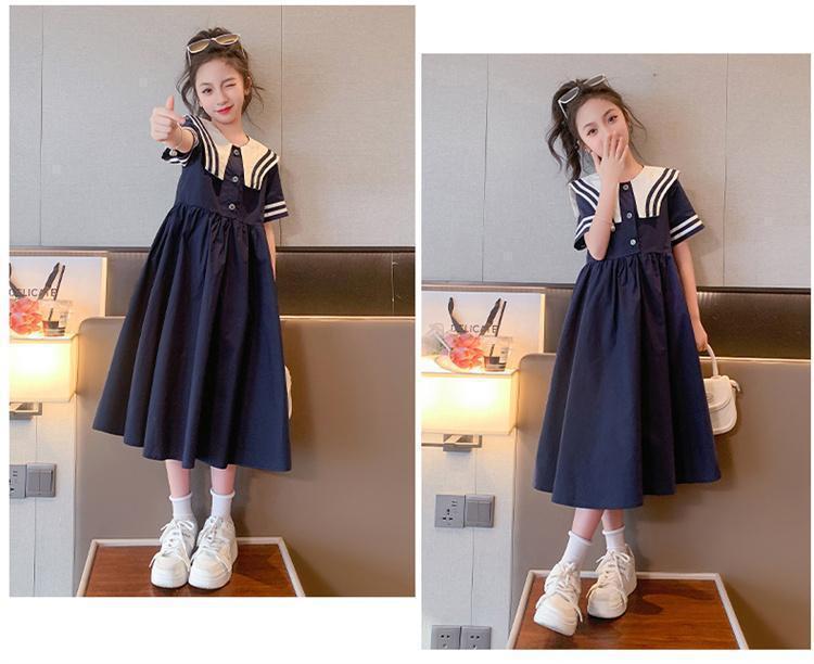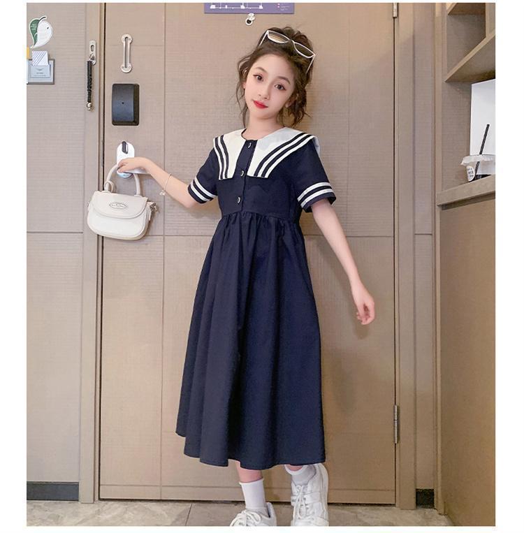 소녀의 치마 여름 2025 새로운 스타일 소녀의 서양식 긴 치마 대학 스타일 칼라 무릎 초교 학생 원피스스토어 가기