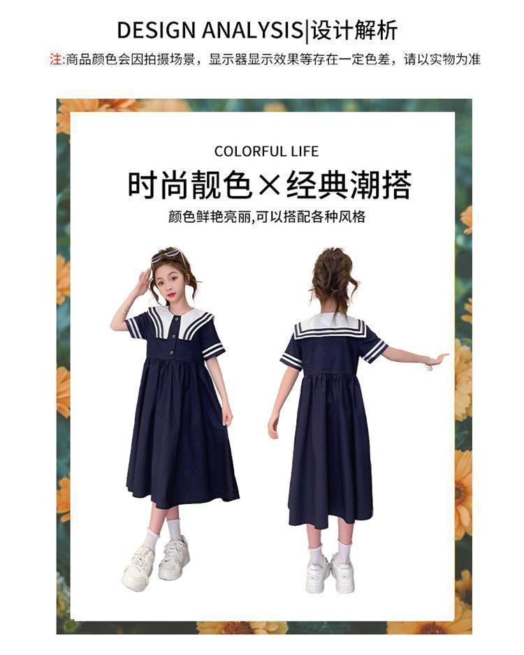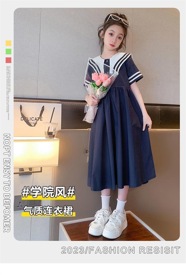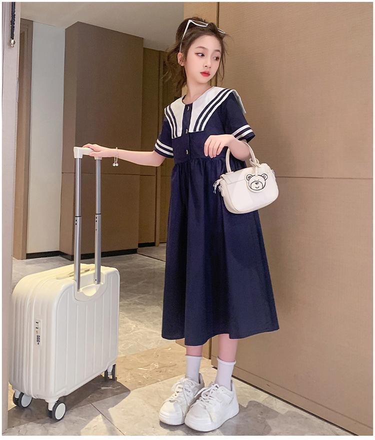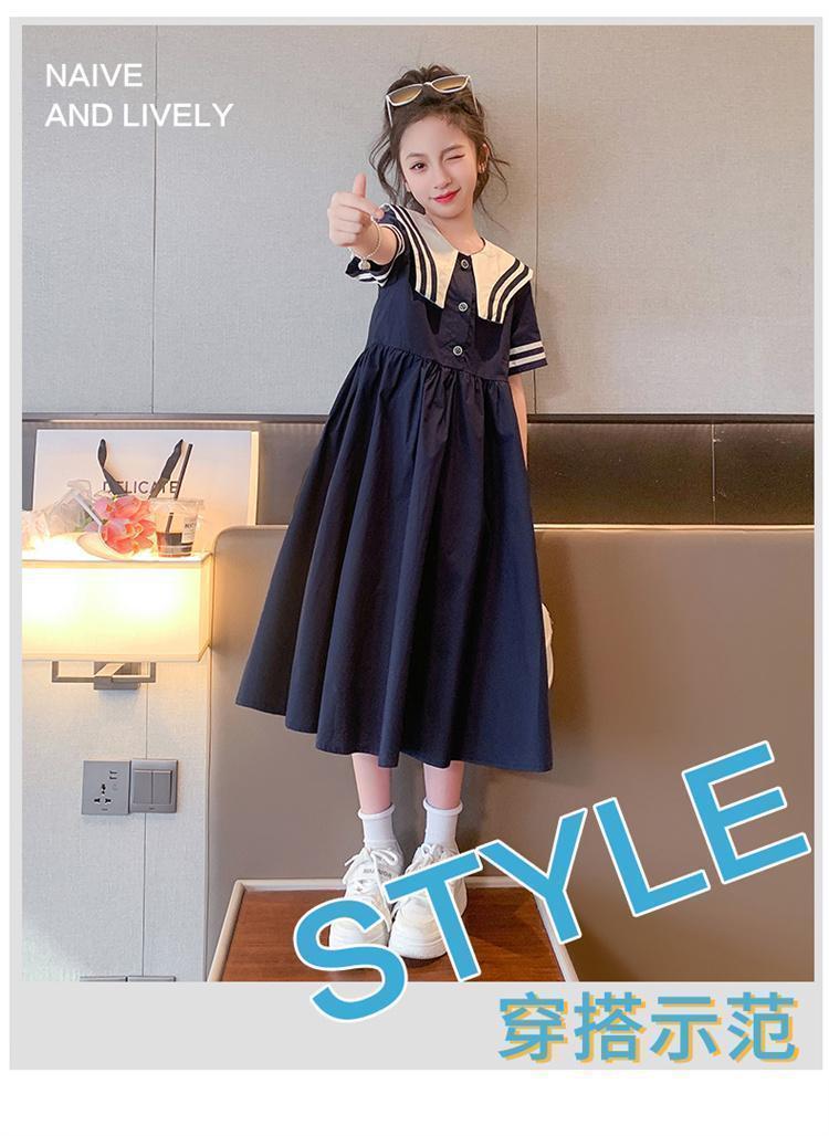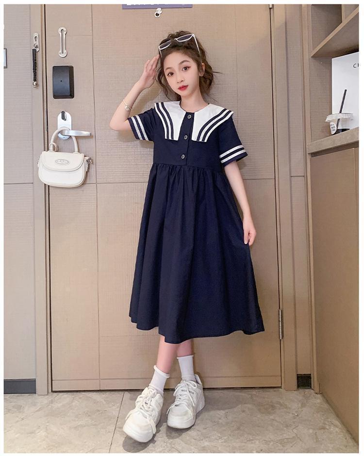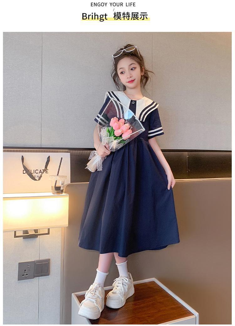 소녀의 치마 여름 2025 새로운 스타일 소녀의 서양식 긴 치마 대학 스타일 칼라 무릎 초교 학생 원피스스토어 가기